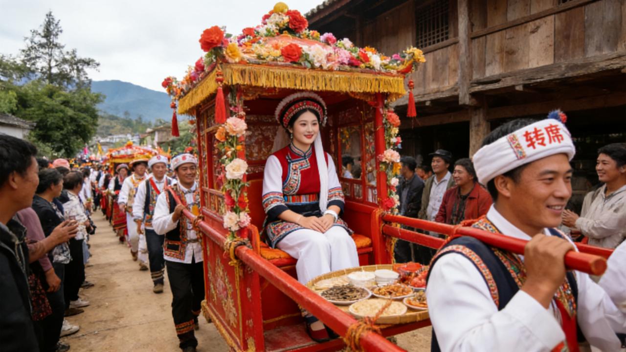 火了28年的《大花轿》,灵感藏在云南深山!张艺兴改编再爆火,民俗密码太好嗑 “我嘴里头笑的是呦啊呦啊呦,我心里头美的是啷个里个啷”,这首贯穿几代人青春的《大花轿》,近期因张艺兴的电音改编再度刷屏全网,而鲜为人知的是,这首全民神曲的创作源头,藏着云南基诺山的烟火与浪漫。 1994年,歌手火风骑行赴藏采风却遇大雪封山,误打误撞闯入云南基诺族村寨。恰逢寨中办喜事,一场热烈的“竹竿抢亲”仪式撞进他的眼底:新郎举着竹竿围吊脚楼打转,姑娘在楼上掩嘴偷笑,银镯叮当,火把通红,全寨人唱着山歌喝彩,空气里满是米酒醇香。火风被这份纯粹的欢喜打动,甚至不慎被裹着稻草的竹竿打青眼睛,这段奇遇却成了创作的关键灵感。 他将基诺族“唱太阳”的习俗(清晨对太阳歌唱祈福)化作“太阳出来我爬山坡”的起句,把小众的竹竿抢亲转化为大众熟知的“大花轿”意象——要知道,昭通的浩荡花轿队伍、白族的“转席”上轿仪式,本就是云南婚俗的鲜活符号。歌里魔性的“啷个里个啷”,更是被村寨欢腾氛围感染后的自然流露,成了穿越时光的听觉记忆。 2026年初,张艺兴在跨年演唱会将《大花轿》改编为电音国潮版,舞台引爆全场,张艺兴大花轿挑战话题播放量破亿,原唱火风直呼“老轿子翻新了”。而此时云南正推出“旅行婚礼首选目的地”活动,大理、西双版纳等多地成为新人打卡地,这首藏着云南婚俗基因的歌曲,恰好呼应了当下的文旅热潮。 从基诺山的竹竿欢歌到全网传唱的花轿旋律,从90年代的磁带脱销到如今的电音翻红,《大花轿》的生命力,源于云南民俗的质朴与热烈。它不仅是一首歌曲,更是连接传统与现代的桥梁,让雪山雨林间的文化密码,通过旋律走向千家万户。如今再听这首歌,你是否也想起了云南的烟火气?欢迎分享你的感悟~