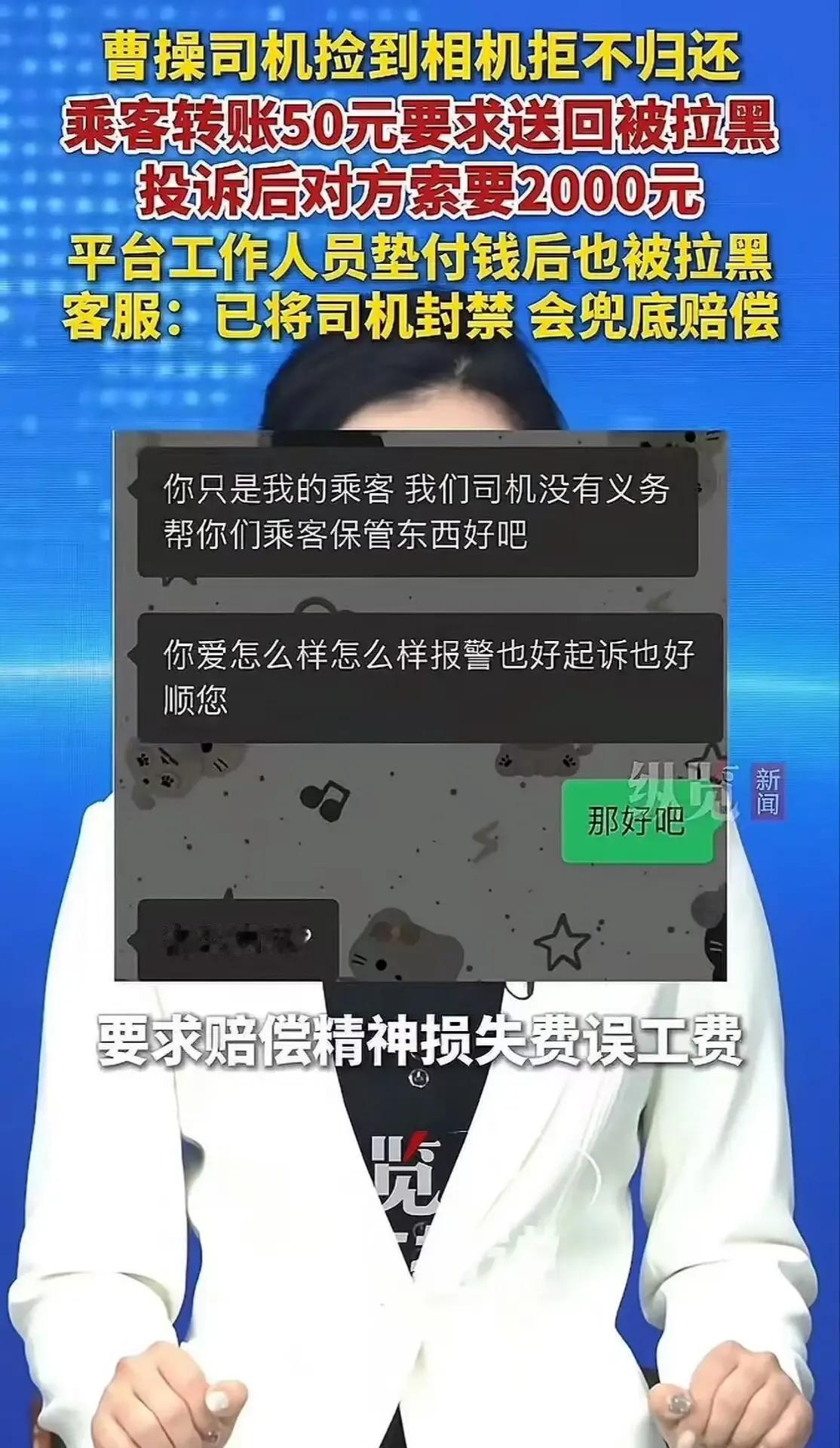 “不懂法真的太可怕了!”近日北京一女子坐网约车时,不慎把价值3000多元的相机落在了车上,本想给司机点感谢费让他送回,可接下来发生的事,简直让人大跌眼镜! 据悉,女子发现相机遗落后,立刻联系上了司机,并主动提出先转50块钱作为感谢,等相机送回后再支付50元路费。司机也爽快地答应了,女子本以为这事儿就这么顺利解决了。可没想到,司机在收下钱后,竟然直接把女子拉黑了!这还不算完,之后司机的一系列行为更是让人瞠目结舌。他不仅没有归还相机,反而试图通过其他方式逃避责任。女子无奈之下,只能选择报警处理。警方介入后,事情很快有了进展,司机也意识到了自己的错误。这起事件引发了网友们的热议,大家纷纷表示,司机这种行为真是太愚蠢了,以为拉黑就能逃避责任,殊不知法律是公正的,任何违法行为都将受到应有的惩罚。 这起事件也提醒我们,无论是乘客还是司机,都应该遵守法律法规,诚信做人。对于这起事件,你有什么看法呢?快来评论区留言讨论吧!北京网约车