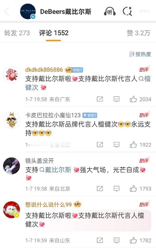 檀健次这事也挺好笑的 自己是戴比尔斯代言人,结果送女友的珠宝是卡地亚,戴比尔斯是工作,卡地亚是生活,终究还是被调侃了,品牌方也挺尴尬的,这一闹,估计戴比尔斯也代言不了太久了吧。