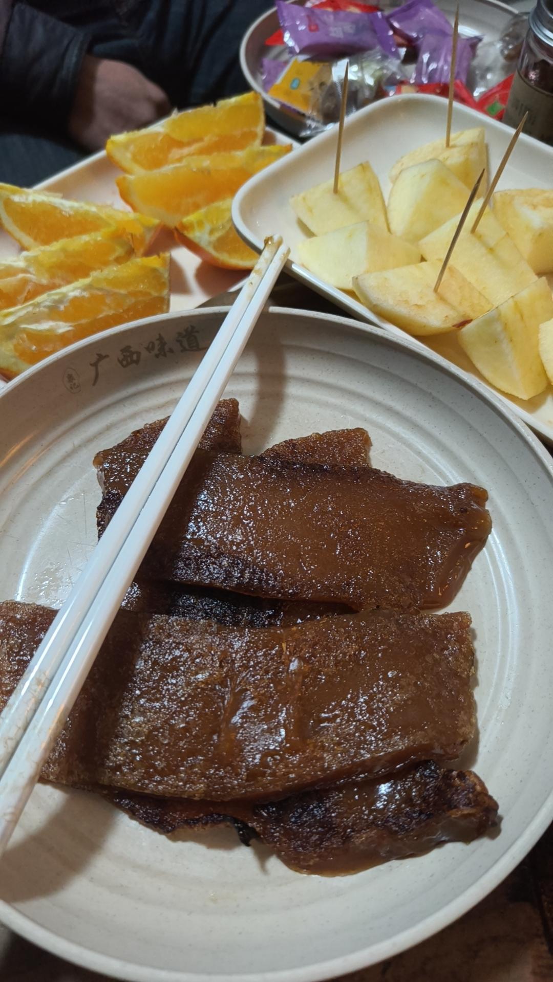 这个东西叫”甜板”,广东人应该都认识,或者都吃过,也称为广东客家的年糕,它的地位,就跟北方过年吃饺子一样,过年时是家家必备的食品,要上百斤糯米粉发酵,然后用一口超大的锅,烧柴火蒸十多个小时,走亲戚时必须带上一块,礼节才算到位,这是属于广东人的浪漫,北方的可能理解不了吧。