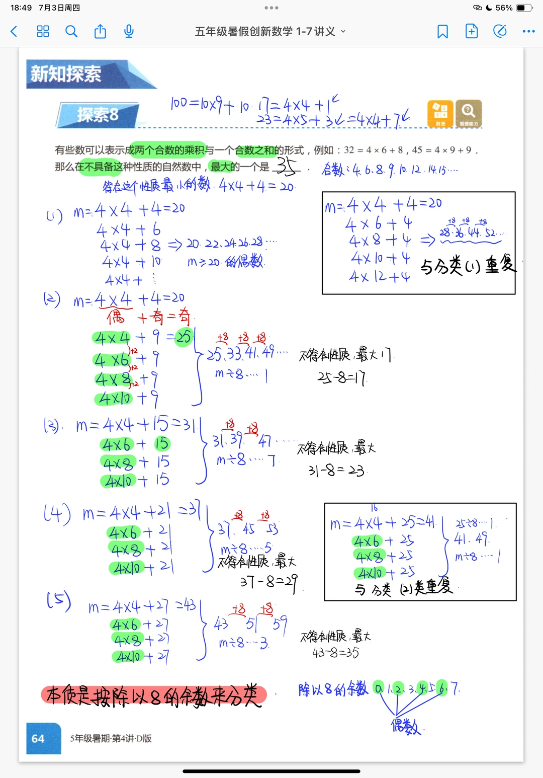 《神奇的九》五年级暑假奥数创新班笔记