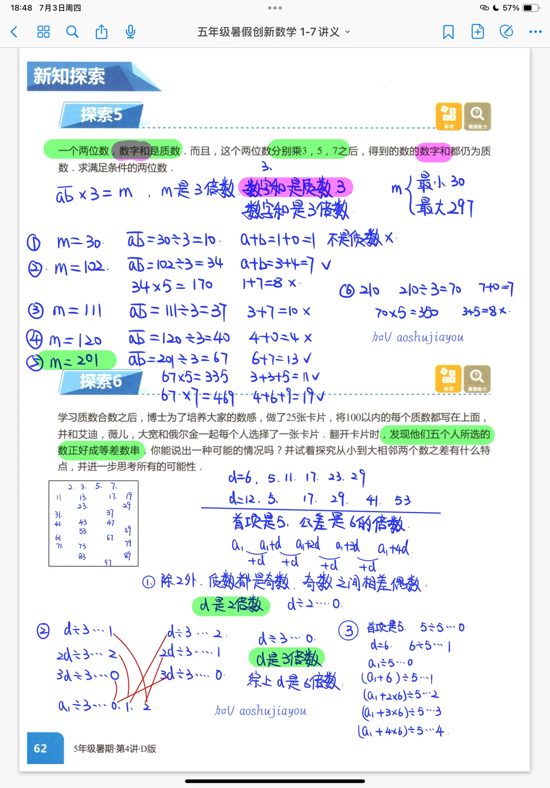 五年级暑假《质数与合数》奥数创新班课笔记