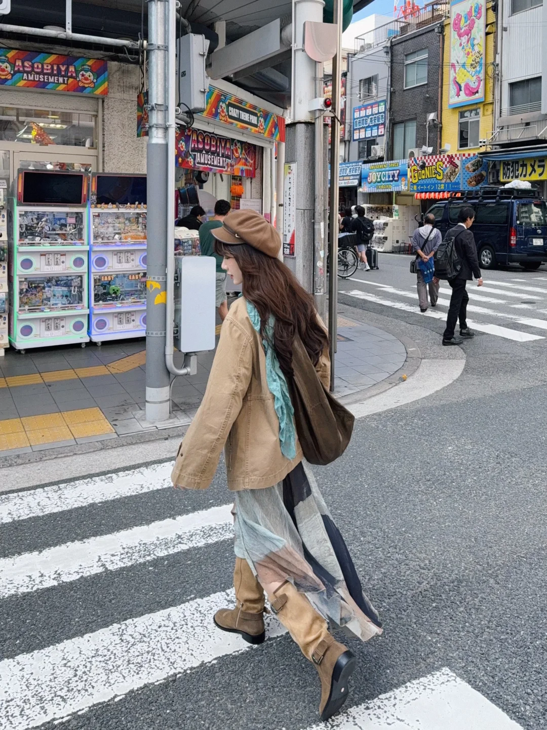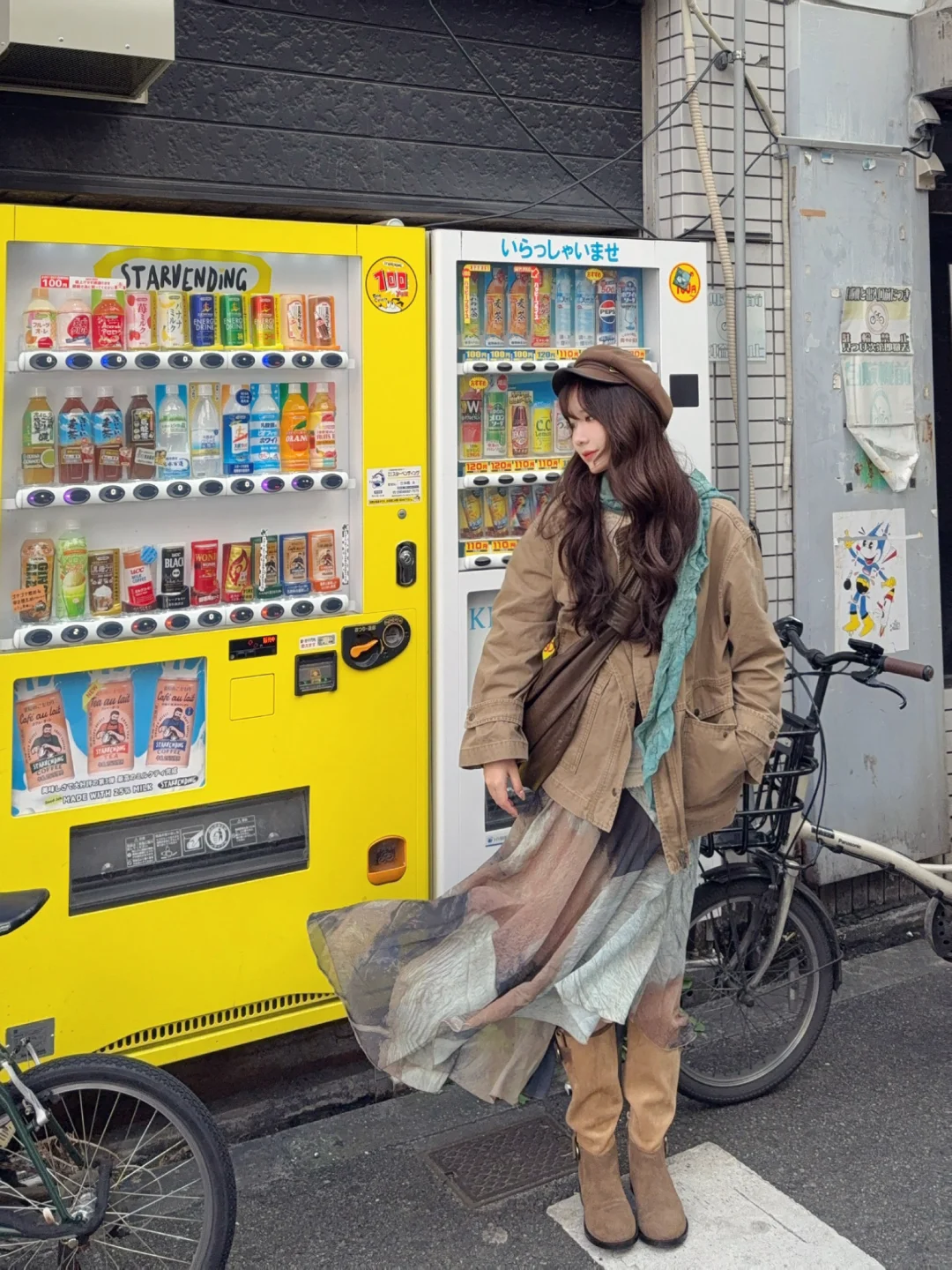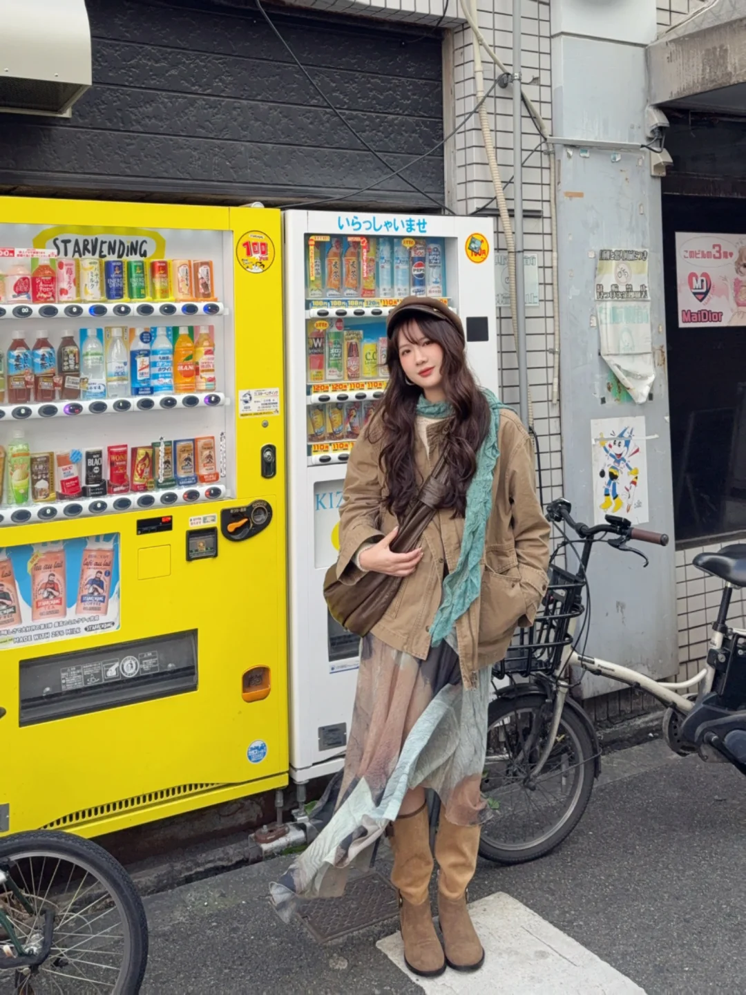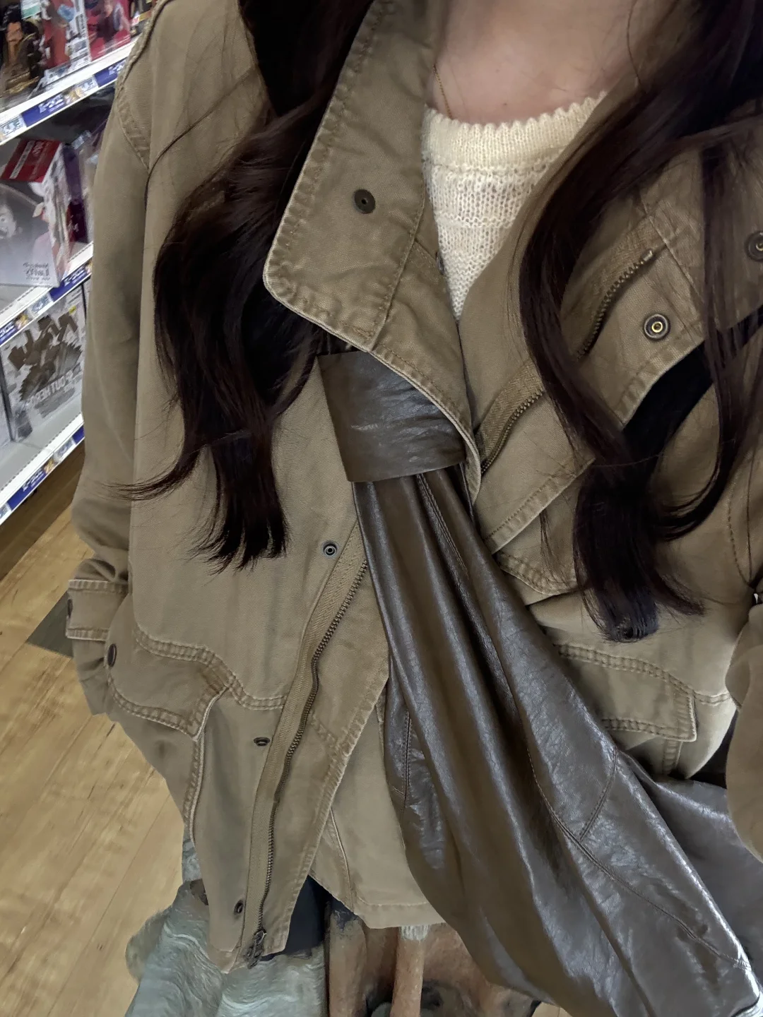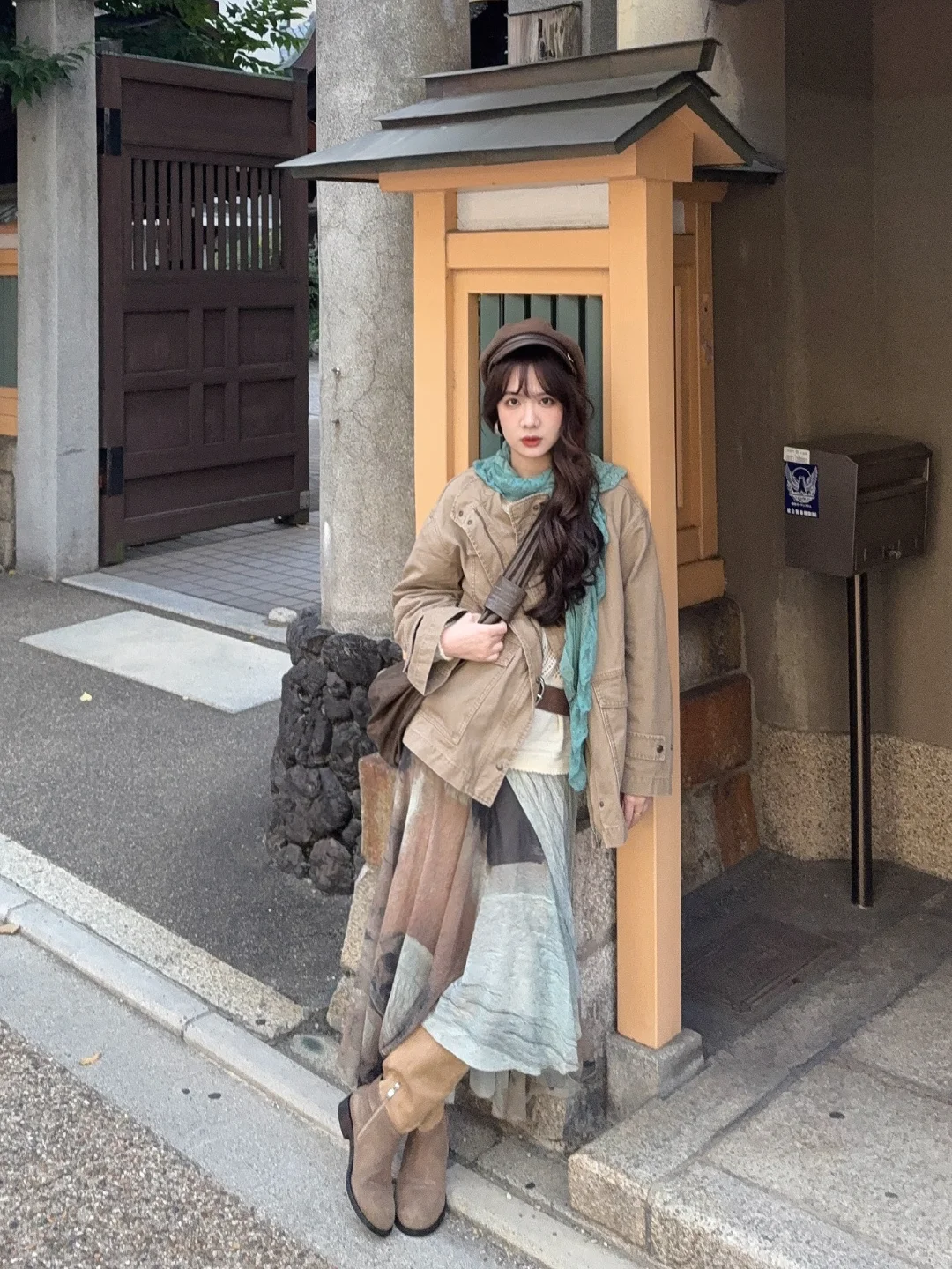 Vintage夹克➕不规则水墨晕染半裙➕卡其色棕色系长靴