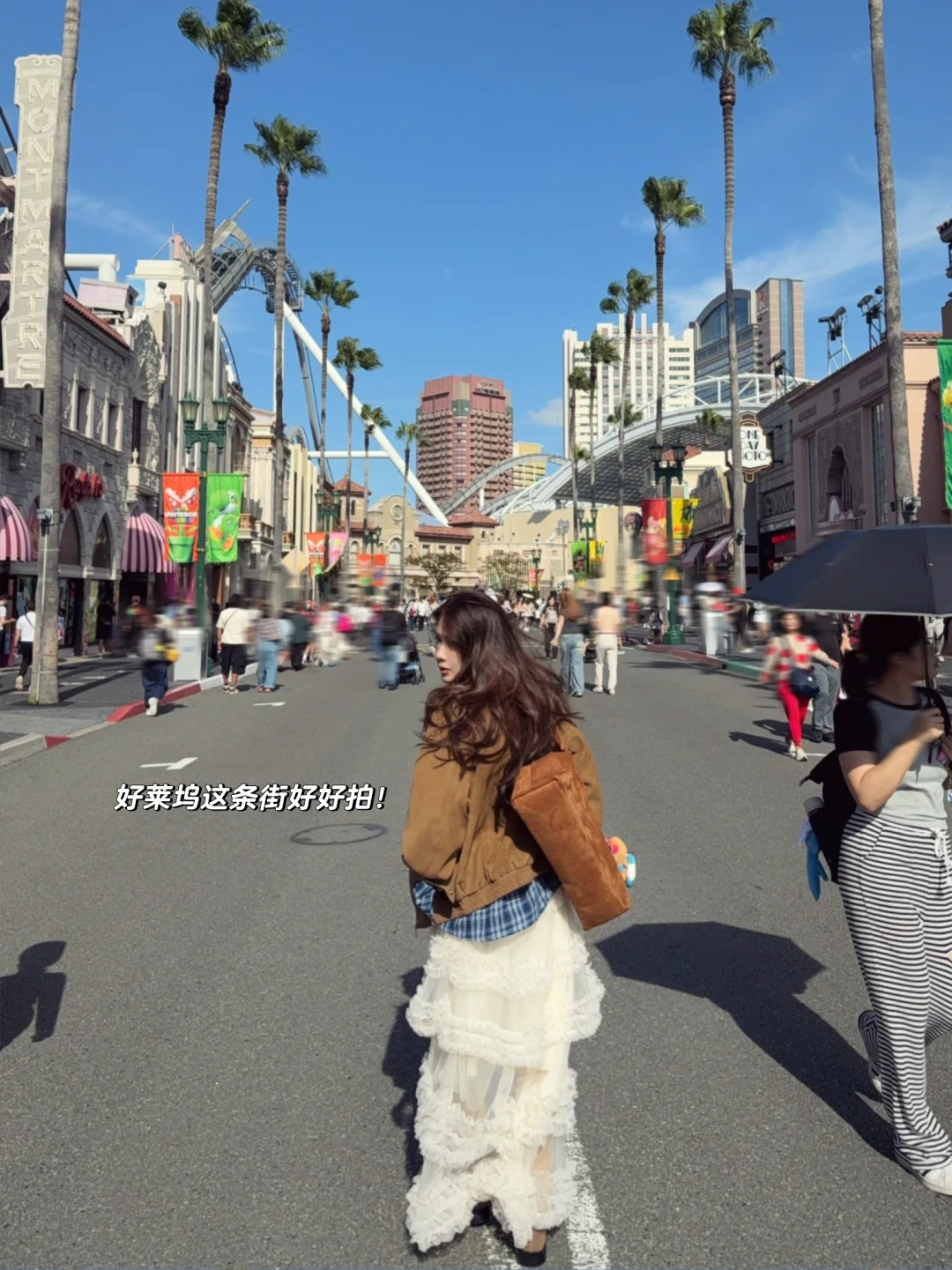 这套穿搭很出片!来环球很建议穿裙子 非常有感觉~