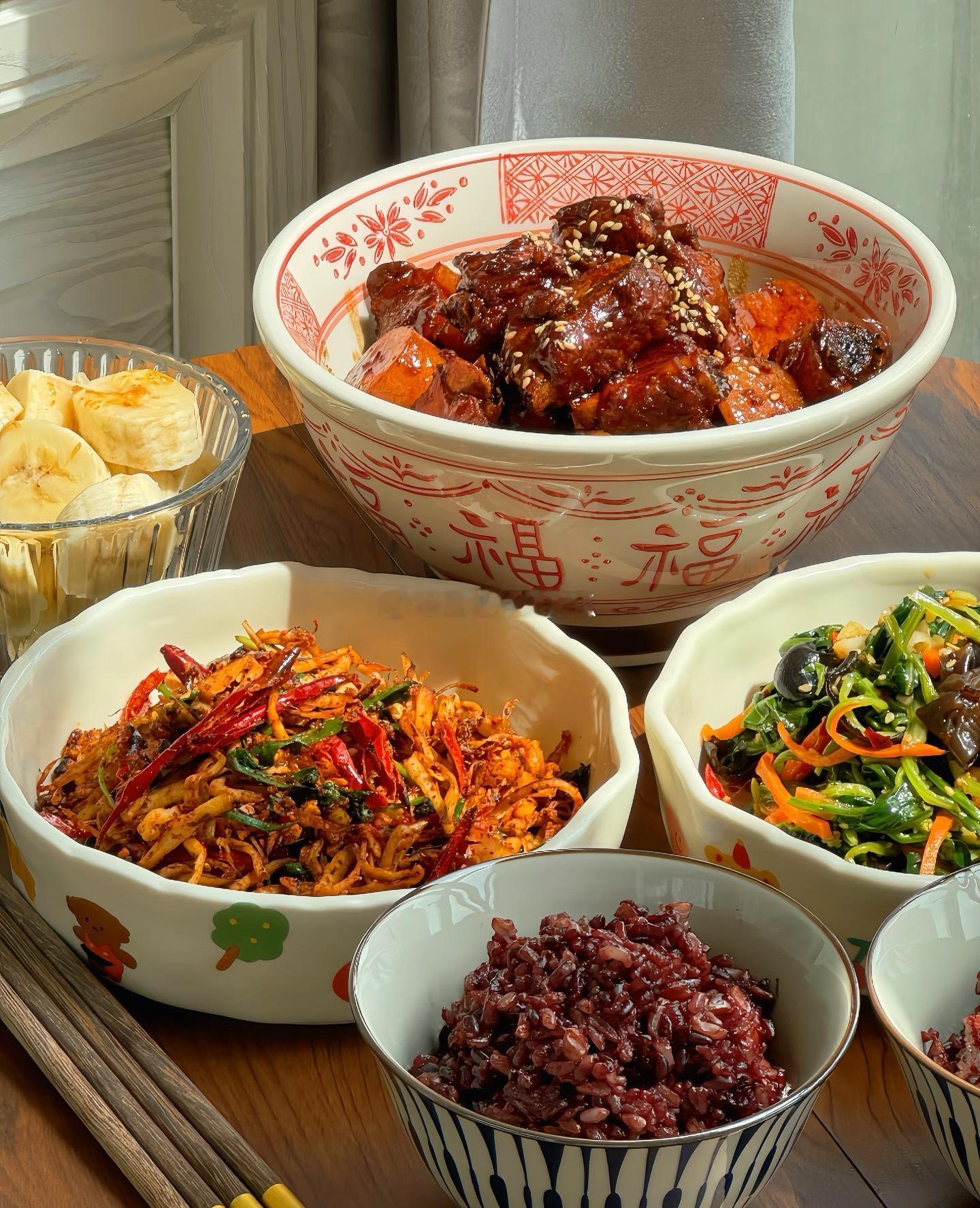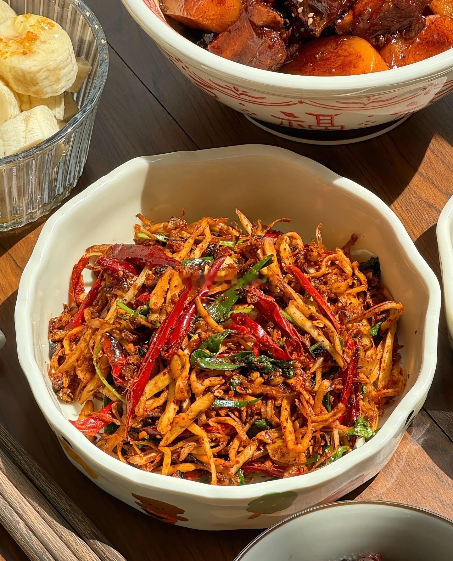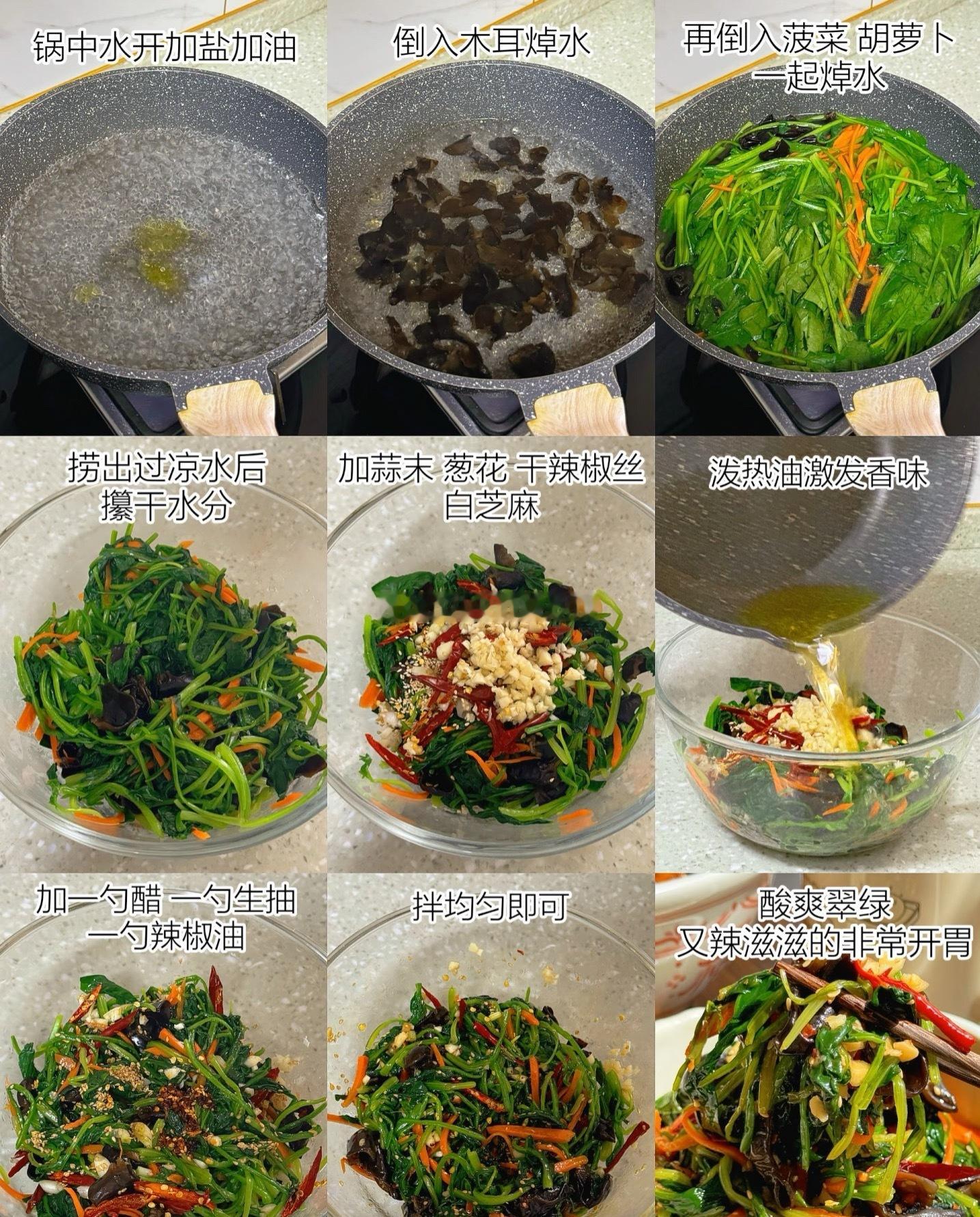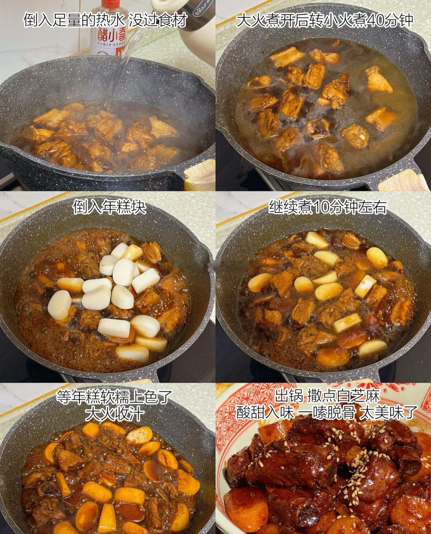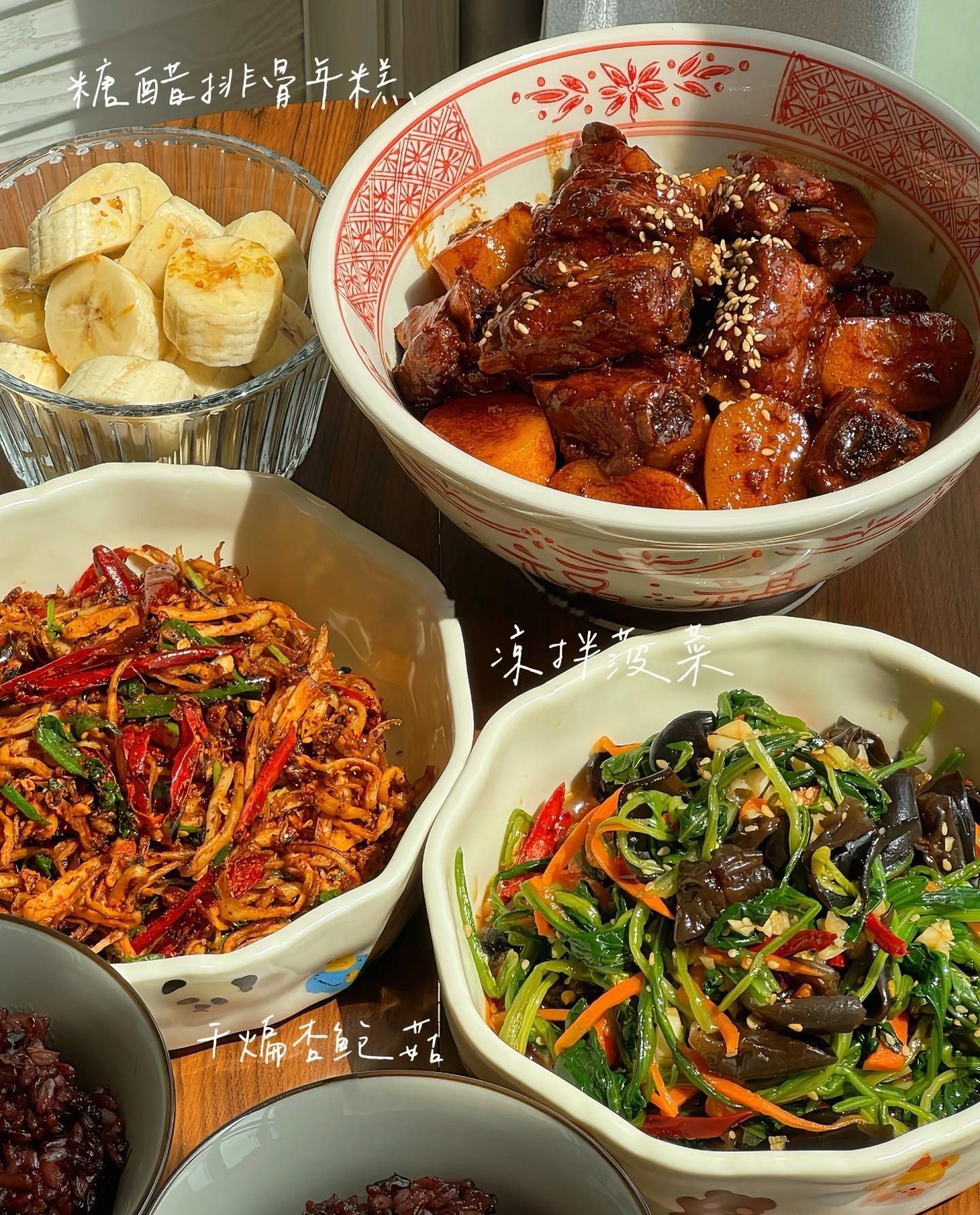 我的年度美食清单 🍽️🍽️虽然工作忙碌,但还是坚持下班回家自己做饭。今天来分享我的年度好菜,分享我最爱吃的三道菜教程,好吃好做又有营养。【糖醋排骨年糕】🥩食材准备:排骨、年糕、姜片、白芝麻📝教程:1️⃣排骨用淀粉抓洗干净,沥干水分后备用2️⃣调一碗料汁:两勺料酒、两勺生抽、两勺老抽、四勺糖、少许盐,调匀备用3️⃣锅中油热下姜片炒香,倒入排骨直接生炒至变色4️⃣再倒入备好的料汁,淋两圈山西老陈醋提提味,大火翻炒至均匀上色5️⃣倒入足量的热水没过食材,大火煮开后转小火煮40分钟6️⃣倒入年糕块,继续煮10分钟左右7️⃣等年糕软糯上色了,大火收汁8️⃣出锅!撒点白芝麻!酸甜入味,一嗦脱骨 好美味🤤【干煸杏鲍菇】🍄食材准备:杏鲍菇、干辣椒、蒜、葱、香菜📝教程:1️⃣杏鲍菇撕成条,锅中水开焯水2分钟后捞出过凉水,挤干水分2️⃣锅中油热倒入杏鲍菇,中火煎一会儿3️⃣倒入蒜末和干辣椒丝,翻炒至有点干滋滋的ps:不要炒太久,这有点小翻车,炒过头4️⃣加一点点盐、半勺辣椒粉、半勺孜然粉(根据喜欢的口味加即可)5️⃣加一勺陈醋,增加风味6️⃣倒入葱段和香菜,翻炒均匀即可【凉拌菠菜】🥬食材准备:菠菜、木耳、胡萝卜、葱、蒜、干辣椒、白芝麻📝教程:1️⃣锅中水开加盐加油,倒入木耳焯水,再倒入菠菜、胡萝卜一起焯水,捞出过凉水后攥干水分2️⃣加蒜末、葱花、干辣椒丝、白芝麻,泼热油激发香味3️⃣加一勺陈醋、一勺生抽、一勺辣椒油,拌均匀即可!