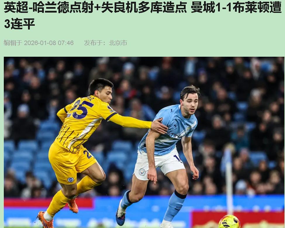 说实话,我昨晚看完球,真睡不着了。传控足球的祖师爷,快被自己那套“传”死了!这哪是争冠,简直是给阿森纳的冠军奖杯提前抛光呢! 后防线上,临时搭伙的阿莱恩和胡桑诺夫,互相不熟得像陌生人。格罗斯差点砸进头球,卡迪奥卢的单刀吓出冷汗——但最难受的,是你看着他们连球都出不利索!被布莱顿一逼,要么回传门将,要么大脚找哈兰德,这画面你敢信?多纳鲁马扑得再帅,也遮不住体系的裂缝。 哈兰德是进了点球,破了球荒。可下半场那脚软绵绵的推射,直接被门将抱住。饥饿感呢?那股子狠劲好像也跟着迪亚斯一起伤了。现在不是中场喂不到,他自己吃饼的胃口也差了。 好家伙,对面三笘薫直接给上了一课。扳平那球,内切、晃动、低射,打的就是曼城防守移动慢。后面还有助攻和门柱。他用个人能力啪啪打脸。看看咱们的福登、B席,除了那脚门柱,存在感呢?技术流被技术流教育,真扎心。 连着三场平局,切尔西补时绝平,利物浦硬仗没拿下,这场领先都守不住。冠军气质在流失,以前那种“我进一个你就没戏”的稳劲儿,没了。现在多赛一场还落后,自己不稳,指望别人掉链子? 说白了,问题就摆在这儿:防线一伤就崩,前锋终结下滑,关键战缺个一锤定音的狠人。控球率高有什么用?足球是比谁进球多!瓜帅,魔法书该翻页了,不然这赛季真可能提前交代。但想想,底子还在,调整来得及,就看能不能醒得比对手早了。英超-哈兰德点射+失良机多库造点 曼城1-1布莱顿遭3连平