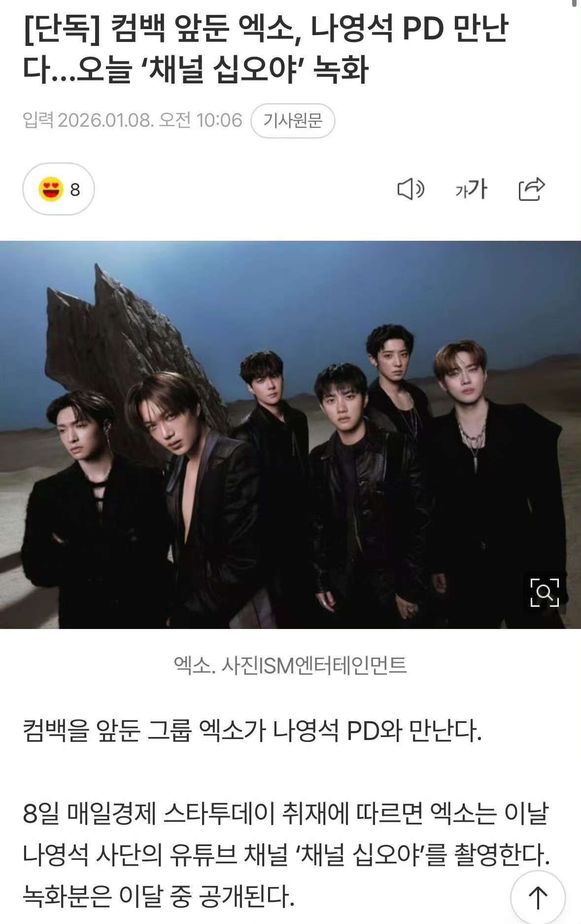 EXO出演出差十五夜EXO录制出差十五夜 即将回归的EXO,今天录制《出差十五夜》与罗PD见面 据8日每日经济的采访结果,EXO将于当天录制罗英锡团队的YouTube“十五夜频道”。录制部分将于本月内公开。 特别是这次录制是在EXO的正规8辑《REVERXE》发行之前进行的,因此更加备受期待。EXO在正规7辑《EXIST》之后时隔2年6个月回归,预计在节目中可以听到新专辑的幕后花絮。