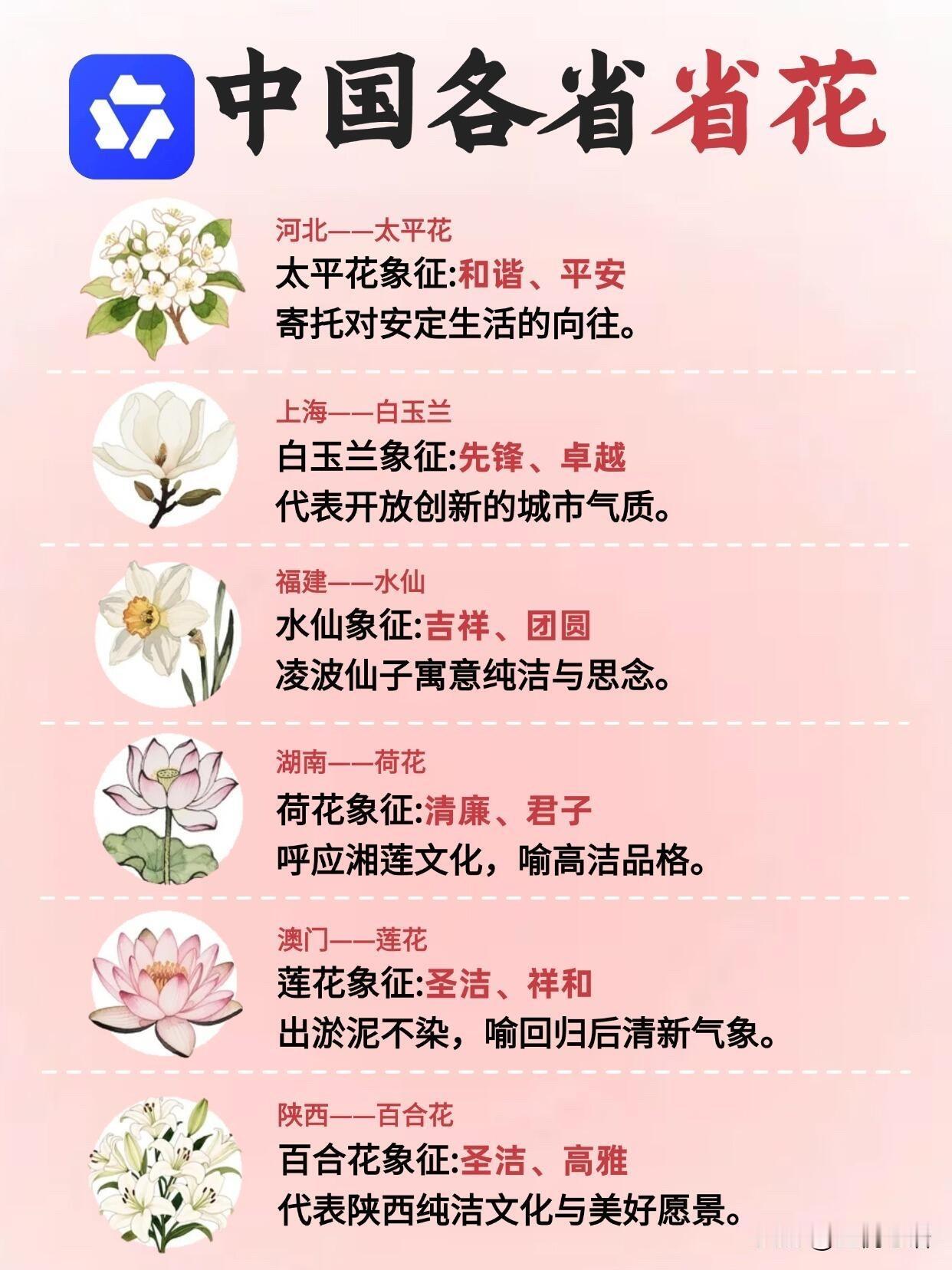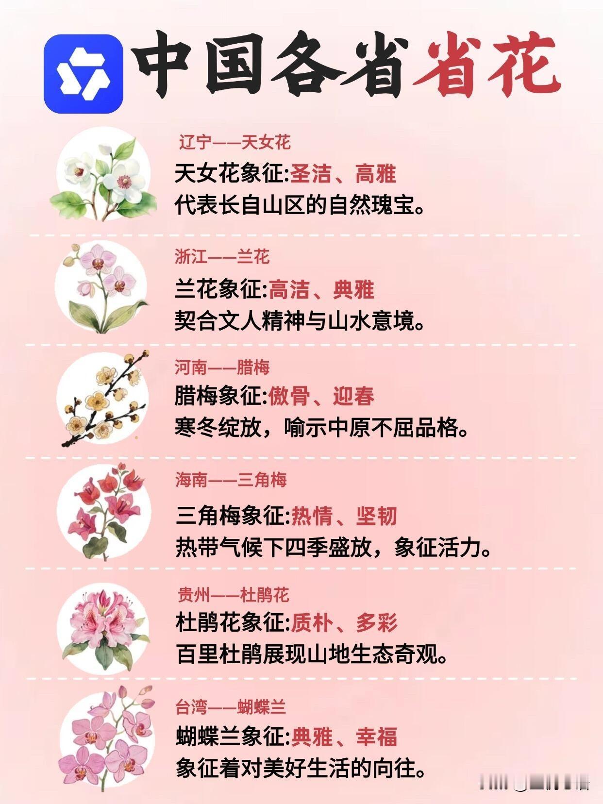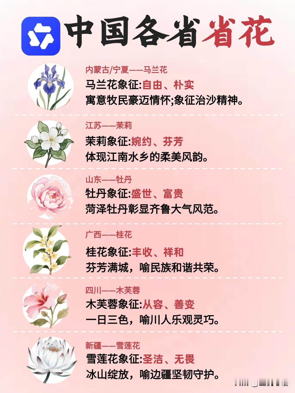 中国各省省花也太有讲究了! 你认识几个呢? 原来每个省份都有专属省花, 看完直接被文化内涵戳到! 北京月季带劲儿,上海白玉兰清雅,广东木棉花像英雄,西藏格桑花耐造。每朵花都藏着地域气质,既好看又有寓意,太有意思了! 以前路边见着好看的花,只会说“哇好漂亮”,叫不出名字超尴尬。现在有千问AI,拍照一拍就识别,花名、花语、生长习性全知道。 不管是想了解家乡省花,还是出门认花,它都是随身科普老师。爱花的朋友,真的可以冲!