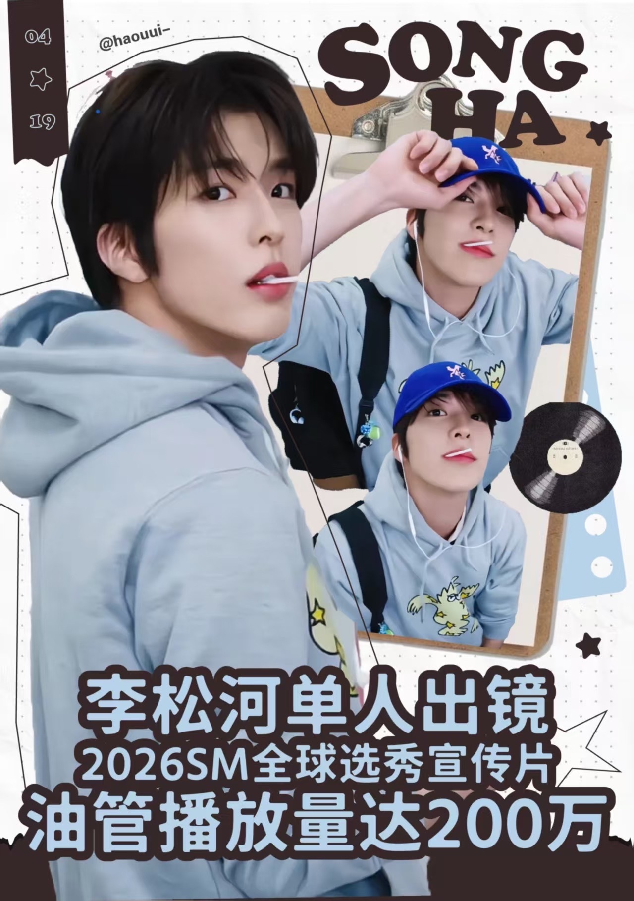 李松河单人出镜SM选秀宣传片油管播放量破200万!坐等出道,未来可期!