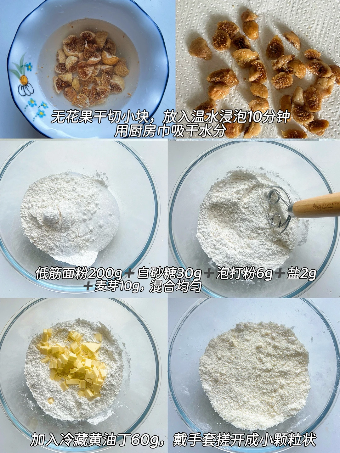 1️⃣无花果干切小块,放入温水浸泡10分钟,用厨房巾吸干水分