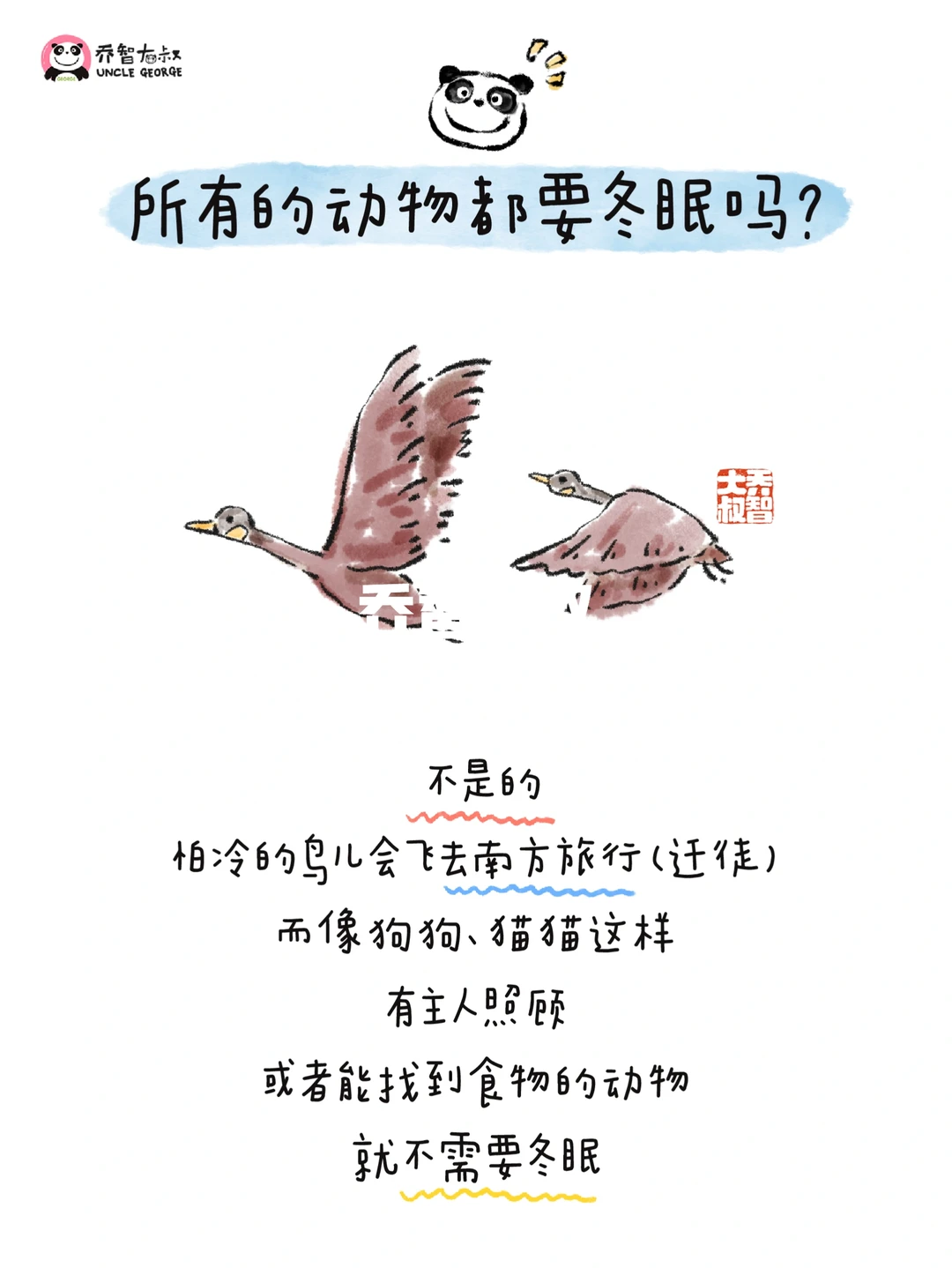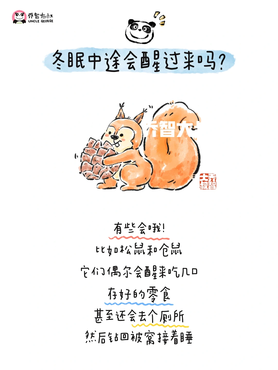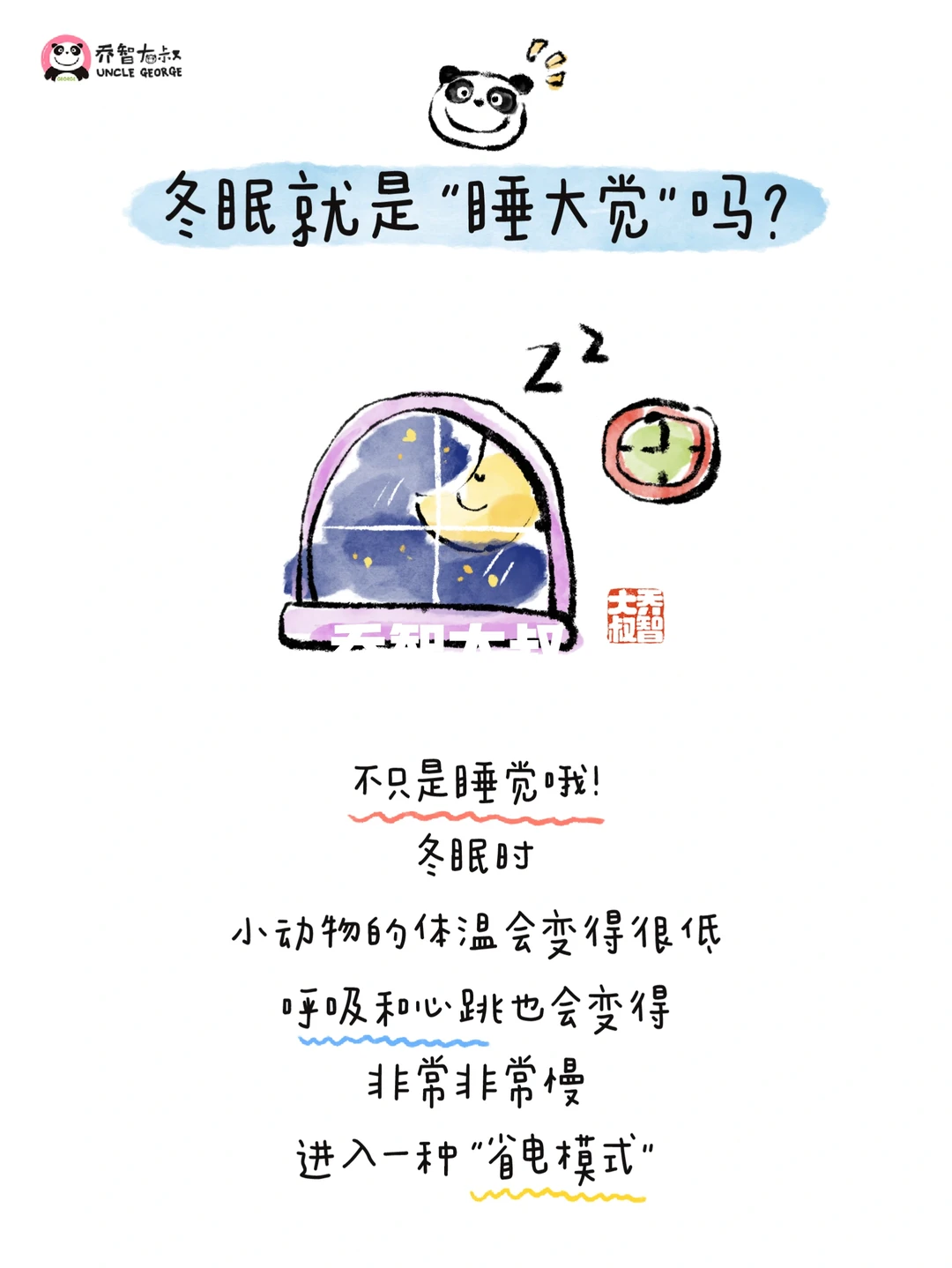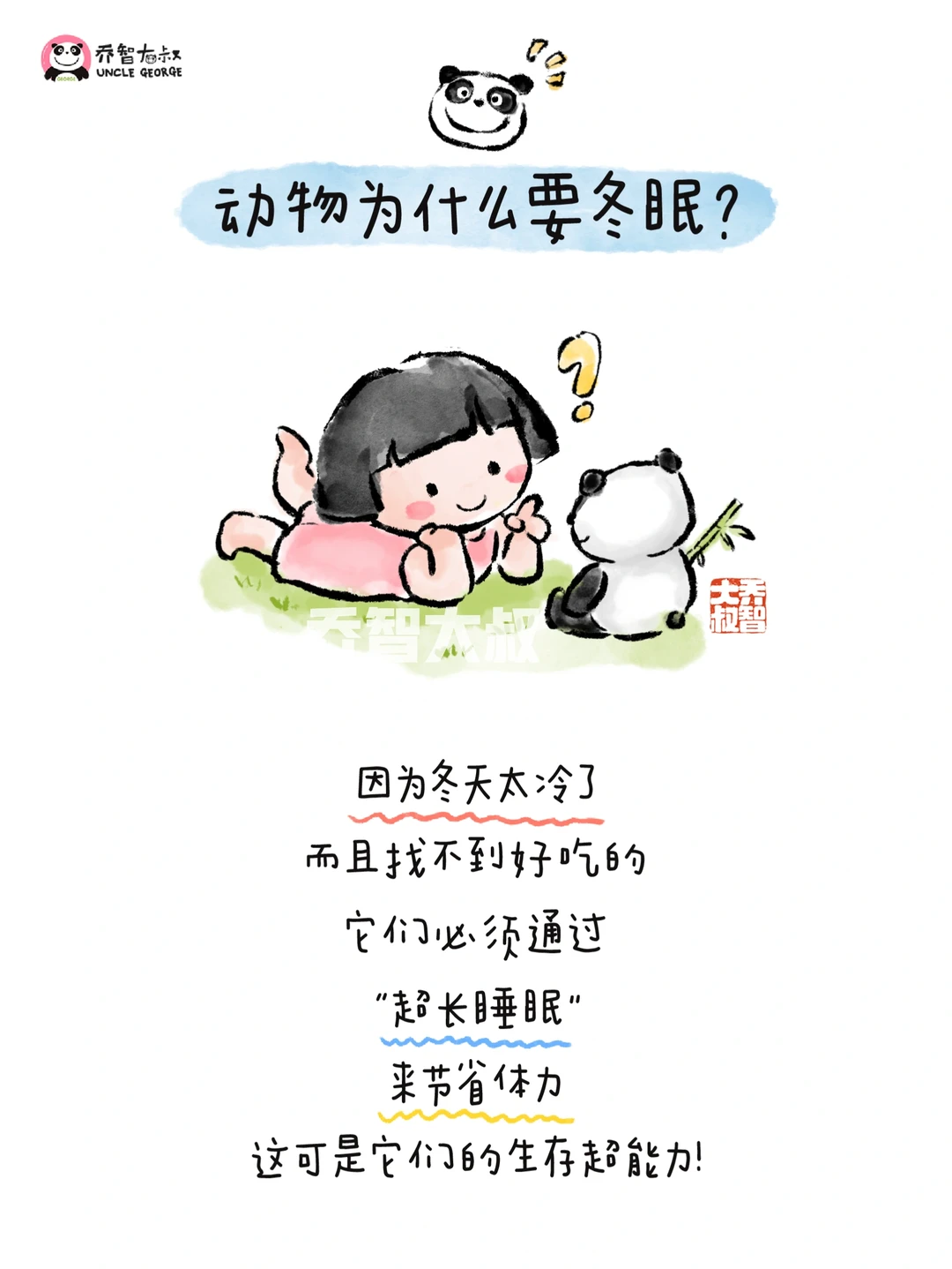 大自然躲猫猫时间到!🤫 天冷了 小动物们都去哪儿啦? 是去南方旅游了 还是钻进被窝 开启“超长待机”模式啦?🐻 今天乔智大叔 带小朋友们去看看 那些藏在 树洞里、土堆下、冰层底的 冬眠小秘密!❄️ 把这 8 个 关于冬眠的冷知识 讲给孩子听 满足人类幼崽的 奇思妙想✨