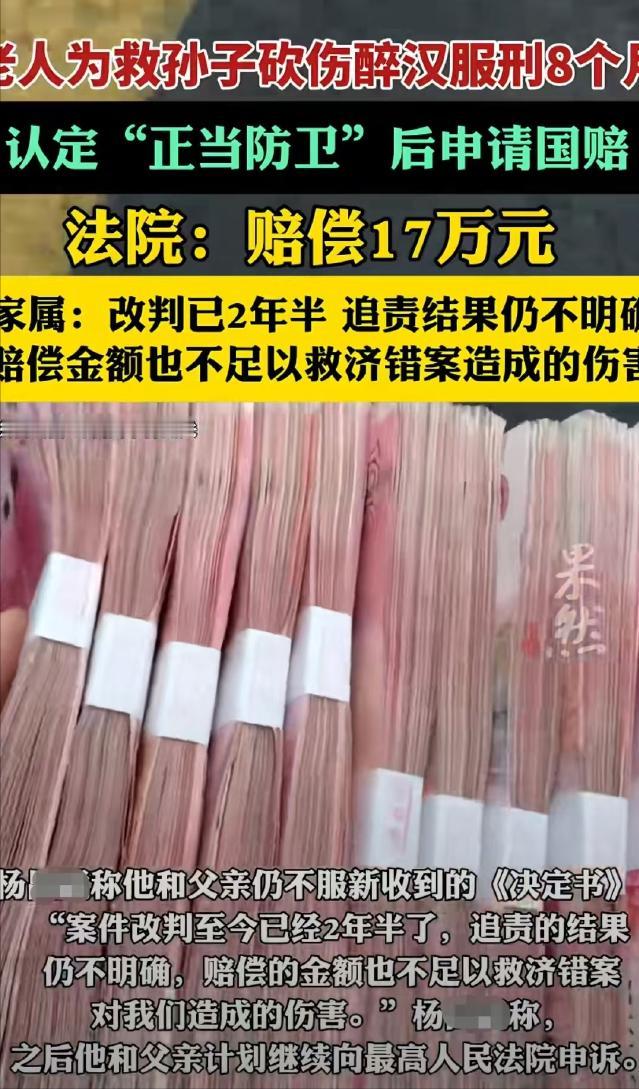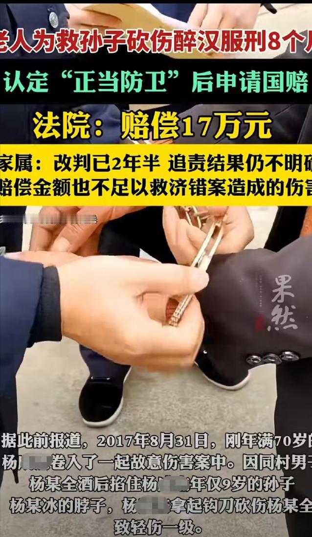 海南临高,男子醉酒后,突然掐住8岁男孩的脖子,男孩爷爷让男子放手,男子不肯,情急之下,老人用勾刀砍伤了男子。案发后,老人被认定为故意伤害罪获刑8个月,老人及家属不服,坚持认为自己是正当防卫,历经8年,本案迎来最新进展。 这场历时八年、耗尽一个农家全部心力的法律拉锯战,终于在2026年1月6日画上了一个不算圆满的句号。海南高院的工作人员走进杨家,送达了最终的赔偿决定书:维持原判,赔偿金额定格在17.25万元。 对于杨成杰一家来说,这笔钱不仅谈不上抚慰,更像是一种冷冰冰的嘲讽。这并非贪得无厌,而是当那一纸决定书摆在桌面上时,怎么算,这都是一笔无法抹平的亏空账。 17万多的国家赔偿款里,包含了被错误羁押243天的人身自由赔偿金11.5万余元,以及5.7万元的精神抚慰金。看着是不少,可为了跑赢这场官司,单是律师费这一项,家里就掏了12万。 这意味着,那位曾经身板硬朗、如今走路带喘的七旬老人,用了八年光阴和近9个月的牢狱之灾换回清白后,这一家子不仅分文未剩,还得倒贴这几年四处奔波的交通费、食宿费,以及那些看不见的、更无法计算的沉没成本。 故事得回到2017年的那个夏天,那是一切噩梦的起点。谁能想到,仅仅是因为邻居杨某全的一次醉酒,就彻底改变了两个家庭的命运。当时那块砸向杨家厨房的石头,引出了出来查看情况的8岁孙子。醉酒后的暴力毫无道理可讲,孩子还没反应过来,就被杨某全死死掐住脖子提到了半空,脸色瞬间憋成了骇人的青紫色。 那一刻的凶险程度,如今只有那个干活用的勾刀能记得。作为爷爷的杨成杰,在那个当下哪还有时间去思考法律的尺度?他只看到了孙子逐渐微弱的气息和对方蛮横拒不松手的疯狂。哪怕他最初只是去掰对方的手,甚至低声下气地请求,换来的却是一句令人胆寒的“掐死他”。 出于求生的本能,老人的刀挥了下去。第一刀下去人松开了,可因为恐惧和惯性,老人没收住手又挥了几下。 就因为后面这两下挥舞,原本清晰的“救人”行为,在法律的显微镜下被层层解构。在很长一段时间里,那惊恐之下的连续动作,被早期的判决定义为“泄愤”。法院的一审和二审文书里,那些冷冰冰的字眼判定老人防卫过当,甚至给他贴上了“故意伤害罪”的标签,从判刑一年到改判八个月,每一天刑期都像刻在这个家庭尊严上的伤痕。 这种痛苦是双重的。杨成杰在看守所里熬日子,而墙外那个原本还算殷实的家也在极速崩塌。儿子杨树为了给父亲申诉,辞掉了月薪七八千的工作。那个正当壮年的汉子,不再是家里的顶梁柱,反而成了信用卡的透支者。 这八年里,家里的十几亩地荒了,曾经充满烟火气的日子,被一张张火车票、一份份申诉材料填满。村里的风言风语比荒草长得还快,孙子甚至一度不敢靠近刚出狱的爷爷,因为老人身上带着股说不清的压抑和“囚犯”的阴影。 哪怕转机在2023年5月已经到来——检方最终的一纸《不起诉决定书》掷地有声,明确指出不能要求老人在极端恐慌中精准控制反击强度,认定了这是正当防卫。法律层面的“无罪”二字虽然写得清楚,但现实生活里的“污名”却很难擦除。 杨成杰父子想要的其实不只是钱。他们在申请国家赔偿时提出了128万元的诉求,这里面不仅有算得清的律师费、误工费,更有一种想要“彻底正名”的执念。他们要求法院院长登报道歉,甚至想追究当年办错案的人员责任。 因为在他们看来,法院工作人员仅仅跑到村里开个座谈会、在墙上贴一张A4纸大小的澄清通告,实在太过单薄。风一吹,那张纸边角卷起,没几天可能就掉了,甚至好多村民至今还不知道杨成杰其实是清白的,背后的指指点点从未停歇。 然而,《国家赔偿法》有着它严格的边界和计算公式。每日475.52元的赔偿标准是死的,法条里没写要赔律师费,那就不能赔;法条规定精神抚慰金要有“严重后果”才支付,且有一定比例限制,法院给出的5.7万元已经是斟酌后的结果。至于追责,那属于另一个法律程序,不归国家赔偿管。 这种法理与情理的错位,让最后的结局显得格外苍凉。高院的终审裁定,维持了二中院的决定。那个曾被按在地上几乎窒息的家庭,虽然在名义上赢回了公道,但在经济账本上却是彻底的“输家”。 现在,杨树站在老家门口,看着法院贴的那张澄清通告被风吹得呼呼作响。父亲从硬朗变得佝偻,自己从壮年熬得满脸疲惫,孩子童年的阴影也未必能散去。法律给了他们最公正的答案:杨成杰没有犯罪,他是保护孙子的英雄。可那个英雄的代价,是掏空了两代人的积蓄和整整八年的好光景。 参考信息:环球网. (2026-01-07). 老人为救孙子砍伤醉汉服刑 8 个月,认定 “正当防卫” 后申请国赔,法院:赔偿 17 万元 九派新闻. (2026-01-07). 海南七旬老人救孙砍伤醉汉服刑 8 个月,认定 “正当防卫” 后获国赔 17 万元,家属将申诉