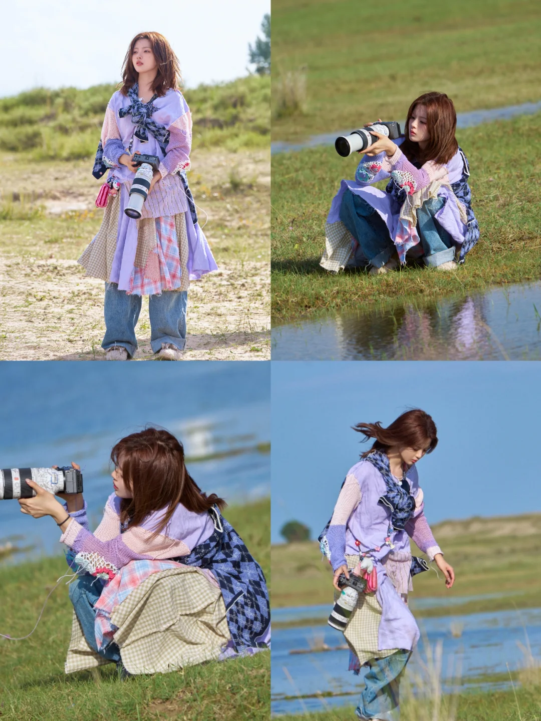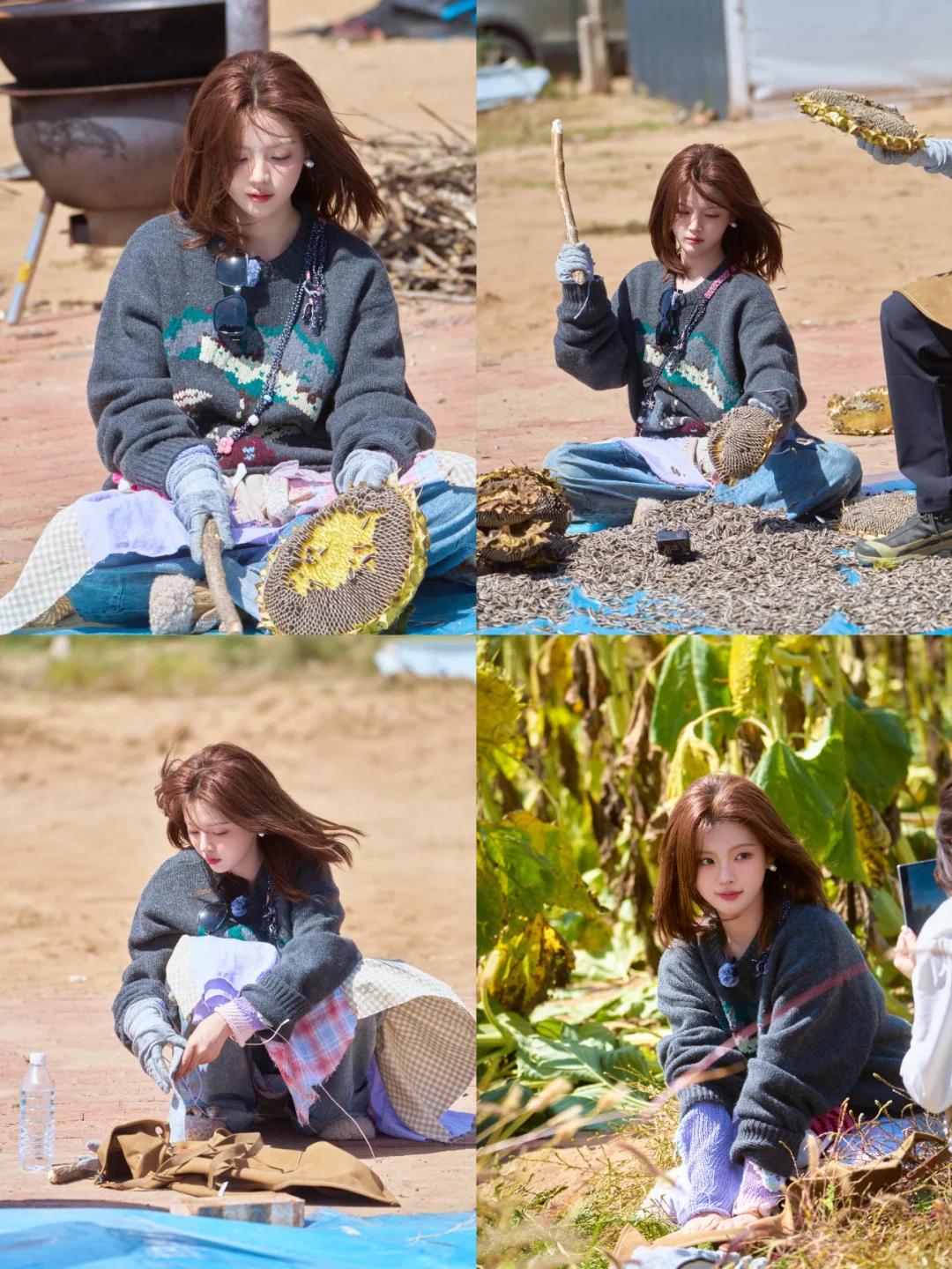 脚上那双卷毛小羊豆豆鞋,软萌又接地气,意外地和农田氛围超搭。