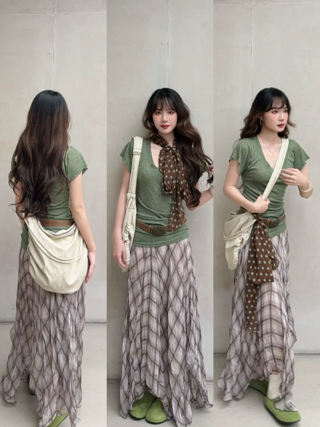 168/105左右 【纯分享🈚广 理性种草】 又是一期绿野仙踪 流浪艺术生穿搭哈哈哈 很喜欢这一期 特别好看 !!每套都很喜欢~ 单品之间可以互相搭配哈都不会不好看 真的一年四季都很喜欢绿棕配色 自带复古感~ 优雅又迷人(*´ω`*) 棕色也可以换成米白色卡其色咖色之类的颜色哈 棕色系的裙子不喜欢露腿 换成裤子也是可以的 长短自行而定 只是提供一个穿搭思路 配饰很重要!!腰带丝巾真的是点睛之笔~
