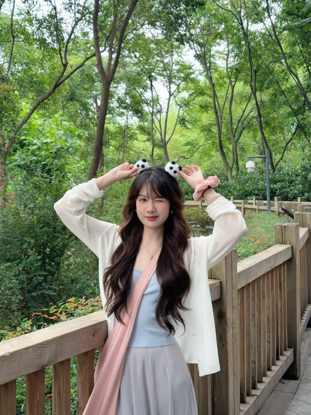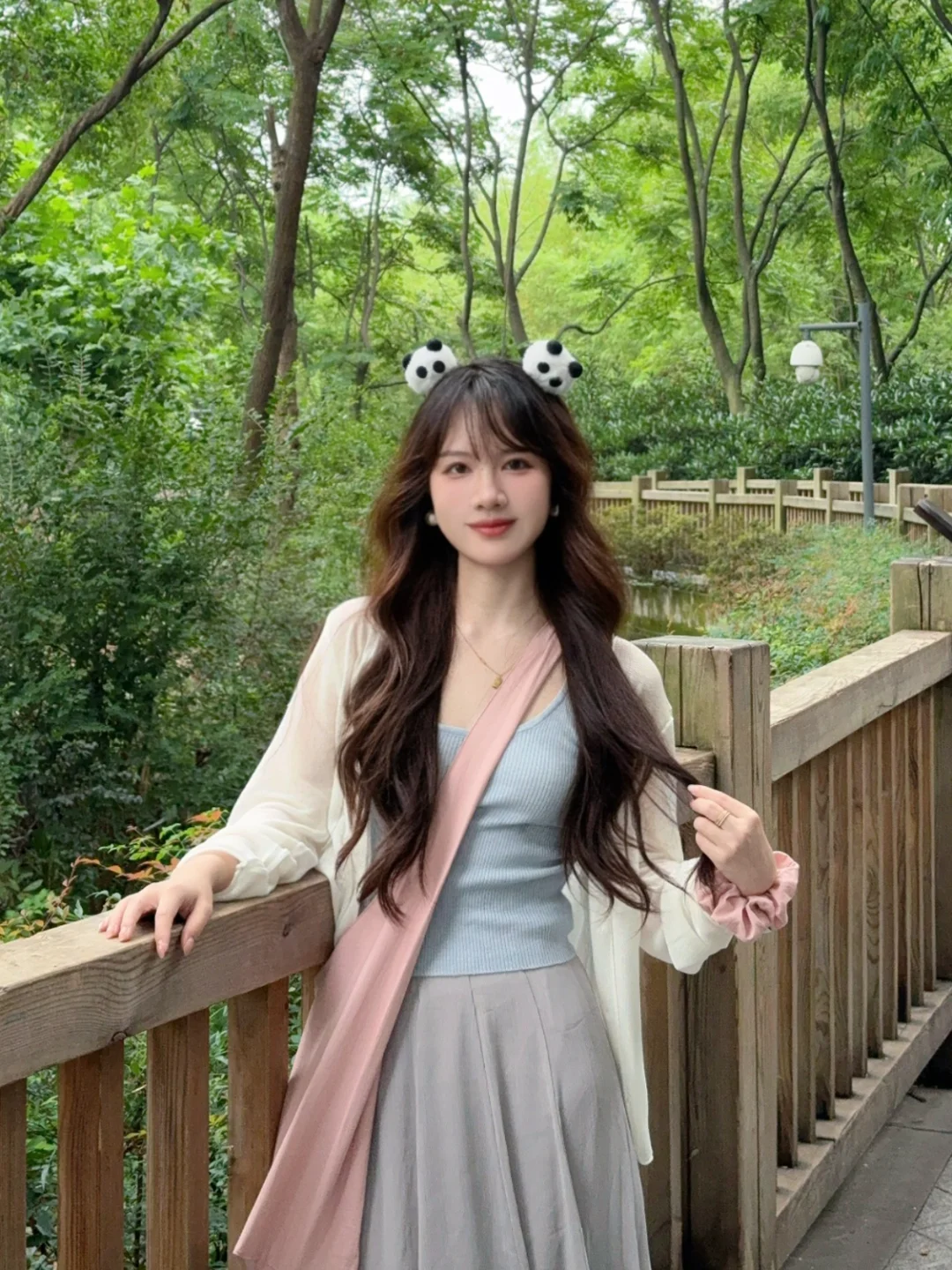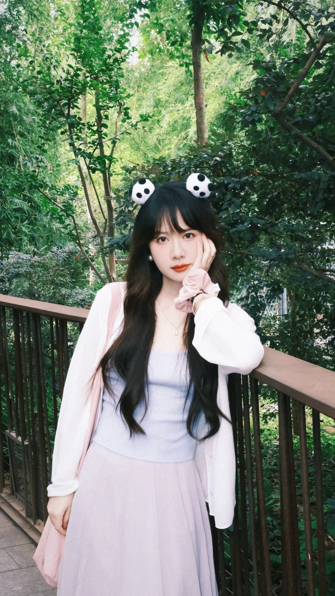 168/107左右 上个月去了一次熊猫基地 太热了太热了 熊猫根本不出来 没有看到花花 好遗憾🥲 打算天冷一点再去一次 今天是低饱和度灰粉蓝 很舒适显瘦的一套 纸片人既视感 白色开衫➕低饱和度马卡龙色系的吊带➕灰色半裙 很适合淡人的一套 也很适合通勤上班穿 比较舒适~