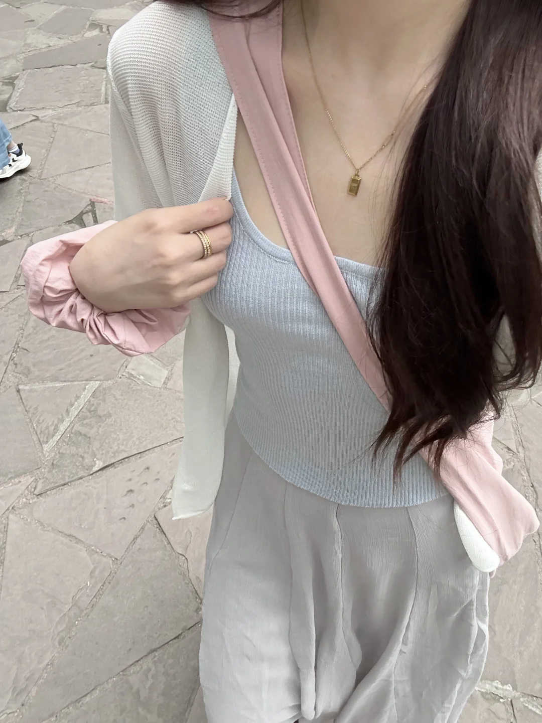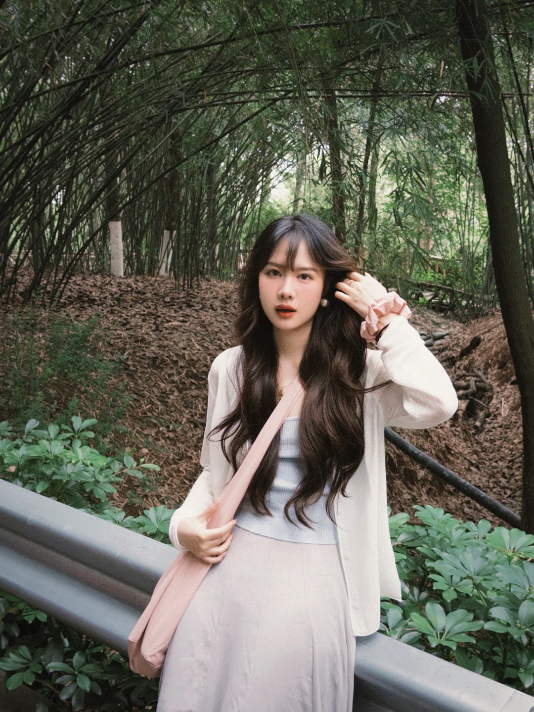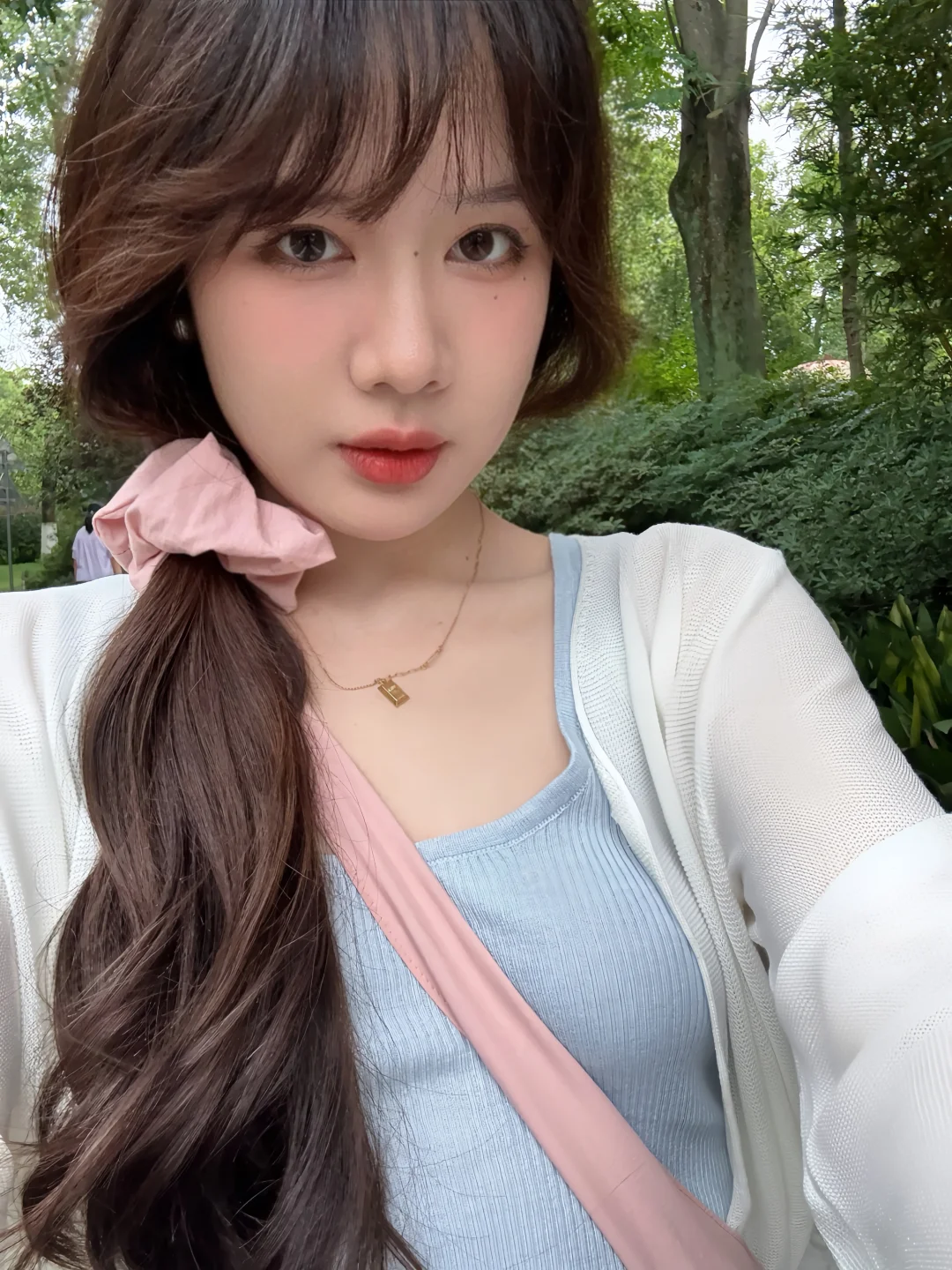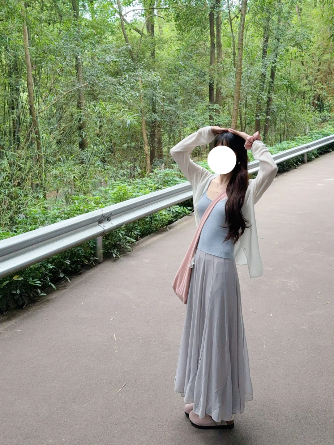 168/107左右 上个月去了一次熊猫基地 太热了太热了 熊猫根本不出来 没有看到花花 好遗憾🥲 打算天冷一点再去一次 今天是低饱和度灰粉蓝 很舒适显瘦的一套 纸片人既视感 白色开衫➕低饱和度马卡龙色系的吊带➕灰色半裙 很适合淡人的一套 也很适合通勤上班穿 比较舒适~