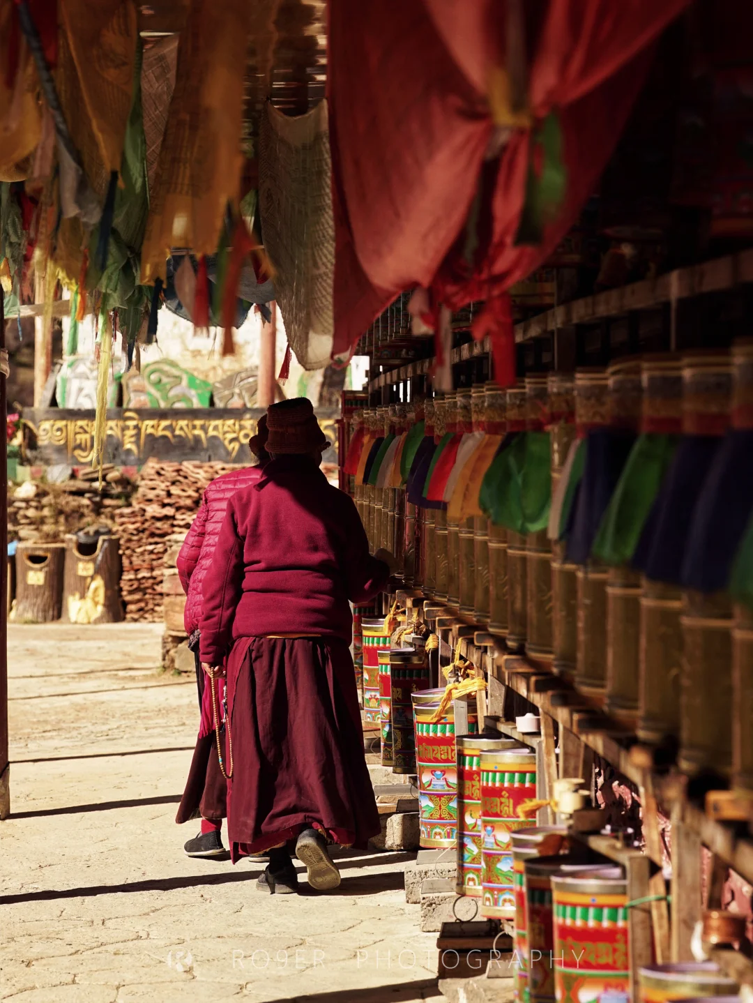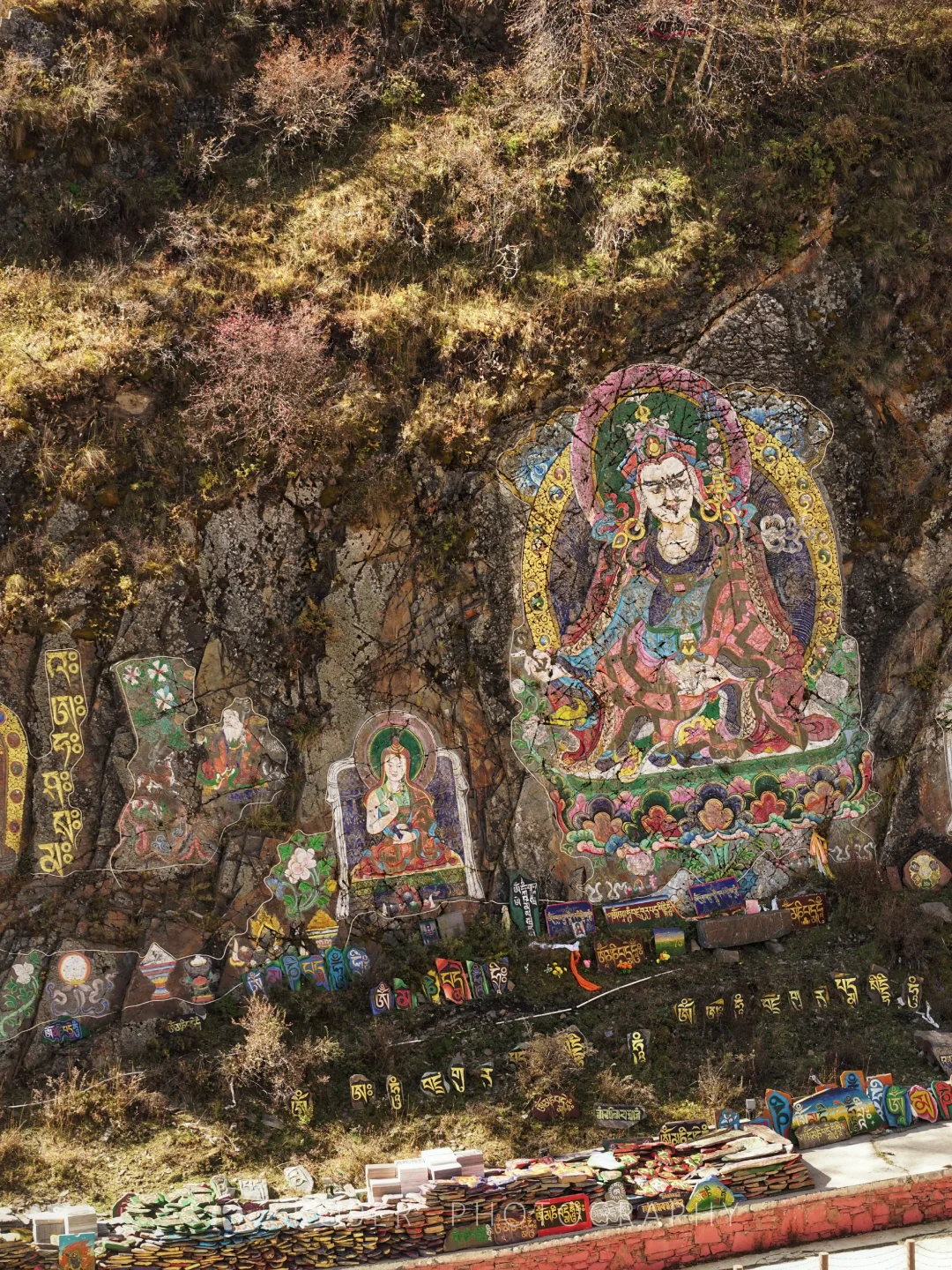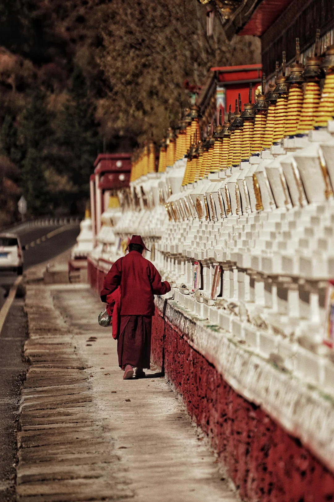 👉由50多万片不规则石板堆成的石墙异常醒目,和石渠的石经墙是如此神似,正反两面的经文共同组成了包括《甘珠尔》和《丹珠尔》在内的大藏经,据说是明末清初60多位石匠耗时9年才得以完成,从此在自然山水之间风化成一座信仰的丰碑