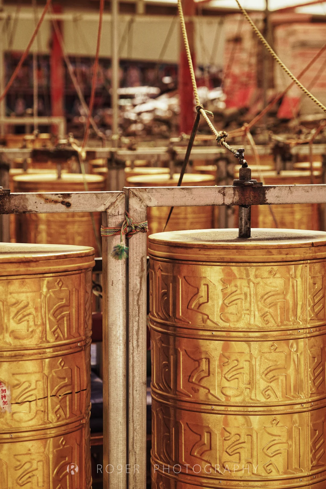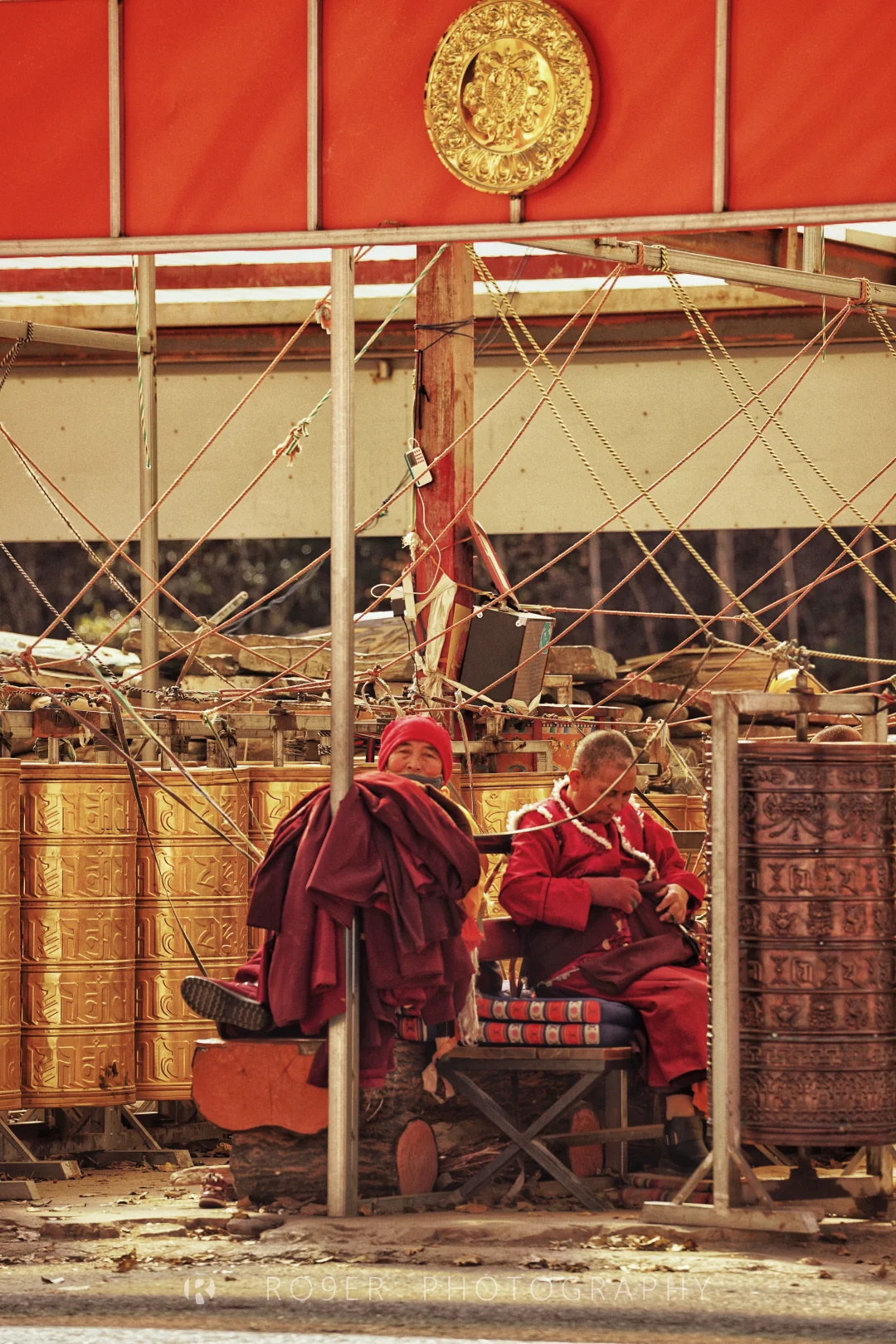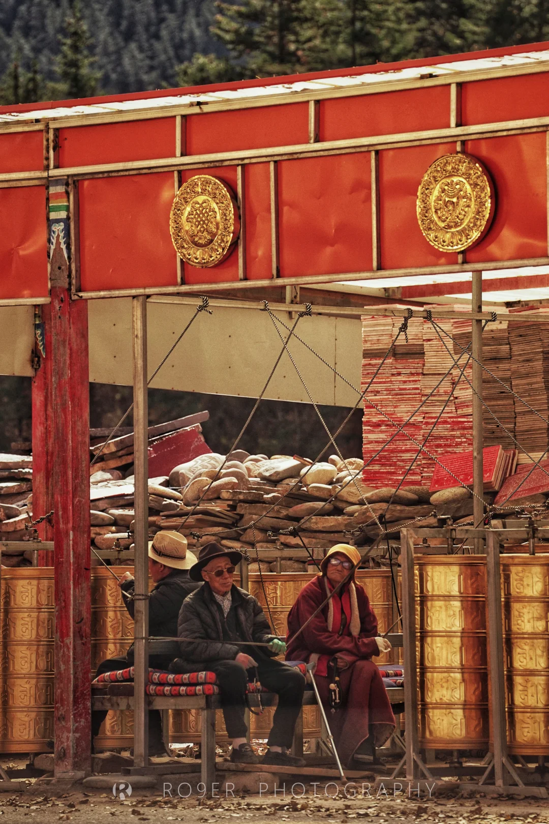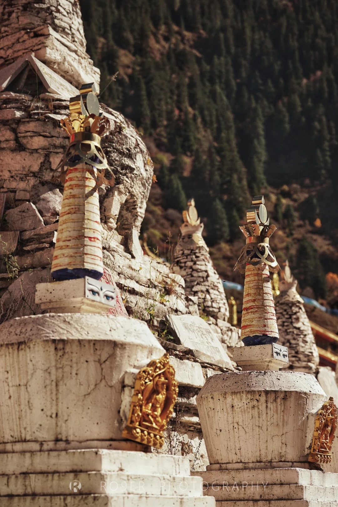👉曾克寺有着开放式的布局,从河边的【马头金刚圣泉】开始,走过150年前开始不断累积的【石刻群】,随信众在密密麻麻的【转经筒和白塔群】顺时针步行,在尽头的【菩提佛塔】折返,途径【莲花生大士殿】【度母殿】到达【大经堂】,注意门口其貌不扬的【坐床奇石】,那是曾经苯教向噶举派转变过程中双方高僧互相辩法的赛石