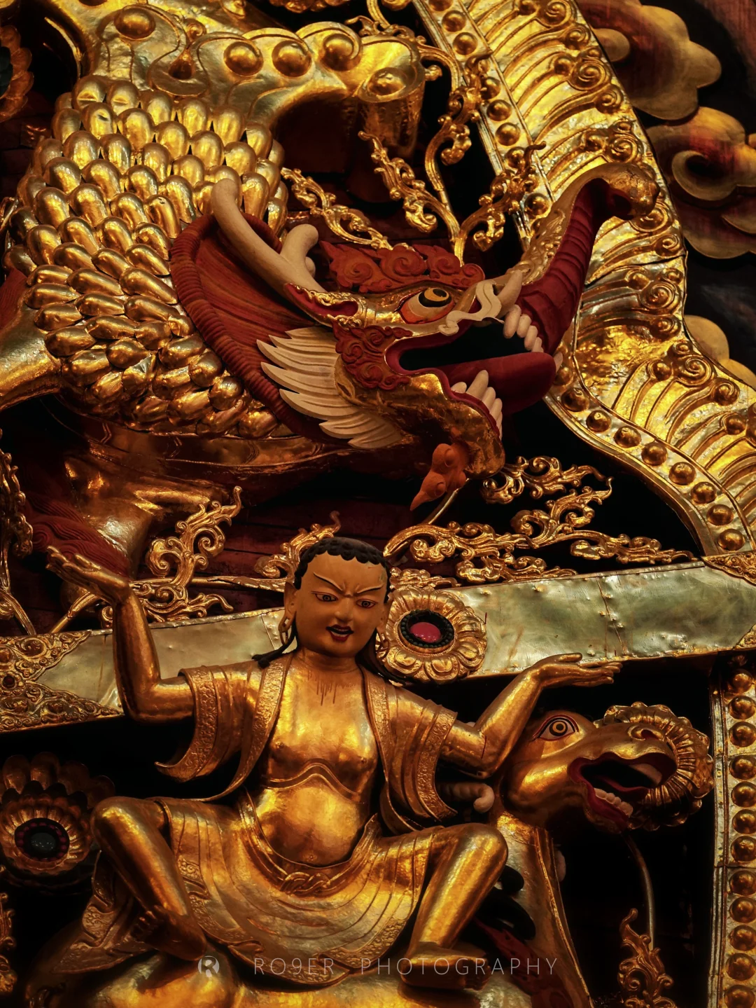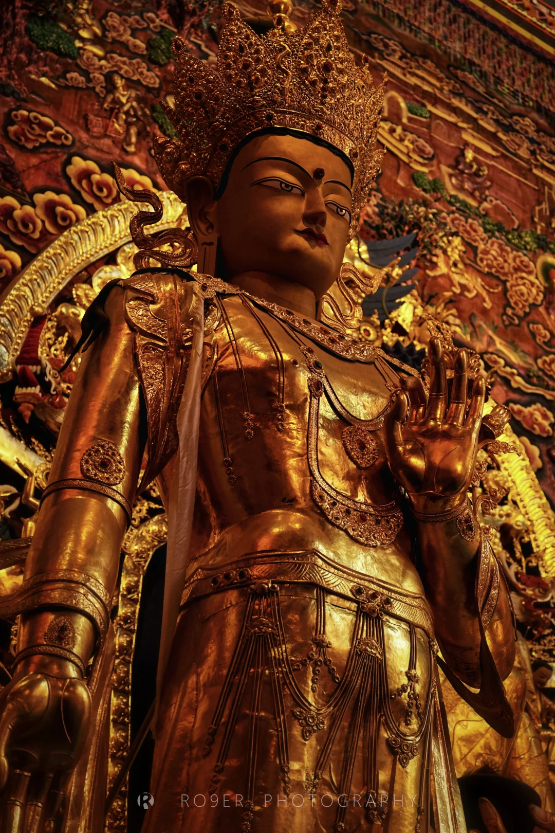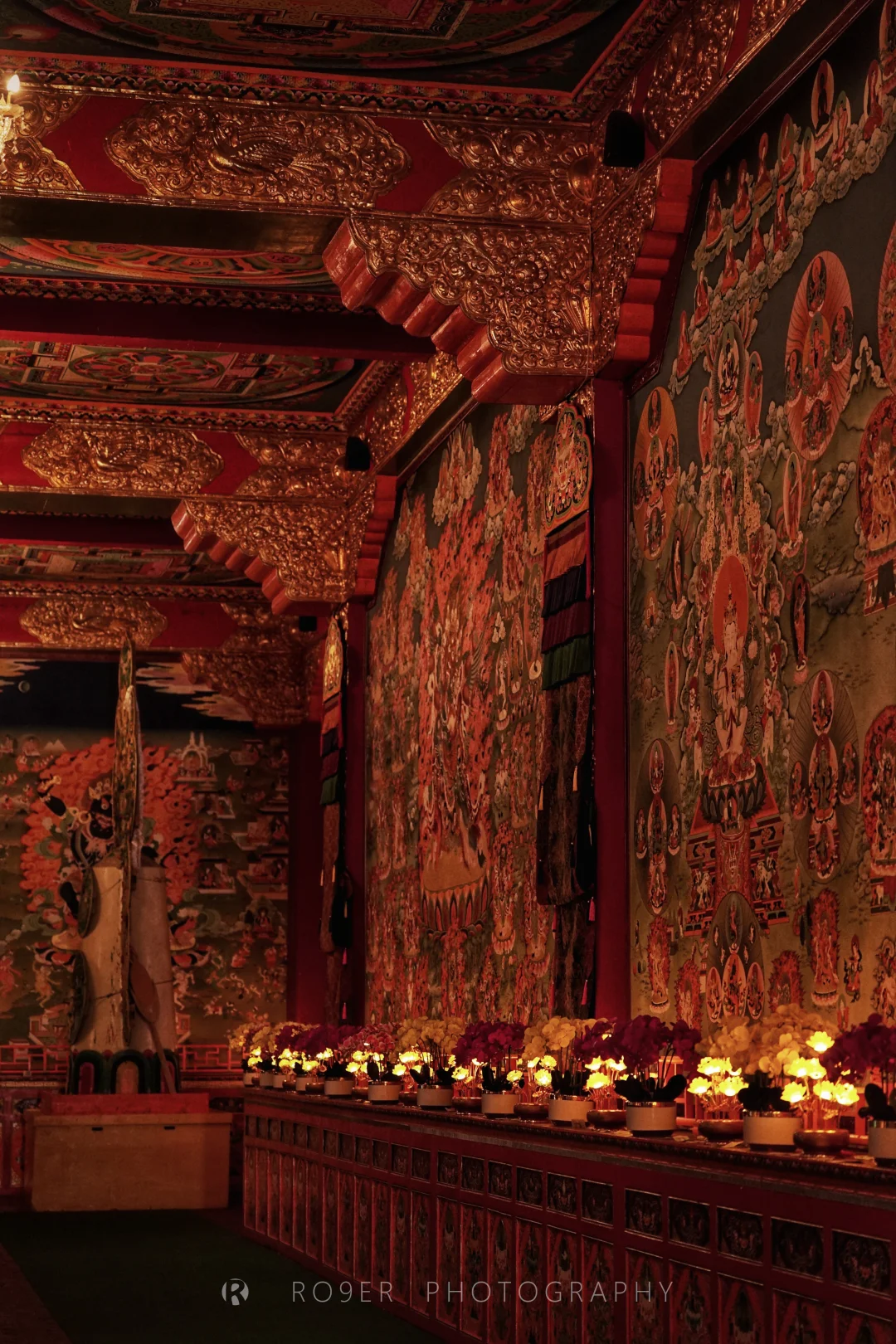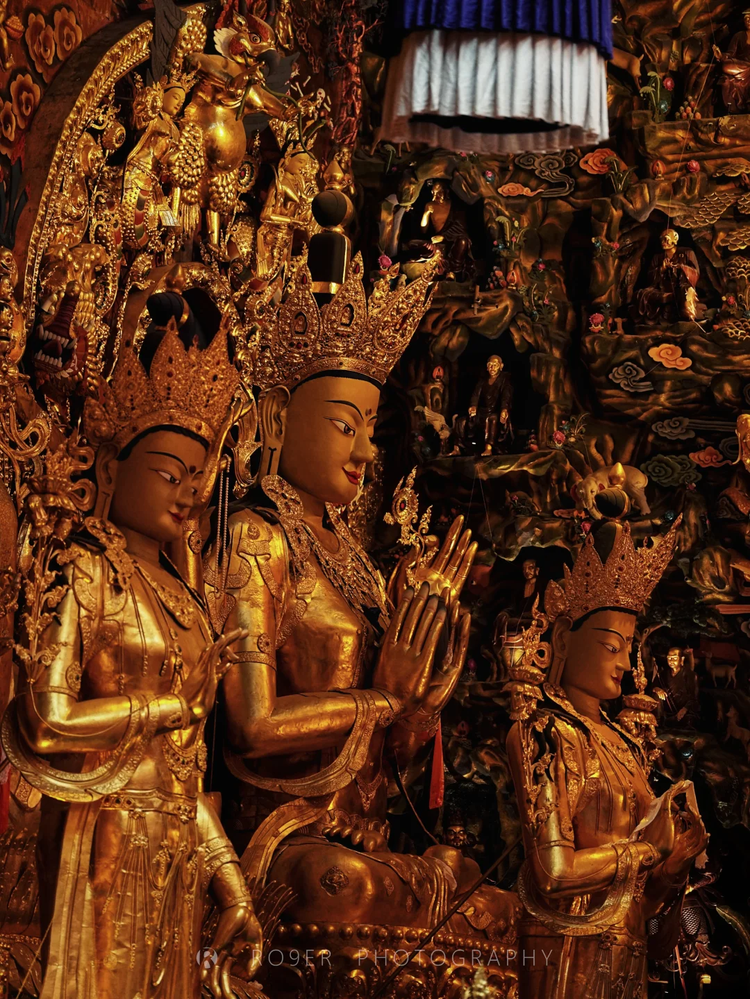 👉寺院核心区有【释迦殿/度母殿/莫扎法王纪念殿/老殿】等可前往参访,核心的核心当属通体金光的‼️幻化寂静忿怒坛城‼️,殿顶由百斤黄金所铸,其基座上下二部与坛城上下两殿由白度母、尊胜佛母、莲花生大师、格萨尔王猛将护法、寂静四十二尊、忿怒五十八尊天众等一系列造像,且尊尊精致