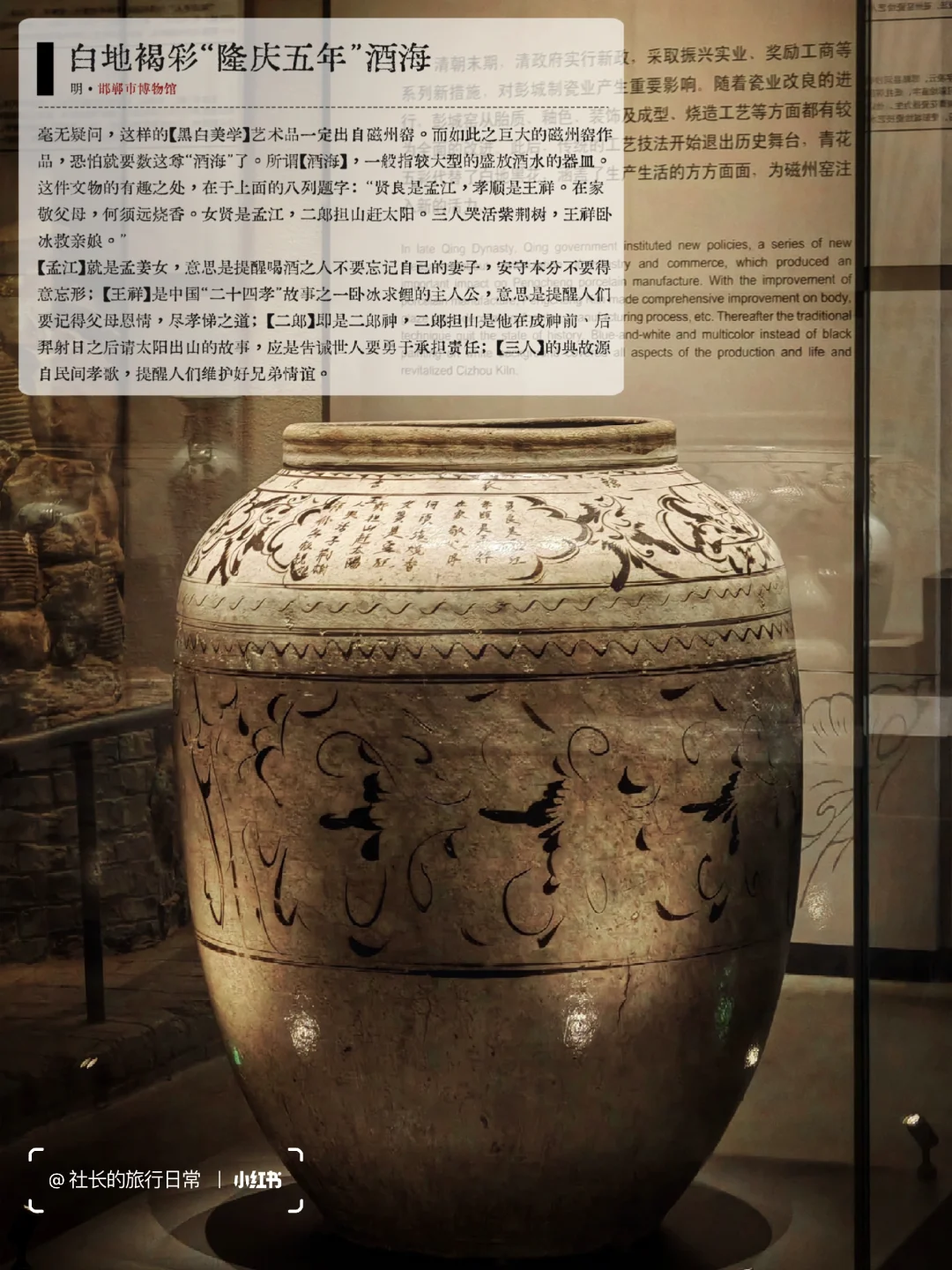 和彭城的磁州窑博物馆很像,浓缩了磁州窑专题精品,黑白配的时尚审美从千年前延续到了现在,还有一些诸如“人物靠枕”之类有趣的异形瓷可以开开眼界。