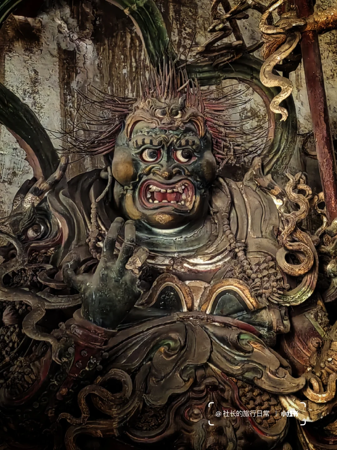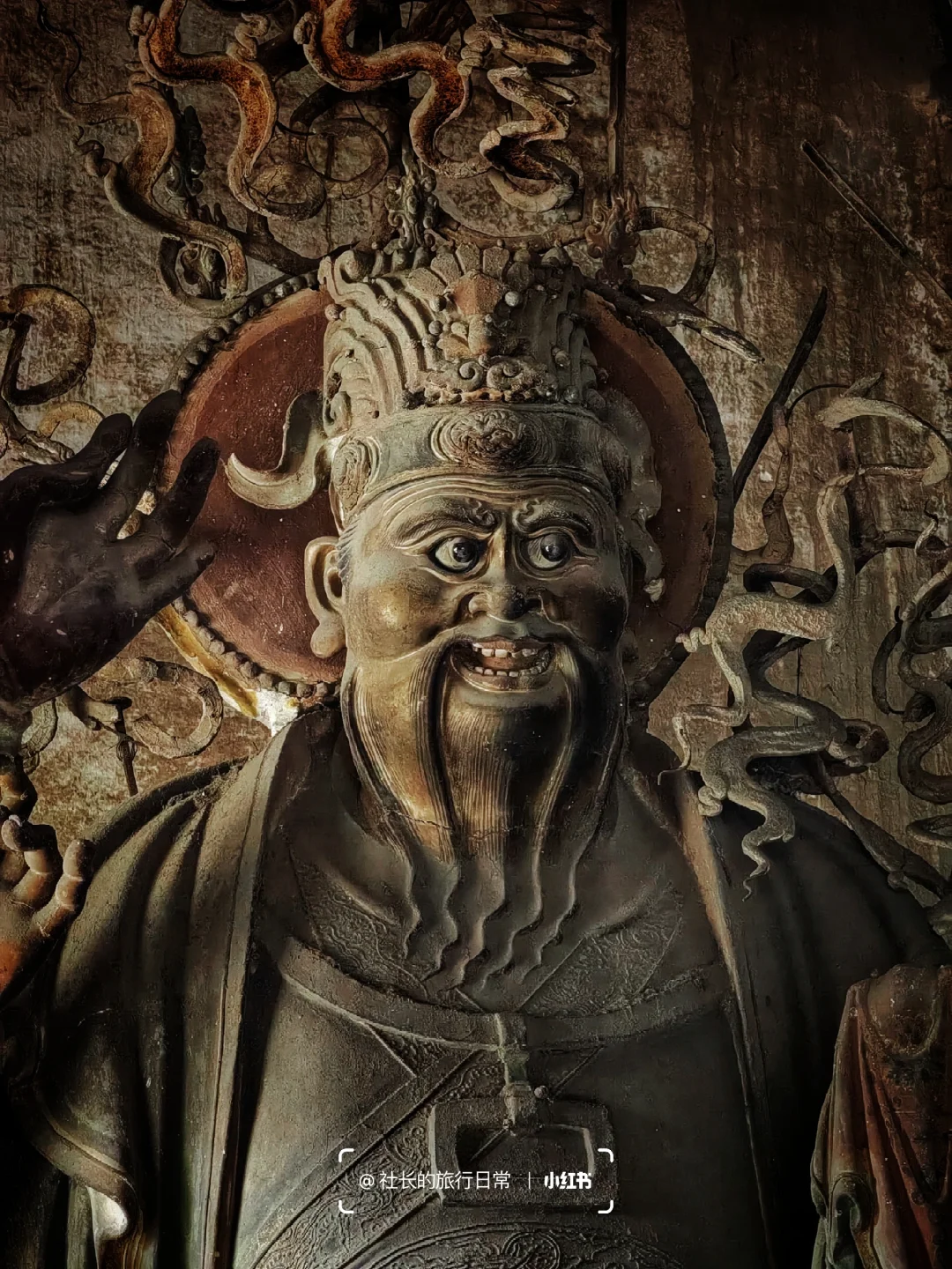 2⃣这组明代泥塑的胎内采用了大量铁丝辅助,让须发、服饰、飘带等造型更加夸张立体,每尊造像的服饰皆不相同且件件细腻精彩,纷繁之中还有秩序之美