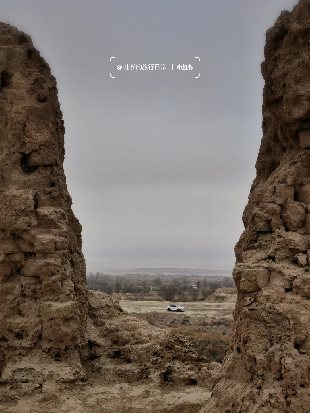 👉Ayaz Qala:最大最壮观,始建于2世纪贵霜帝国时期,实际是个城堡群,登上大城堡可以清晰远眺小城堡,山坡下就是一处露营地,据说旺季时露营过夜的人不少,我们隆冬淡季去时只有大风,没有人影