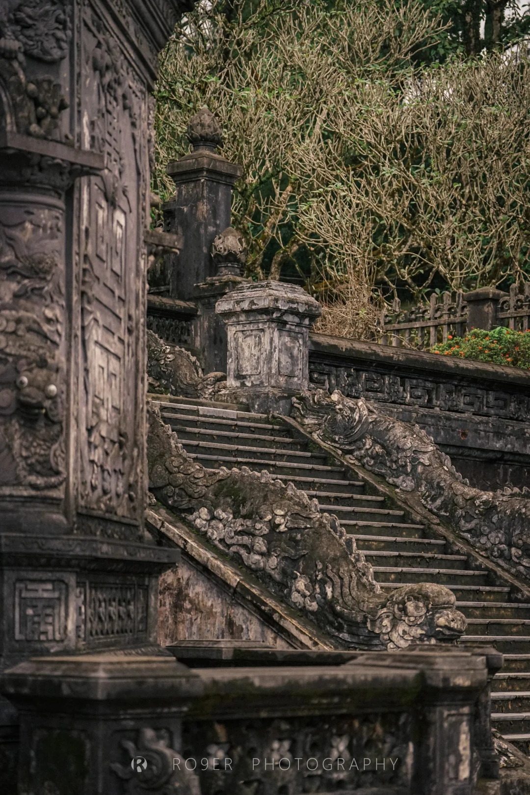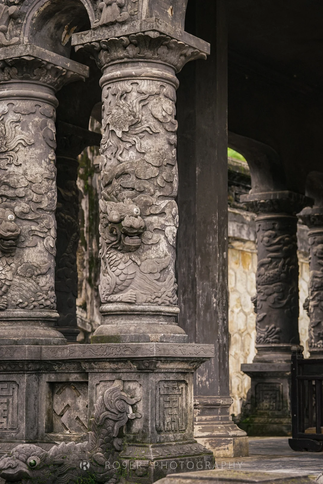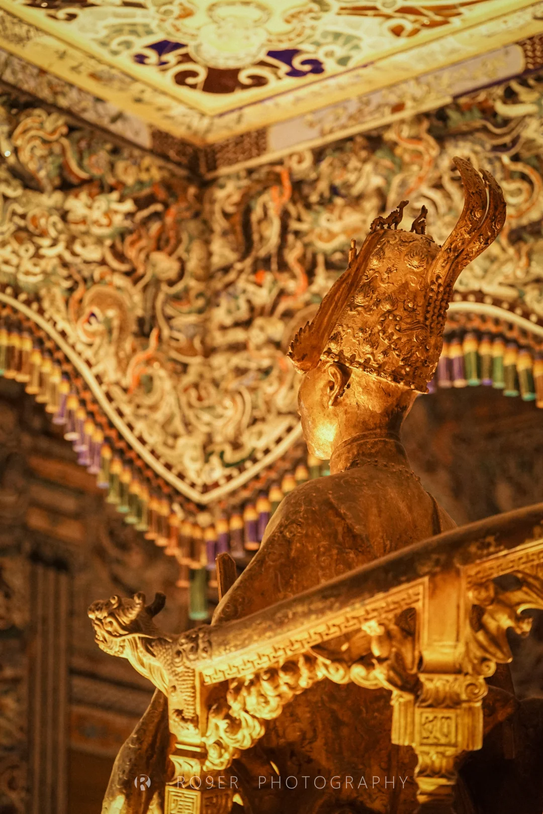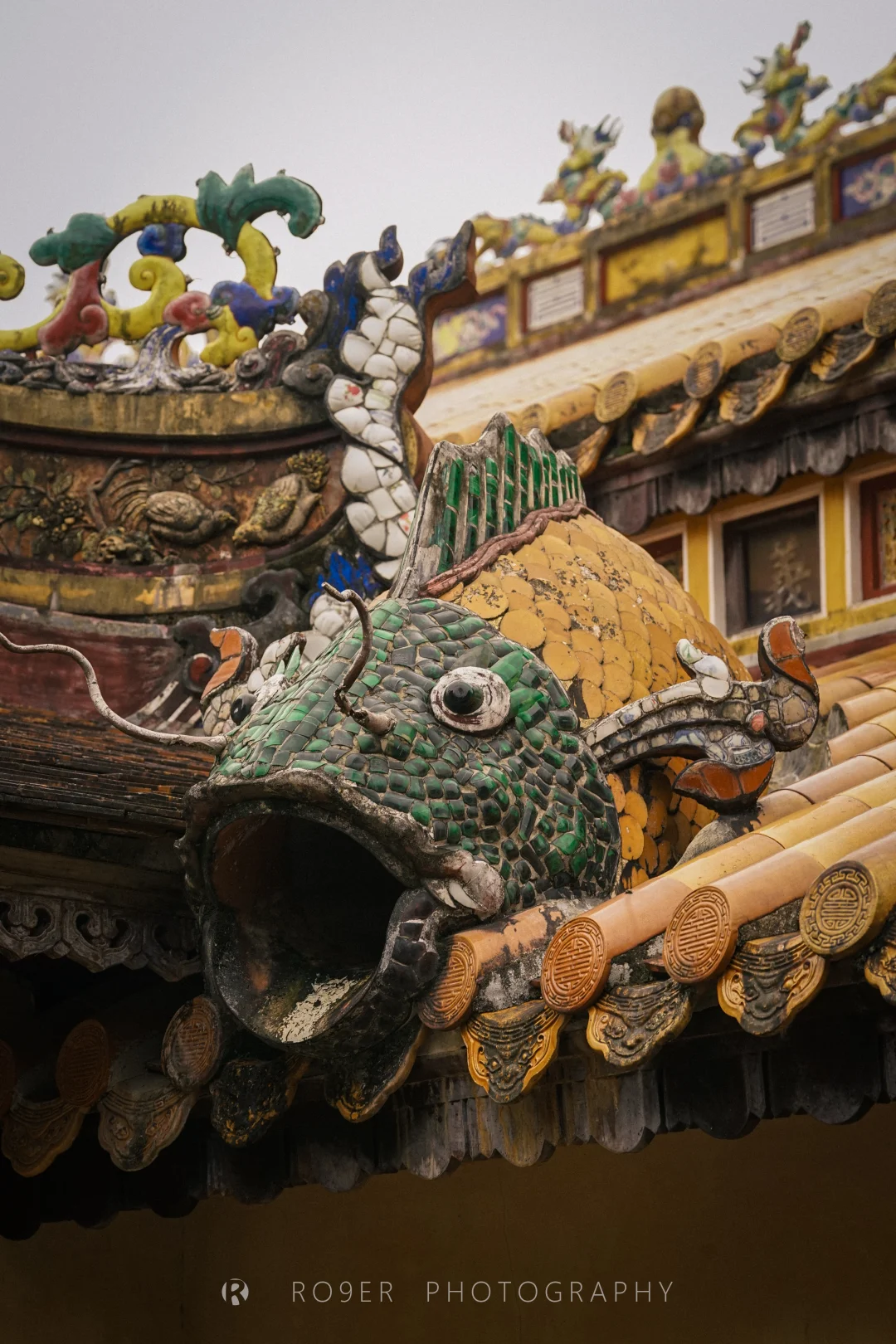 阮朝最后一座帝王陵墓,"哥特式"外观、印度教浮雕、越南传统工艺结合,既杂糅又特立独行,不过已明显可以看出西方影响,建筑也以水泥、瓷砖等现代材料构建。最核心的【紫禁殿】内部极致华丽,繁复的剪瓷装饰让人眼花缭乱,巨型的"龙云"壁画气吞山河,供奉的启定帝等身铜像造艺也很精湛,是诸多陵墓中视觉冲击最强的