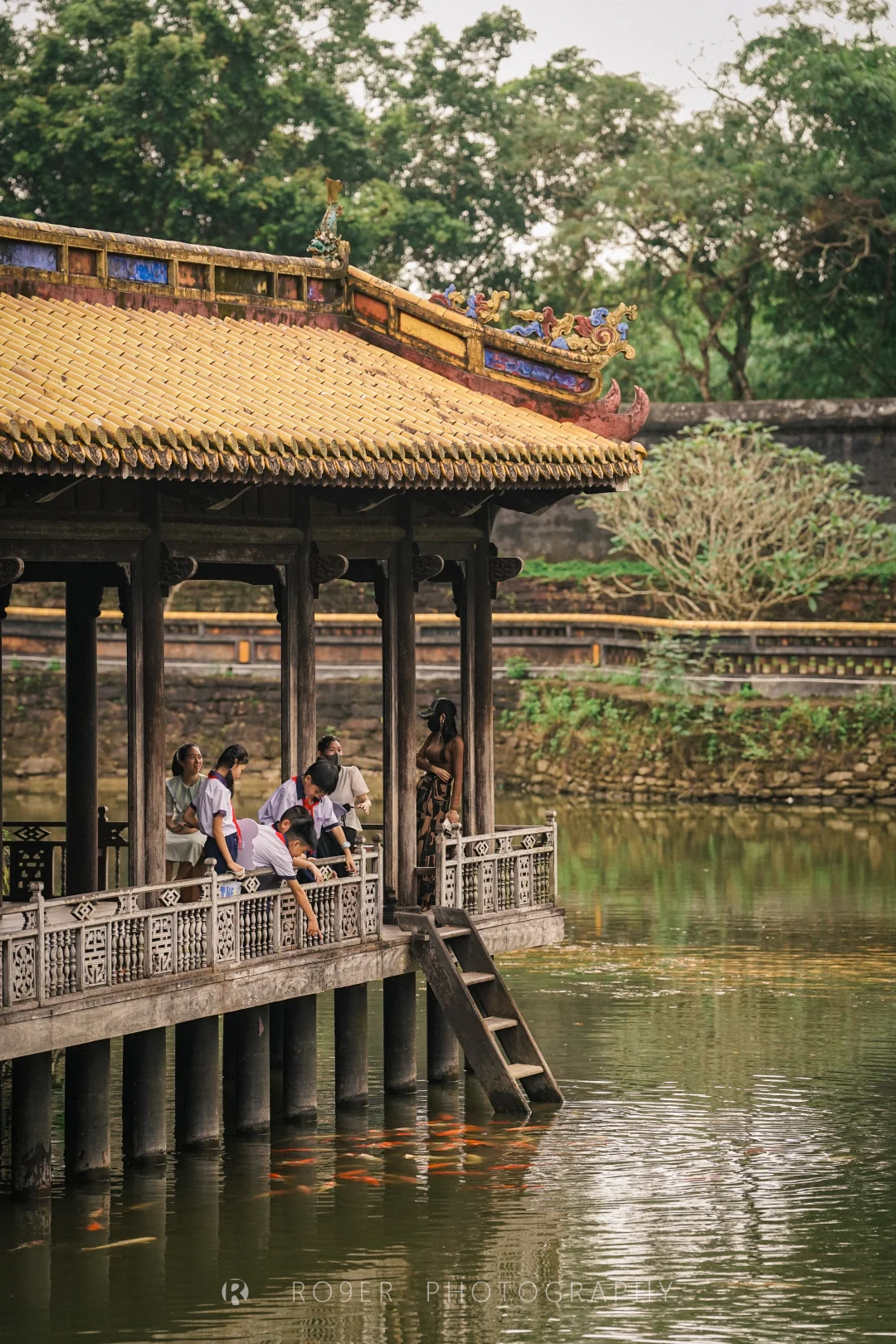 阮朝第四位皇帝之陵,当皇帝能力有限,但诗文才华横溢,颇有点像咱宋徽宗,因此他的陵墓也是园林般优雅宁静。钓鱼亭和刻有皇帝自述诗文的碑亭矗立在广阔的澄谦湖畔;【谦宫】建筑群是皇帝生前行宫;供奉皇帝和太后的【良谦殿】保留了许多精美木雕