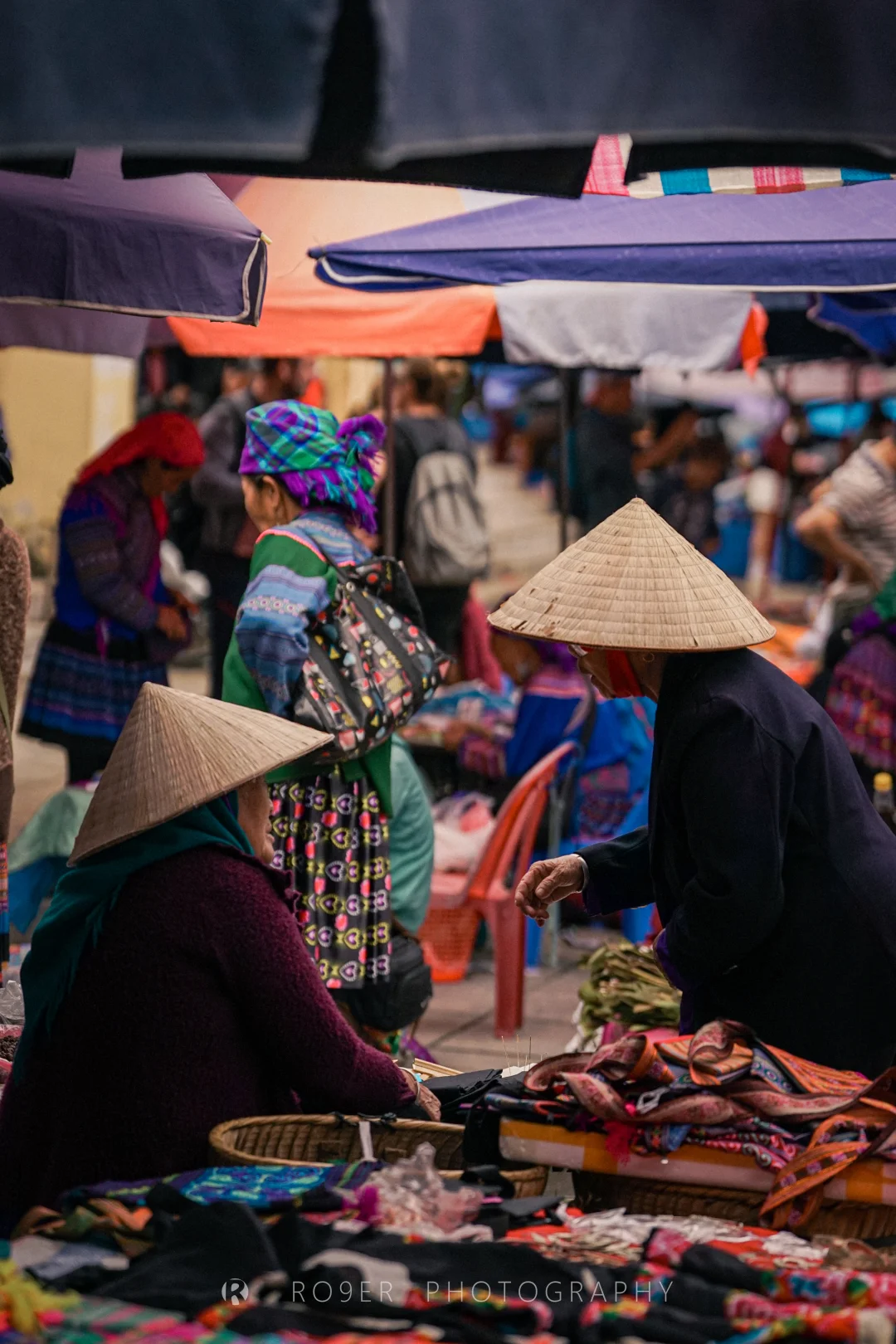 越南北部山区最大的【周日】集市【北河市场(Bac Ha Market )】形成于法国殖民时期,最初仅是当地少数民族以物易物的聚集地,后来才逐渐演变成定期的贸易集市,它承载了北部山区各民族贸易、社交、通婚、文化交流等使命,虽然这些年已融入旅游元素,但依然保留了原生态的、真实的民族状态。当你挤进人潮涌动的集市,就仿佛走入了一场盛大的少数民族服装秀:身着色彩斑斓刺绣百褶裙的花苗族、擅编竹器的岱依族、以靛蓝染布和银饰技艺文明的瑶族等等全部围绕在你身边。悉心寻找,亦能找到心仪且物美价廉的"纯手工制造"——即便走遍了云南大部分少数民族集市,当我来到北河时,依然会觉得这里新鲜、蓬勃、热烈。