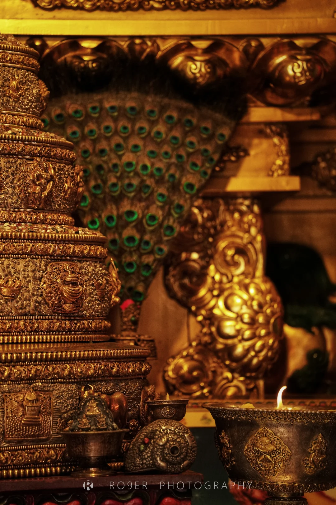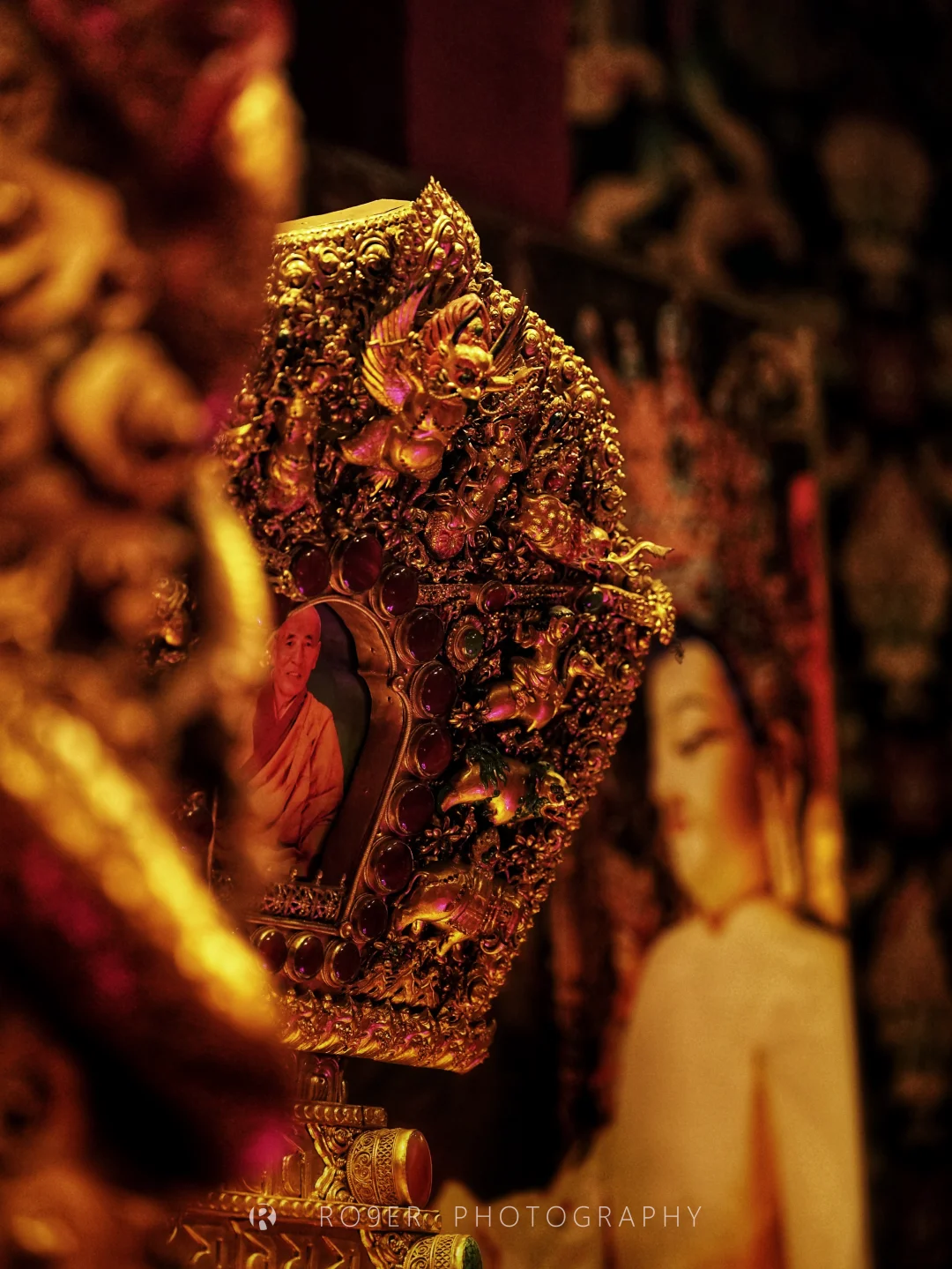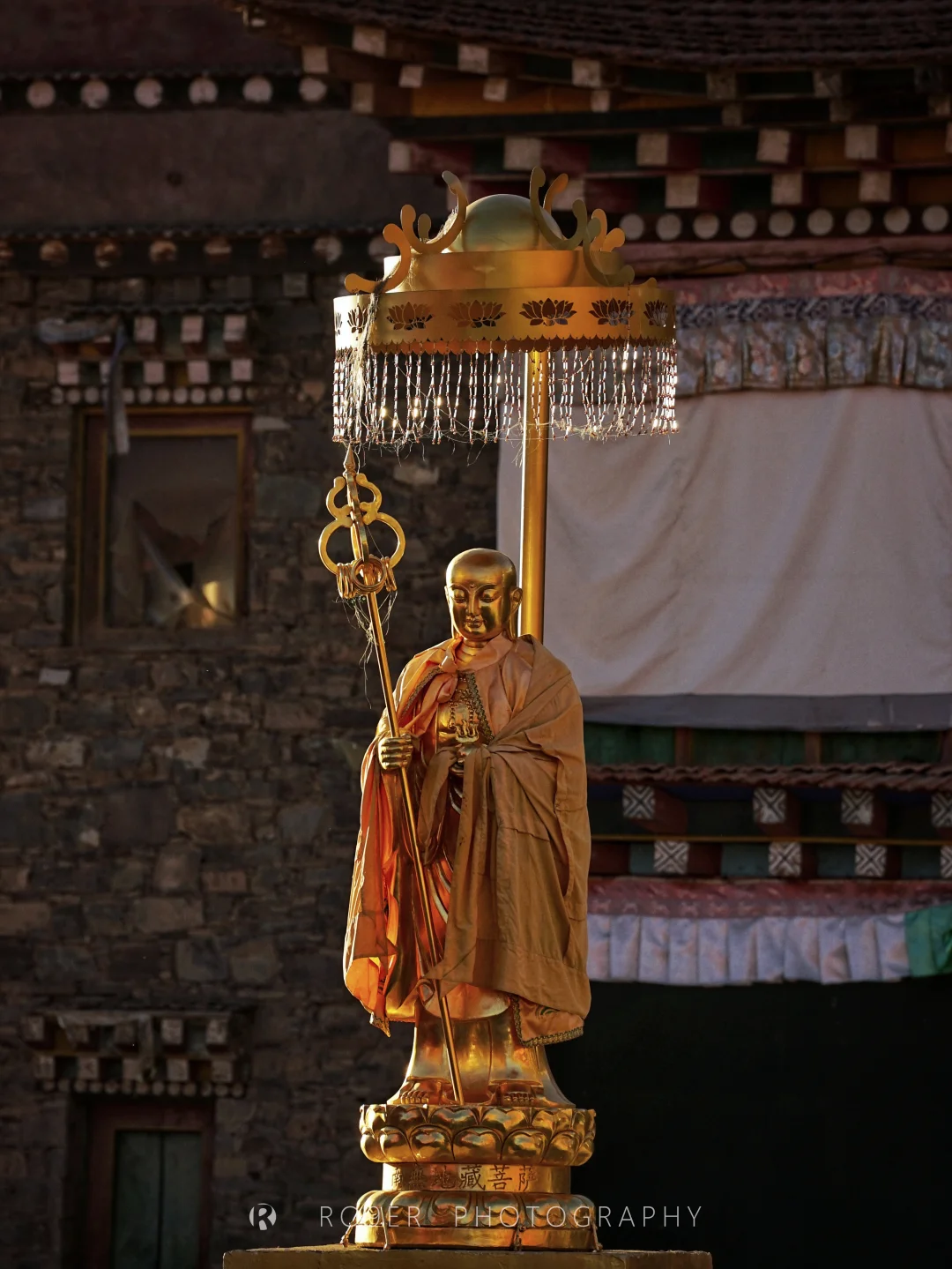 👉先往最高处的【泽布基寺大经堂】,始建于明景泰年间,略显破旧的建筑里藏着诸多宝藏:5世活佛脚印、从大火中飞出的觉囊祖师造像、曾开口说话的绿度母像、25尊印度风格的金像都很有故事