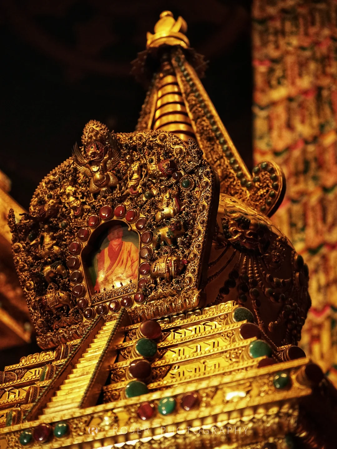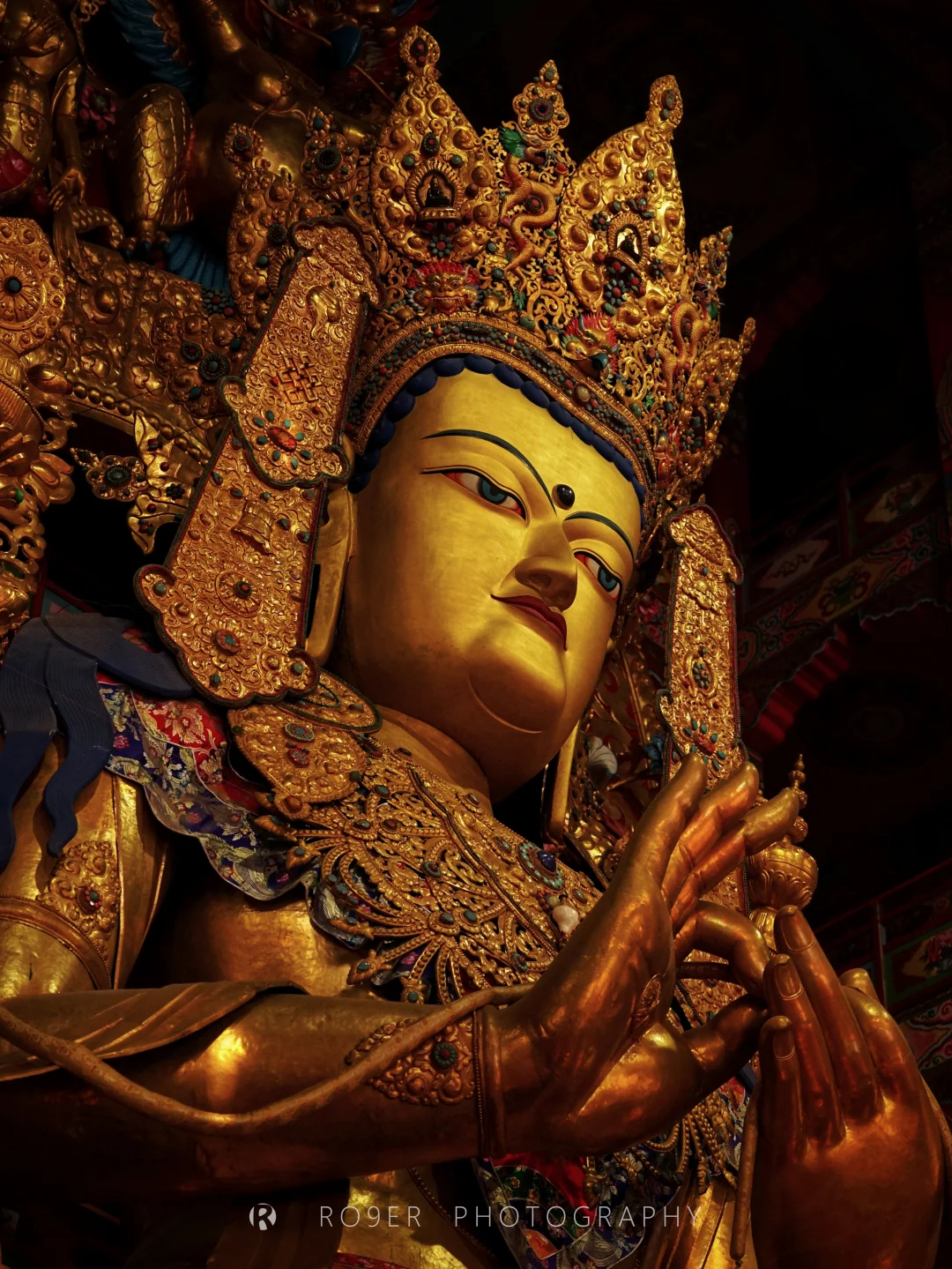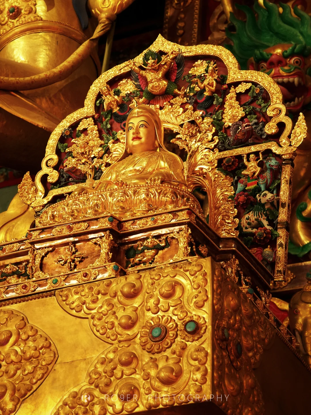 👉觉嚢主寺藏洼寺地位尊崇,最高的两座建筑【未来佛殿】和【肉身殿】是主要探访对象:前者供奉着极其壮观的金身弥勒大像,后者供有对觉囊派贡献极大的云登桑布法王肉身灵塔,塔基前的镇寺之宝金刚降魔杵据说有无上法力,此外诸多佛龛、经阁的做工水准也极高