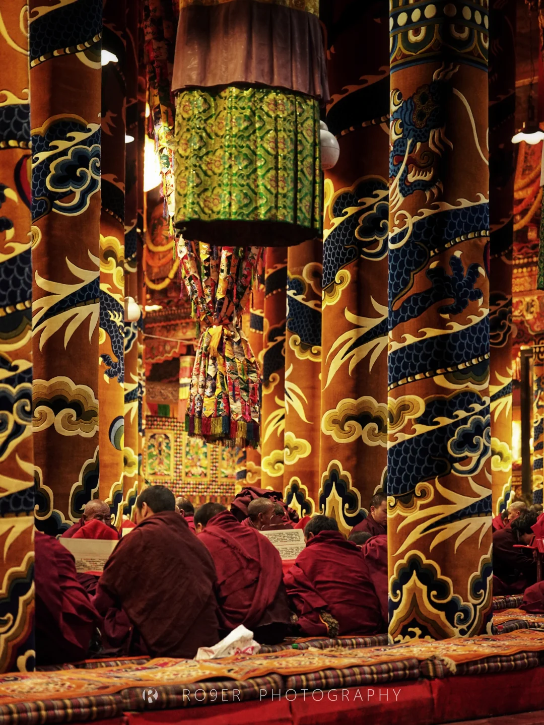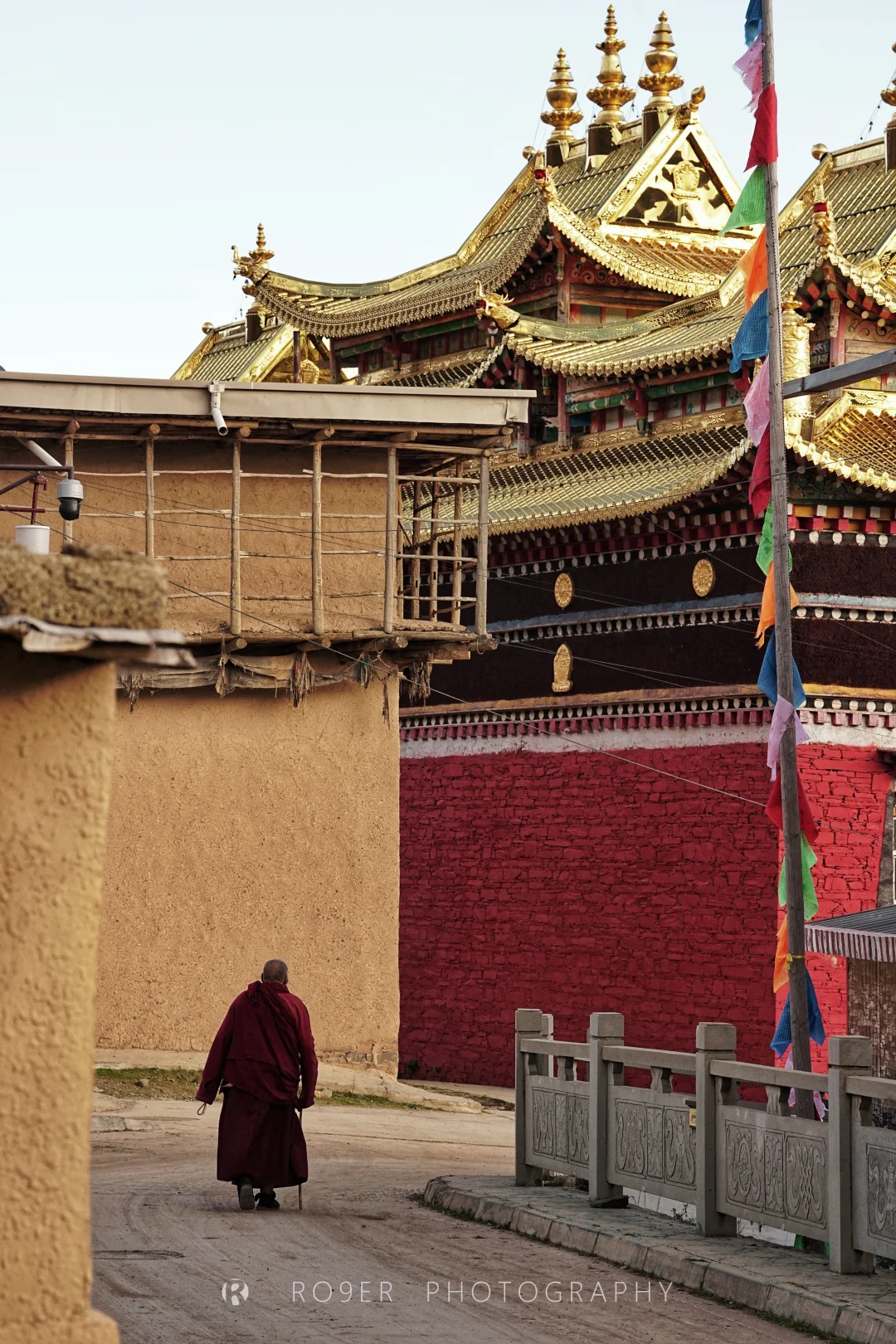 说是三寺,但因经年不断地建设如今已连成一片,构成了规模宏大的"觉囊世界",这是我们在川西以西这么多天以来见过的"最繁忙"的寺了:匆匆上课的、往来转经的,随处可见绛红色的身影穿梭疾走,各殿诵经声不绝于耳,似乎从未停过