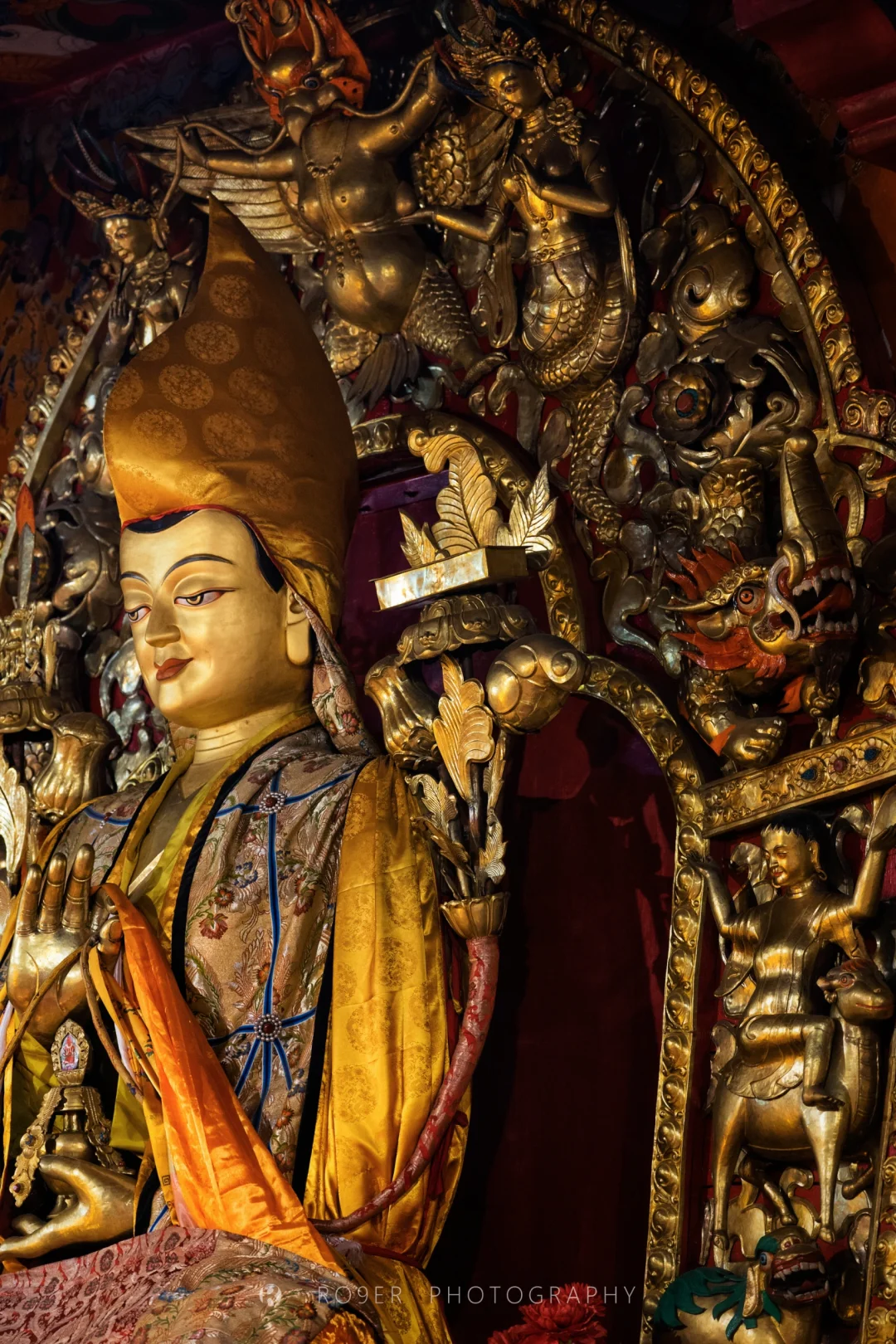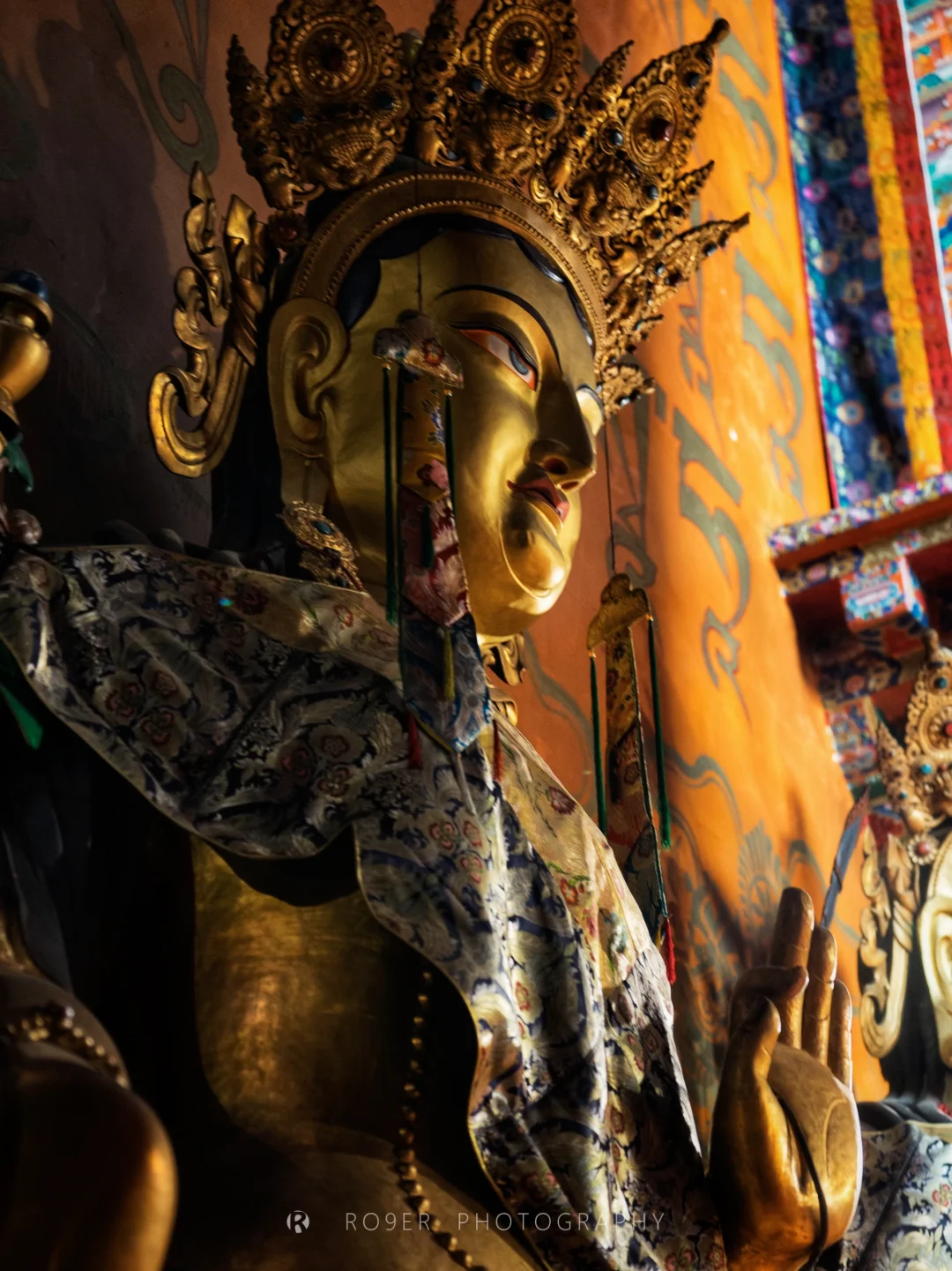 👉【释迦殿/宗喀巴殿/大经堂】构成寺院主体,前两殿高度近20米的主佛庄严弘大,让人敬畏,大经堂早间会有壮观的集体诵经。但我们更建议午后前来,三座主殿均用自然采光,下午3点左右光线最好,且后面山坡上的【法学/密宗院】有法课可旁听。注意找找【释迦牟尼殿】里三世和七世Dalai的足印,这可是寺院真正的宝藏