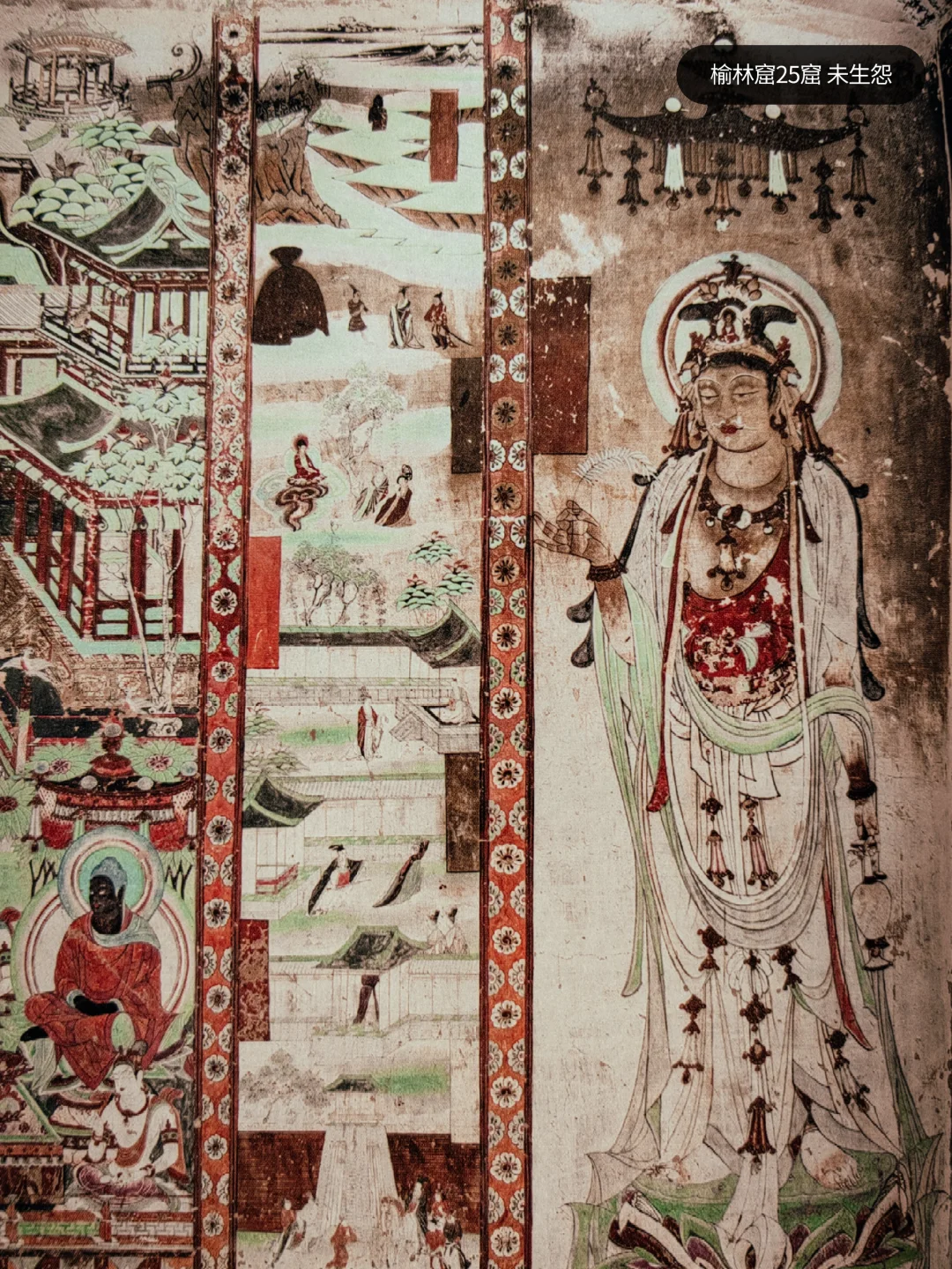 👉独一无二的艺术高峰:无论是如梦似幻的水月观音,还是叹为观止的文殊普贤,都是独属榆林窟的艺术瑰宝,就连莫高窟司空见惯的“观无量寿经变”,在社长心中也不抵榆林窟一个25窟的经变画来得精彩