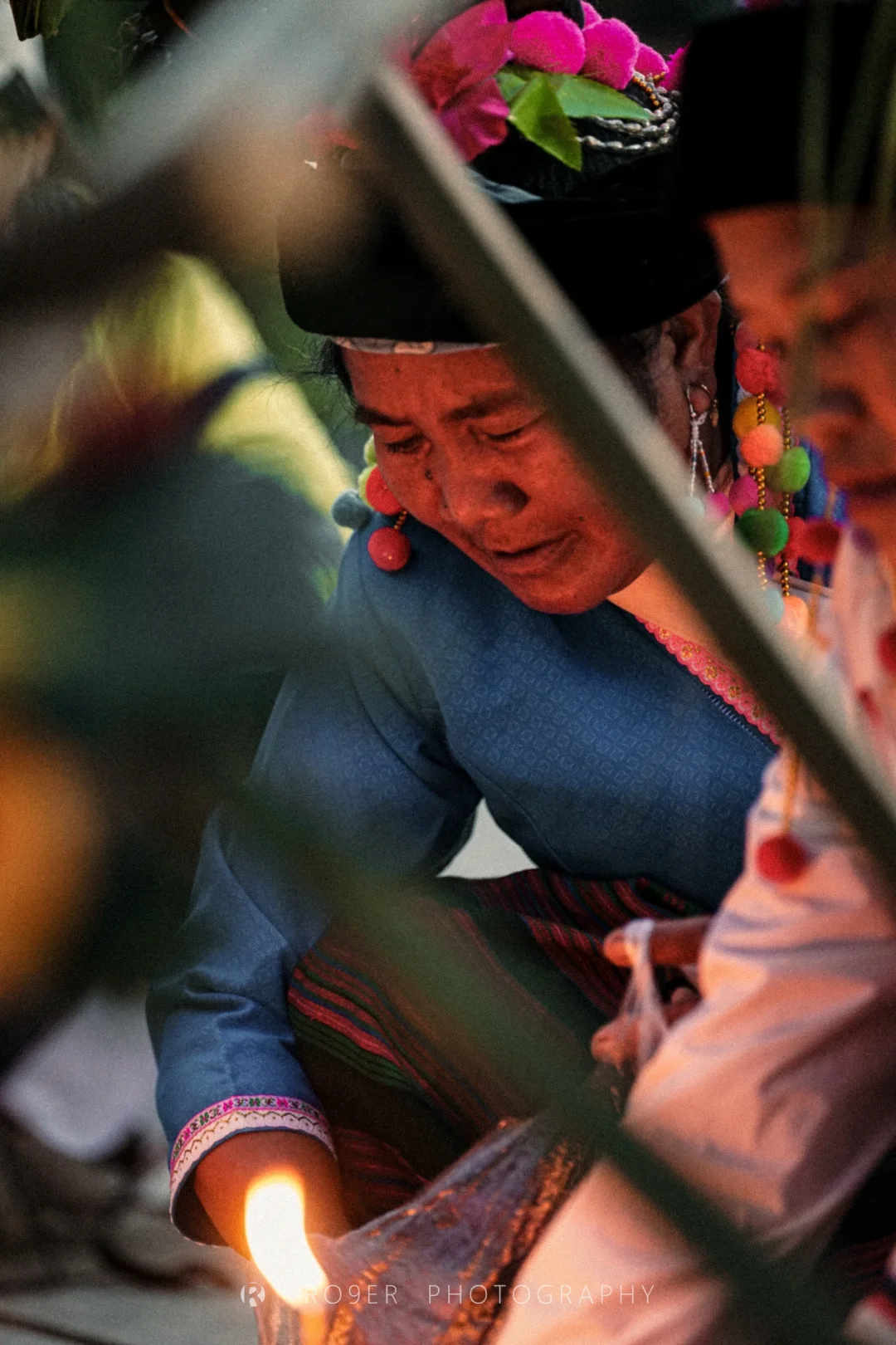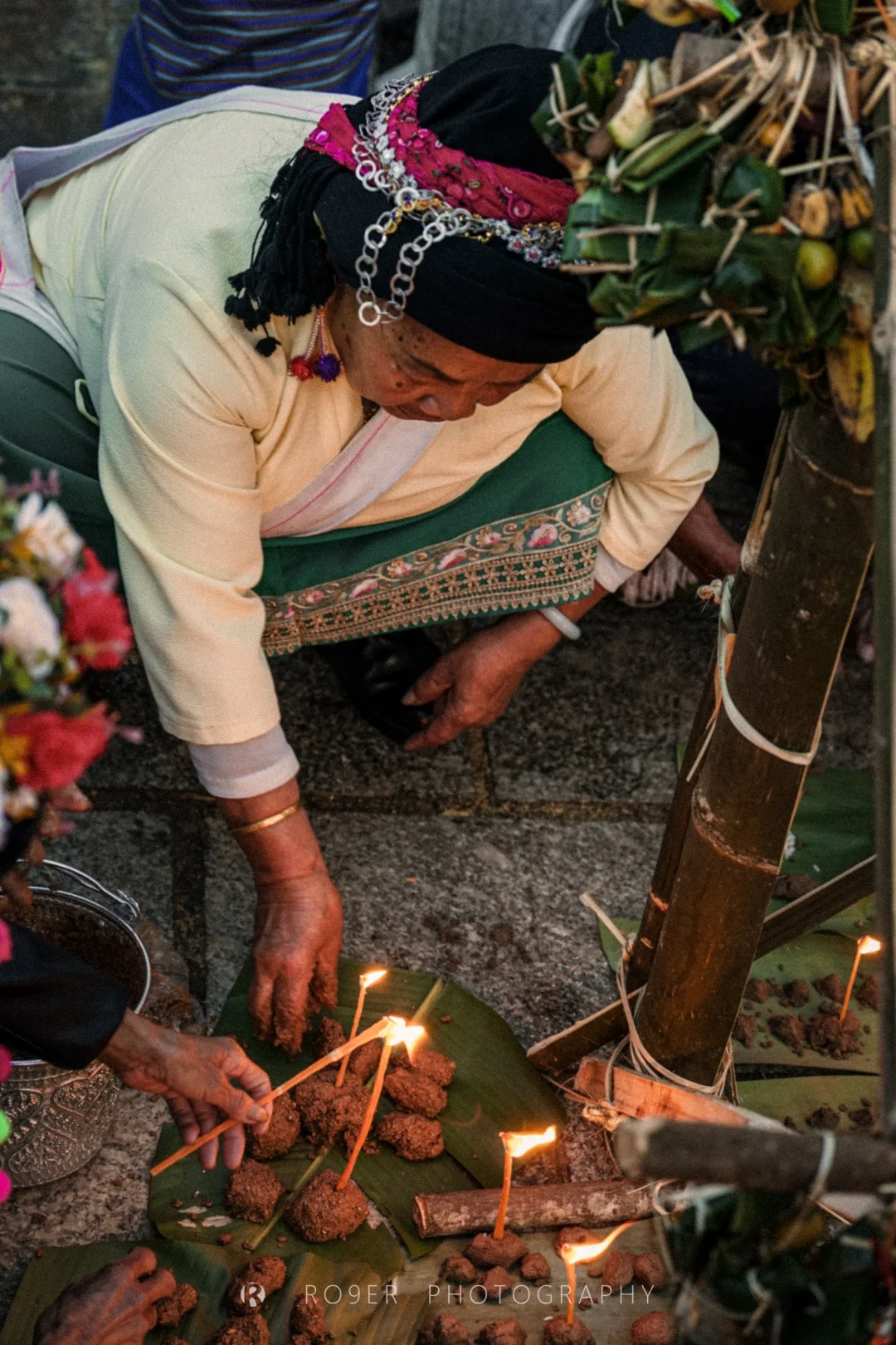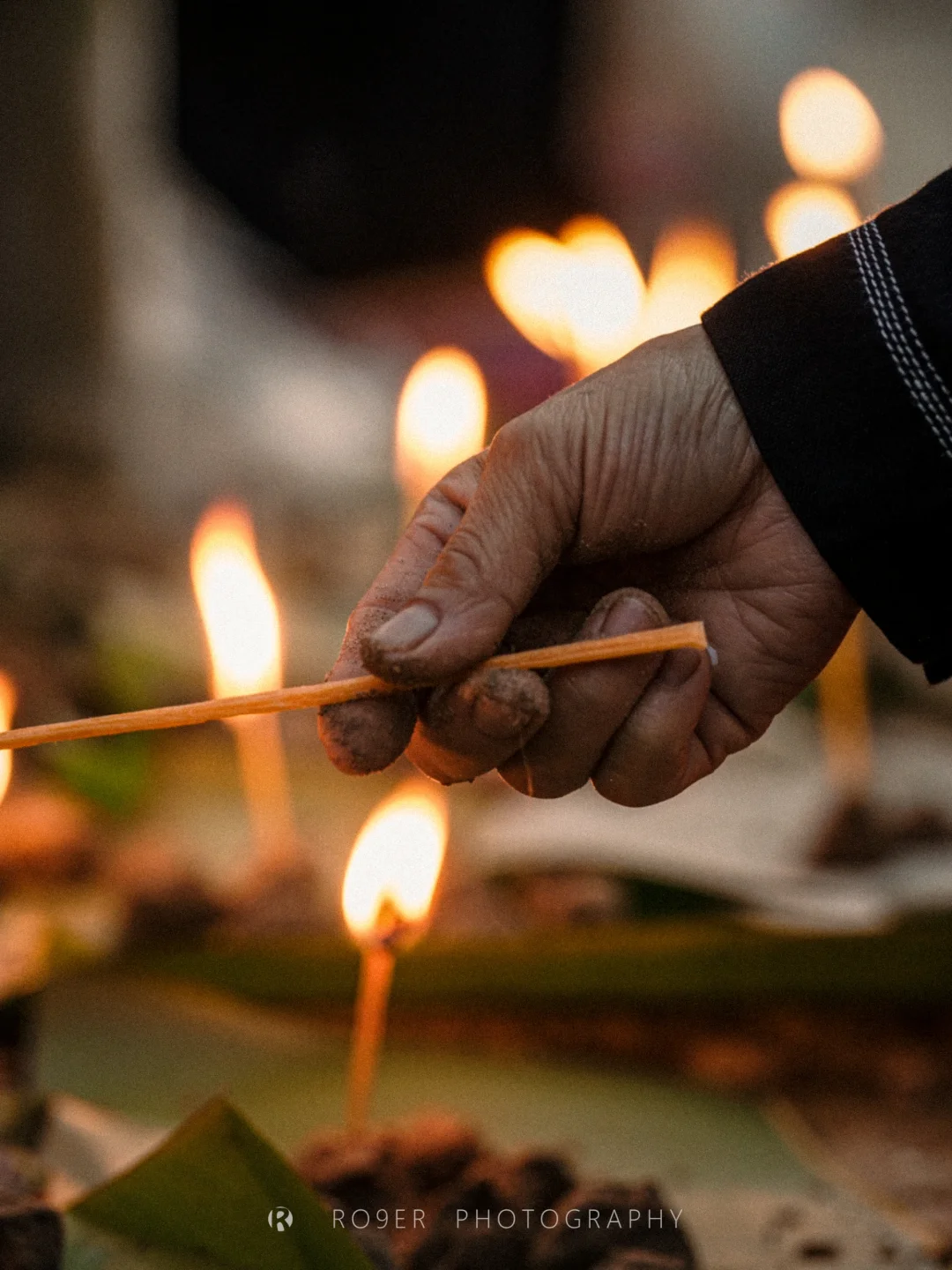 清晨,看村里的叶掇奶奶和阿妈们燃蜡堆沙
