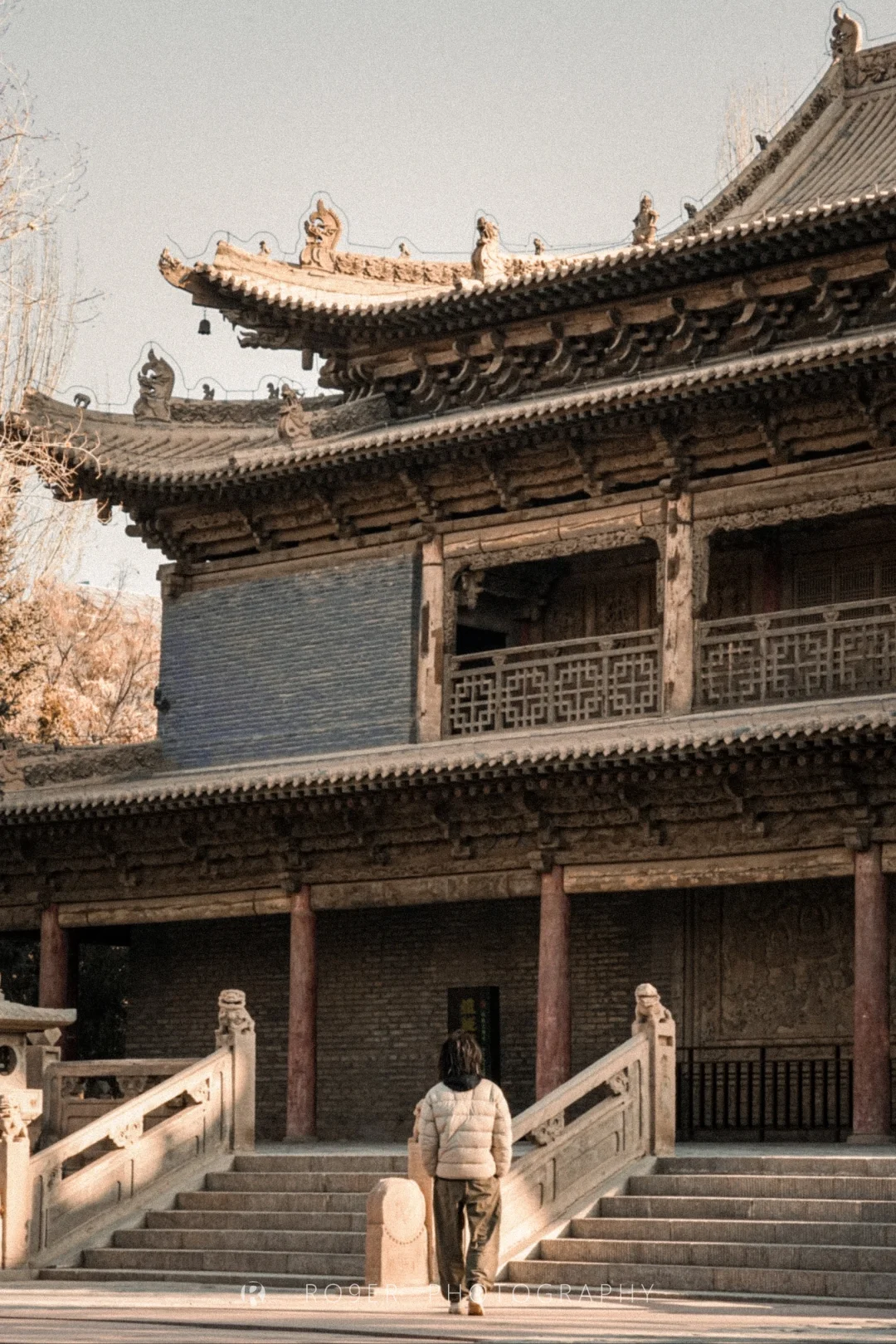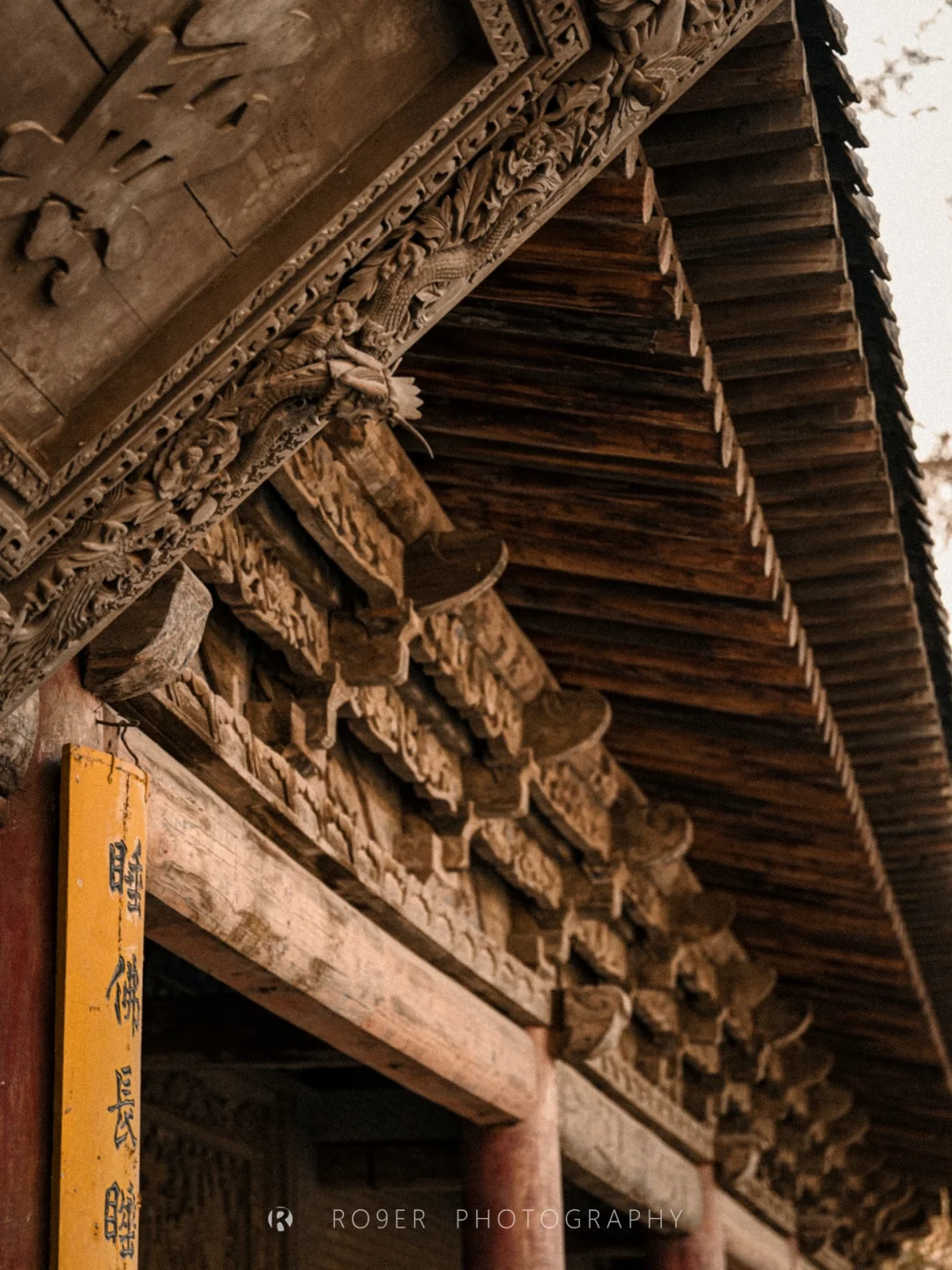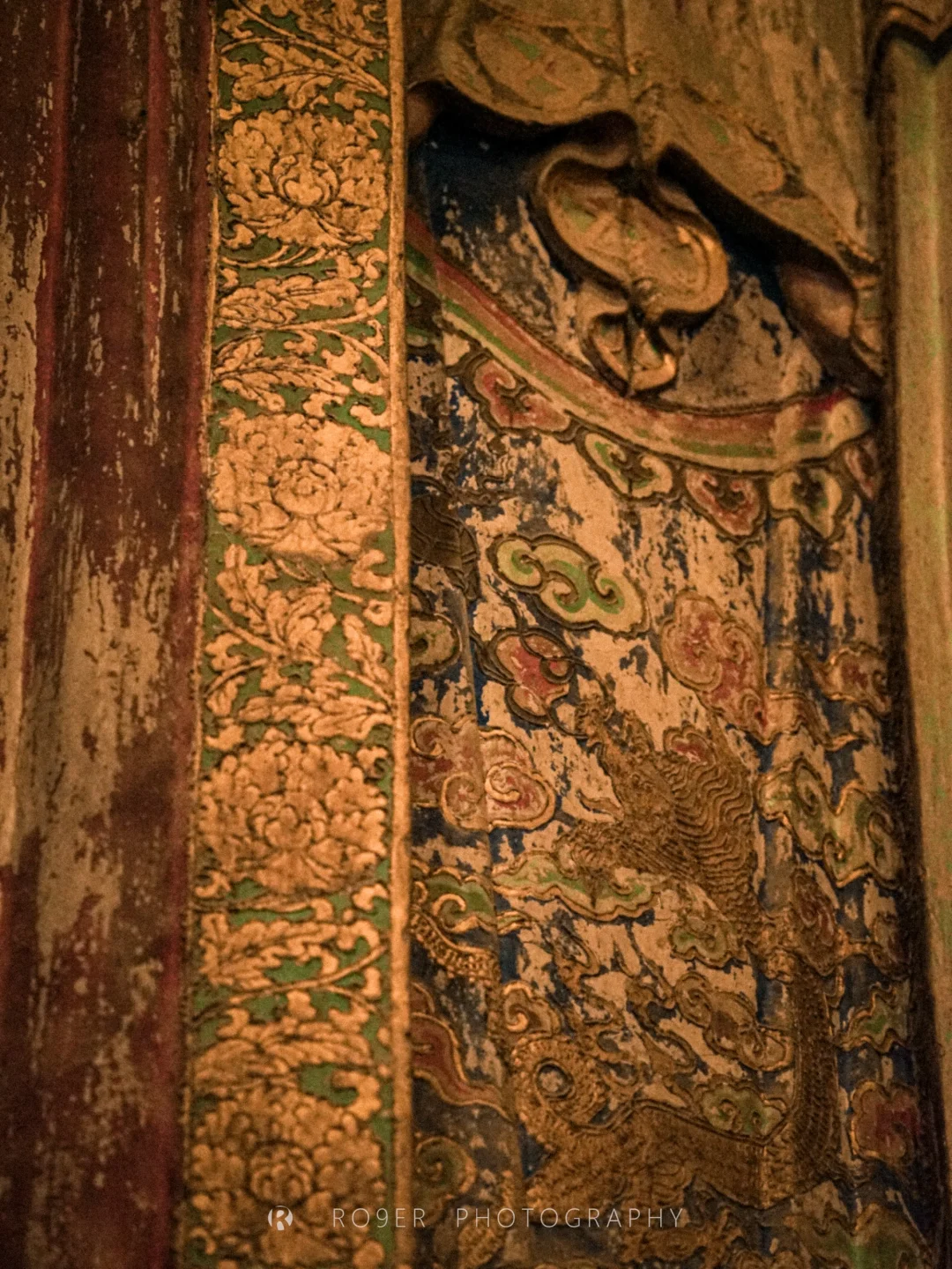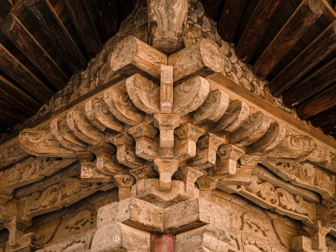👉看建筑:尽管大佛殿已是明清重修,但它依然是河西走廊古建的代表作:极其夸张的进深和面阔几乎突破了皇家规制;雕饰丰盛的"花牵板"取代了传统做法,这种"花板踩"斗拱以及龙首形翼角都极具河西特色,几乎每一步都是满眼的"百花缭乱"