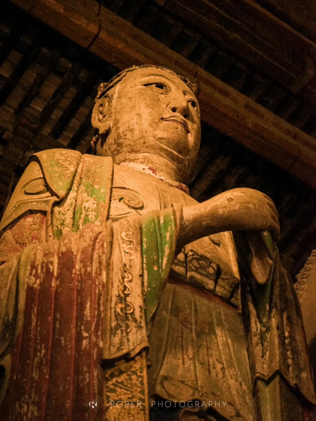 👉看造像:最大的室内木胎泥塑涅槃佛是这里的主角,不亲眼见不知其夸张到何种程度!木框为底、泥草敷面的创造性做法将建筑技术和造像艺术结合,不同视角看大佛双目竟分别有沉睡/微寐/深思的状态,二天/十大弟子/十八罗汉各自精彩,我们最喜欢的是位于佛首、好似女相的"大梵天"