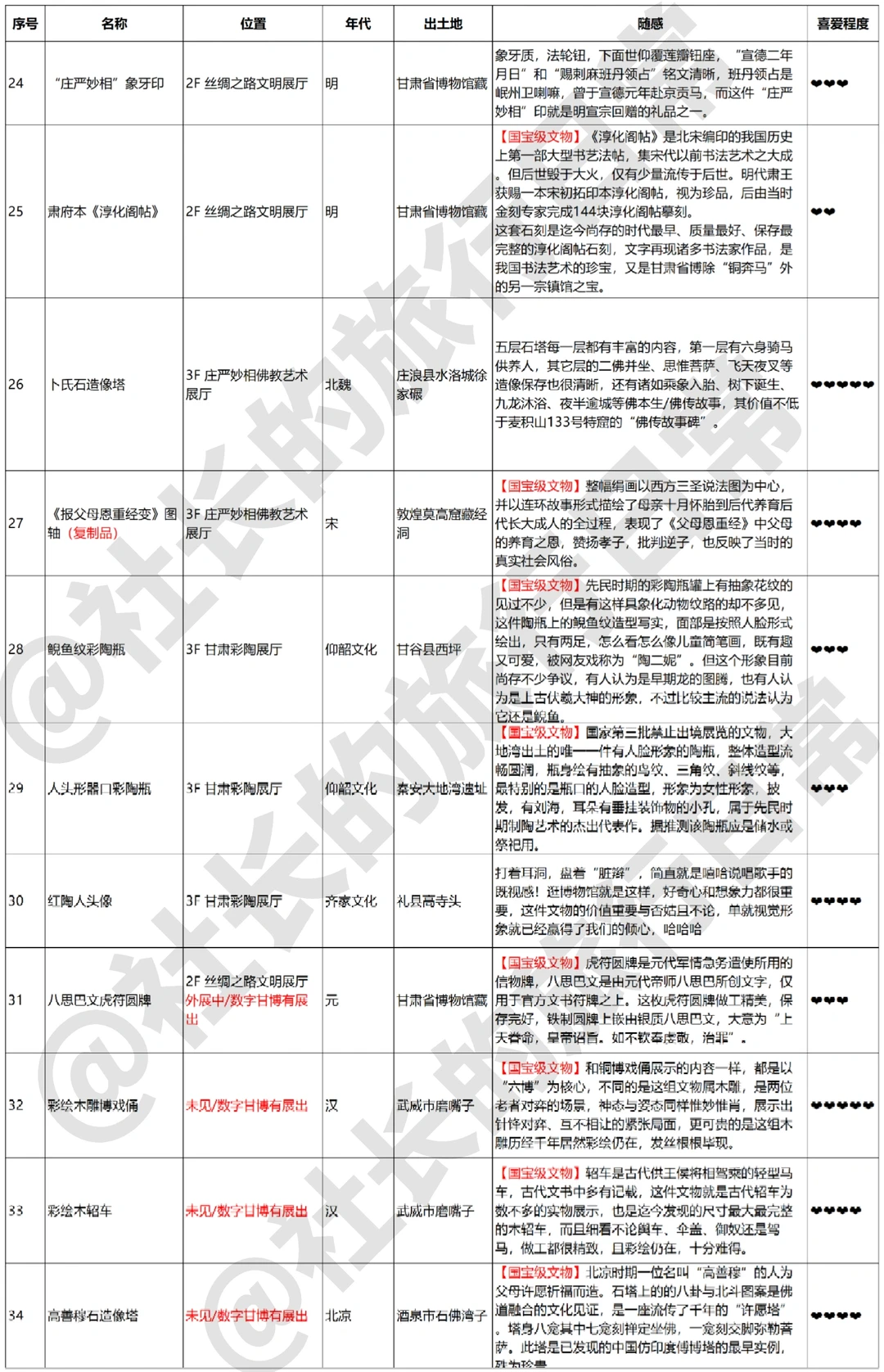 这座依托于河西走廊的、几乎站在东西方文明交融顶点的博物馆拥有极其丰富的馆藏文物,类型广泛且精品众多,社长看过这么多博物馆,单从馆藏文物的精彩程度来讲,甘肃省博也是名列前茅的,其中【丝绸之路文明】【庄严妙相:佛教艺术展】【甘肃彩陶】三个常设展厅不容错过(‼️34件精品文物随想详见图4️⃣-6️⃣)
