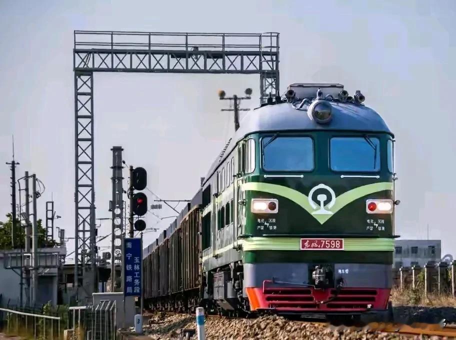 广茂铁路的终点,位于广东茂名市茂名西站东部,这里也是广铁与南宁局的分界点,因此在这可以看到两个铁路公司的分界牌。跨过这块牌就属于南宁局管辖的范围,因此茂名西站是由南宁局管辖的火车站。目前南宁局范围已经实现了电气化,因此可以看到在这块牌的后面的河茂铁路已经安装有接触网,由和谐电系列电力机车牵引。而广茂铁路依然保持了90年代的原貌,所以牵引机车也还是老式的东风系列内燃机车,不过目前也在逐步更新新型的内燃机车。广茂铁路旁是茂名的火电厂,在几个大冷却塔做背景下的内燃机车的场景,看着也是挺壮观的。
