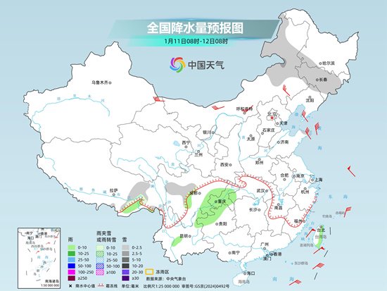 后天,东北地区此轮降雪将基本结束。预计,内蒙古东部、东北地区中部、西藏东部、川西高原北部等地部分地区有小到中雪或雨夹雪;四川盆地西部和东部、湖北西南部、贵州北部、云南东北部、西藏东南部等地部分地区有小雨。