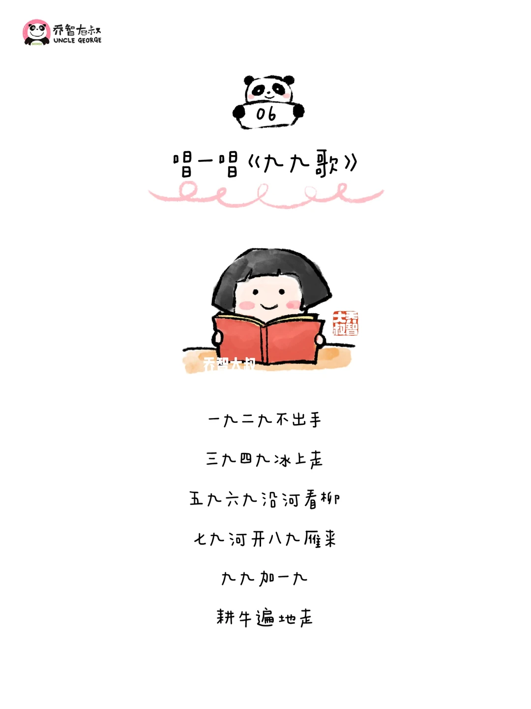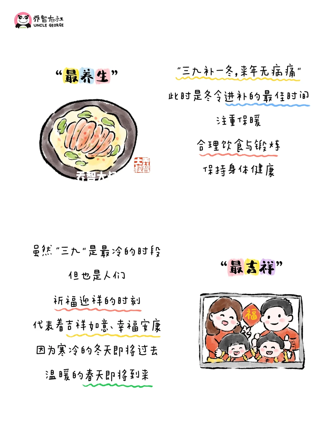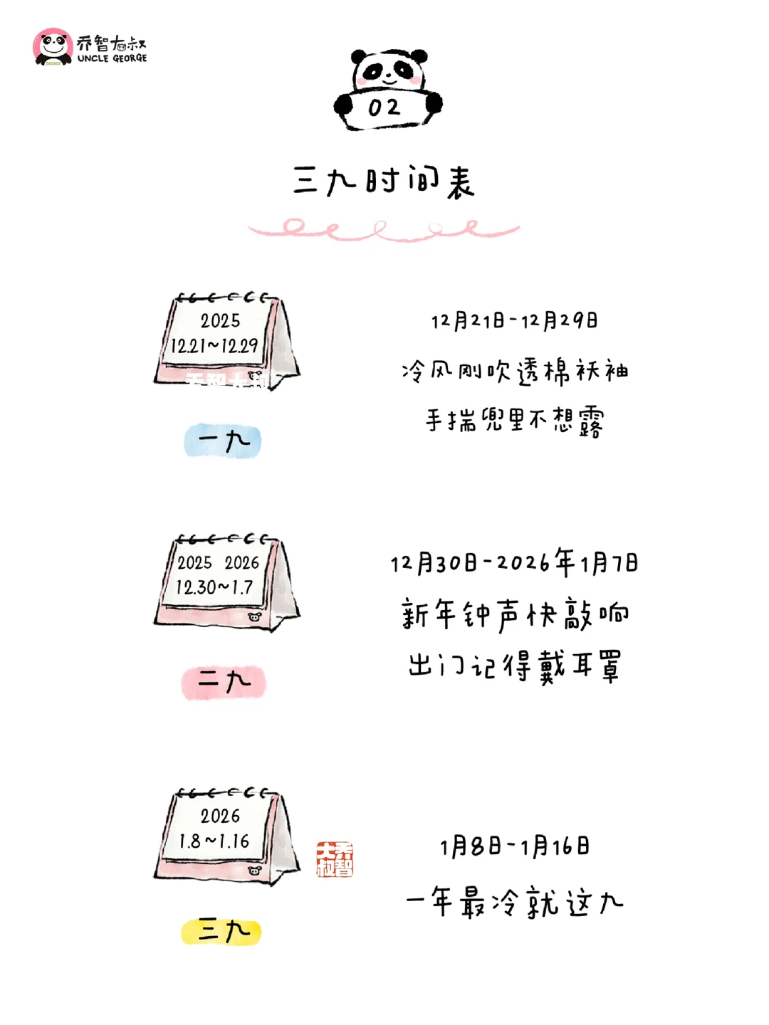一年中最冷的日子 “三九”真的来啦 🤫 天虽寒,心要暖 ✨ 乔智大叔为你备好了 【三九暖心清单】 泡暖暖的脚♨️ 喝暖暖的汤🥣 最冷的日子里 要给宝贝最暖的陪伴 让我们一起唱着 《九九歌》 数着日子等春天!🌱