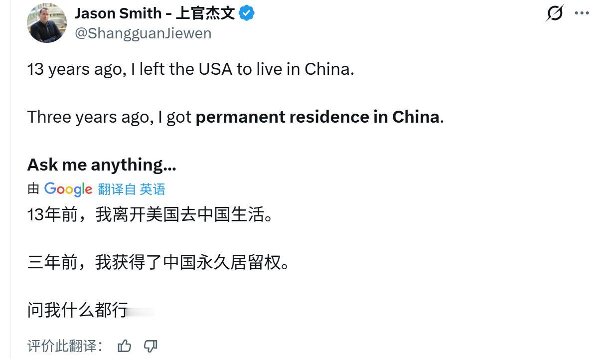 成功上岸! 恭喜这位美国记者, 获得中国永久居留权。