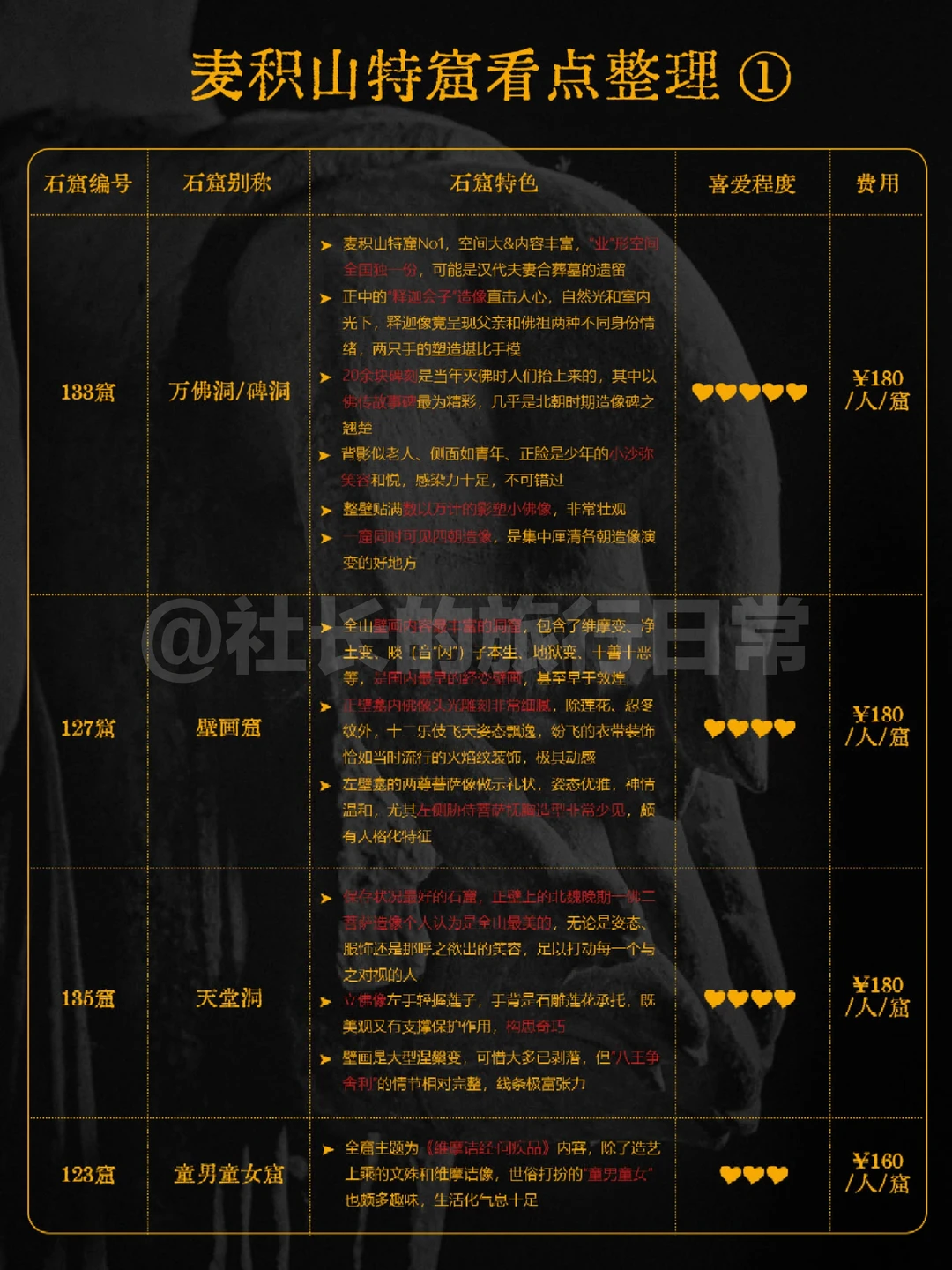 以下是麦积山已开放15个特窟的不完全总结‼️全部总结详见图2️⃣-3️⃣‼️并好事地为它们做了个"喜爱度排名",如与你意见相左,以你为准🙃