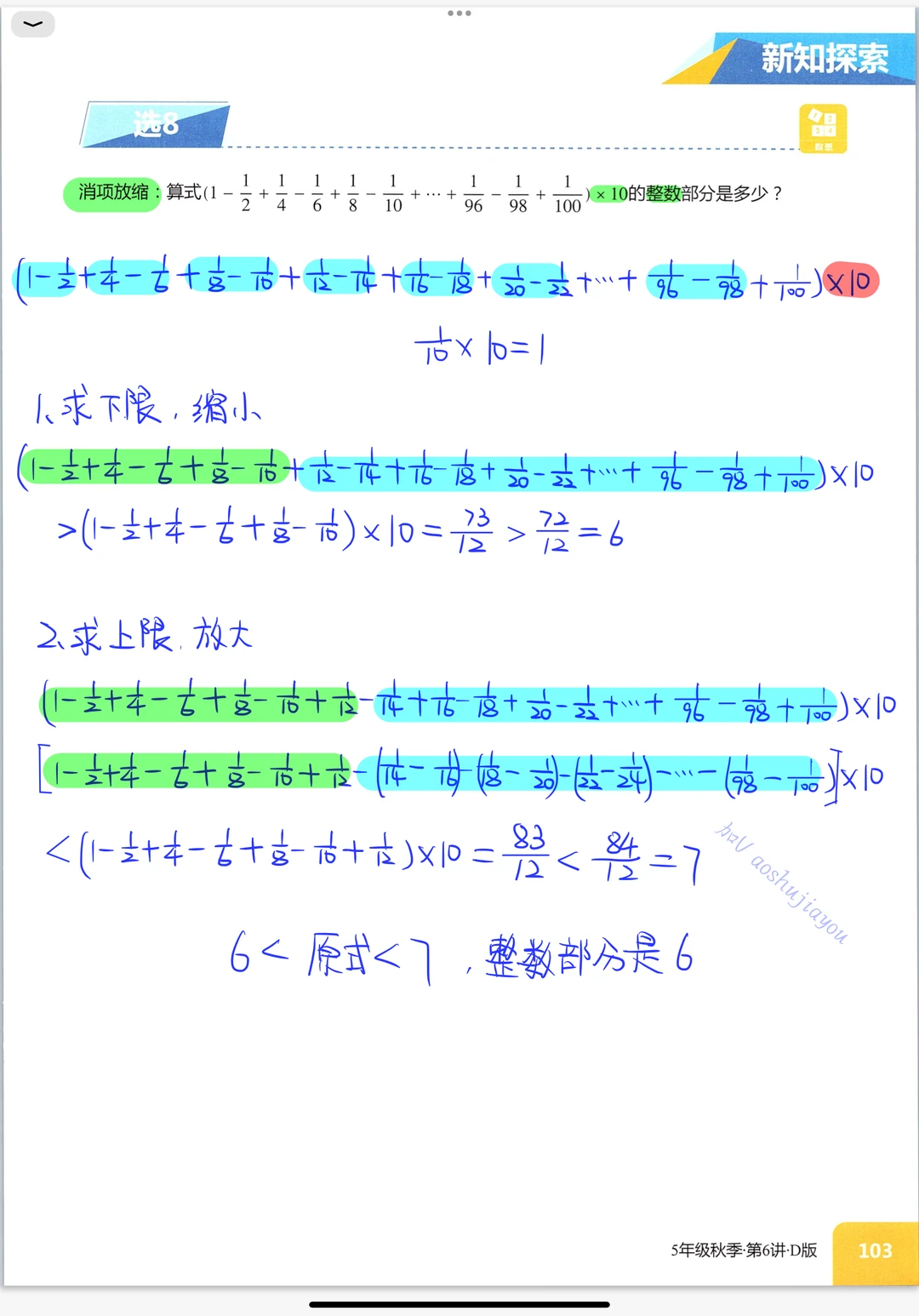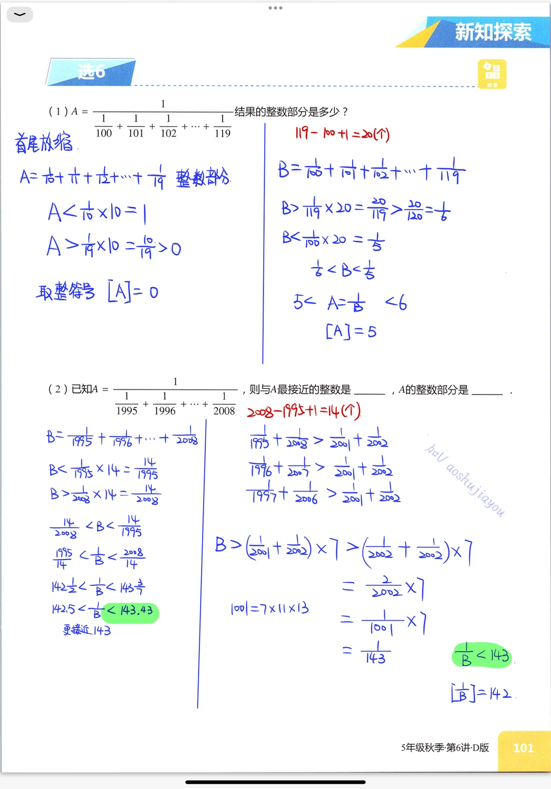 《比较与估算》五年级创新班奥数课堂笔记