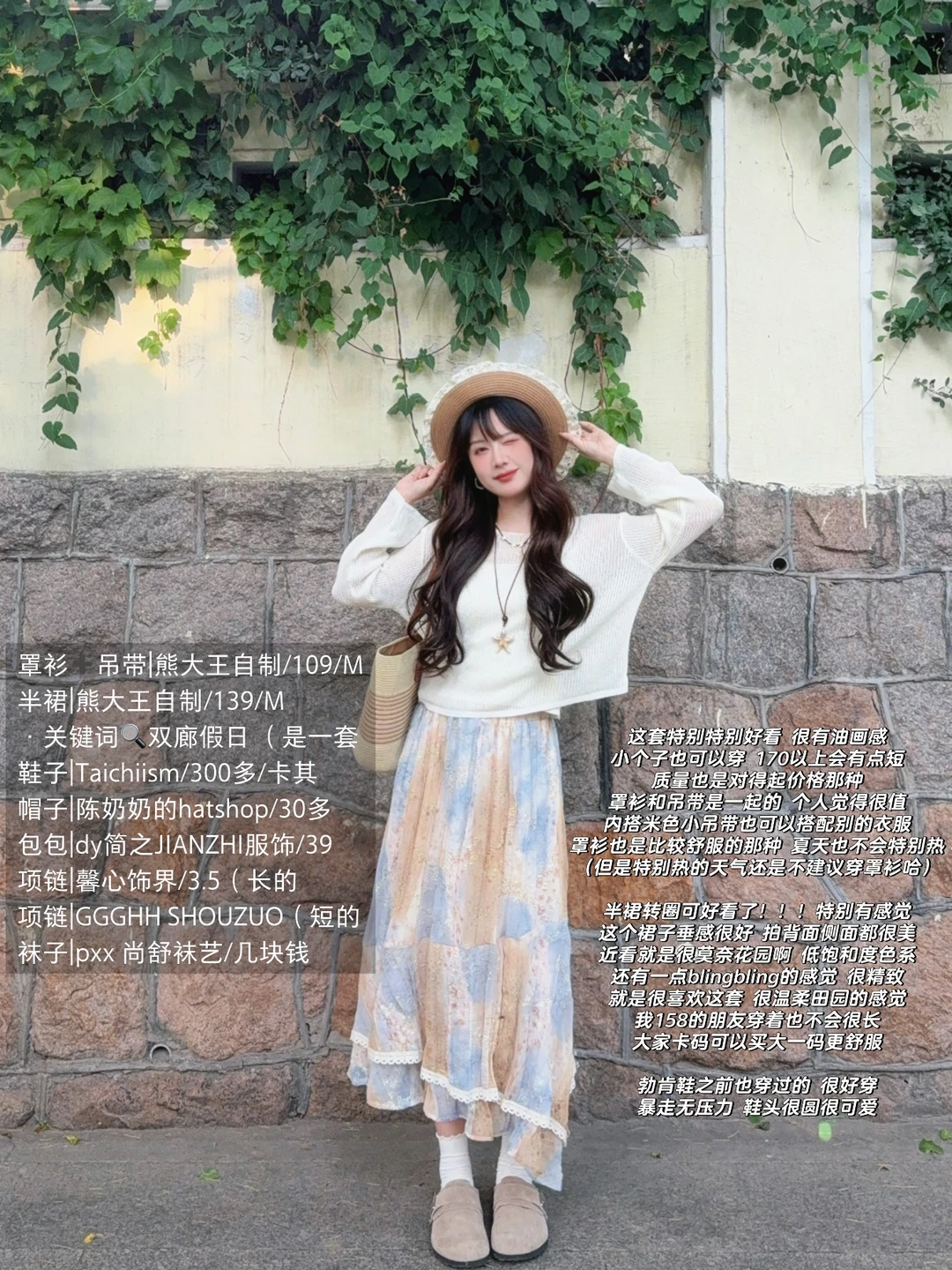 168/107左右 这套特别适合海边新疆云南大理之类的地方!! 哈哈哈很适合洱海边拍照 不敢想象有多美~ 穿着这套去鲁迅公园和琴屿路随便一拍就蛮出片 而且虽然是一套 分开搭配也很出彩 罩衫➕吊带也可以搭配其他碎花油画感半裙 长短皆可 搭配裤子也可以选择粉色蓝色卡其色的拖地裤 半裙也可以搭配棉麻亚麻衬衫或者其他波西米亚风的罩衫 大家也可以在腰间搭配一条腰链哈 更有风格 反正个人觉得还是舒适感和美貌并存的一套衣服上 很温柔盐系 特别有那种写生艺术生的感觉 自带淡淡的艺术气息(🫰🏻
