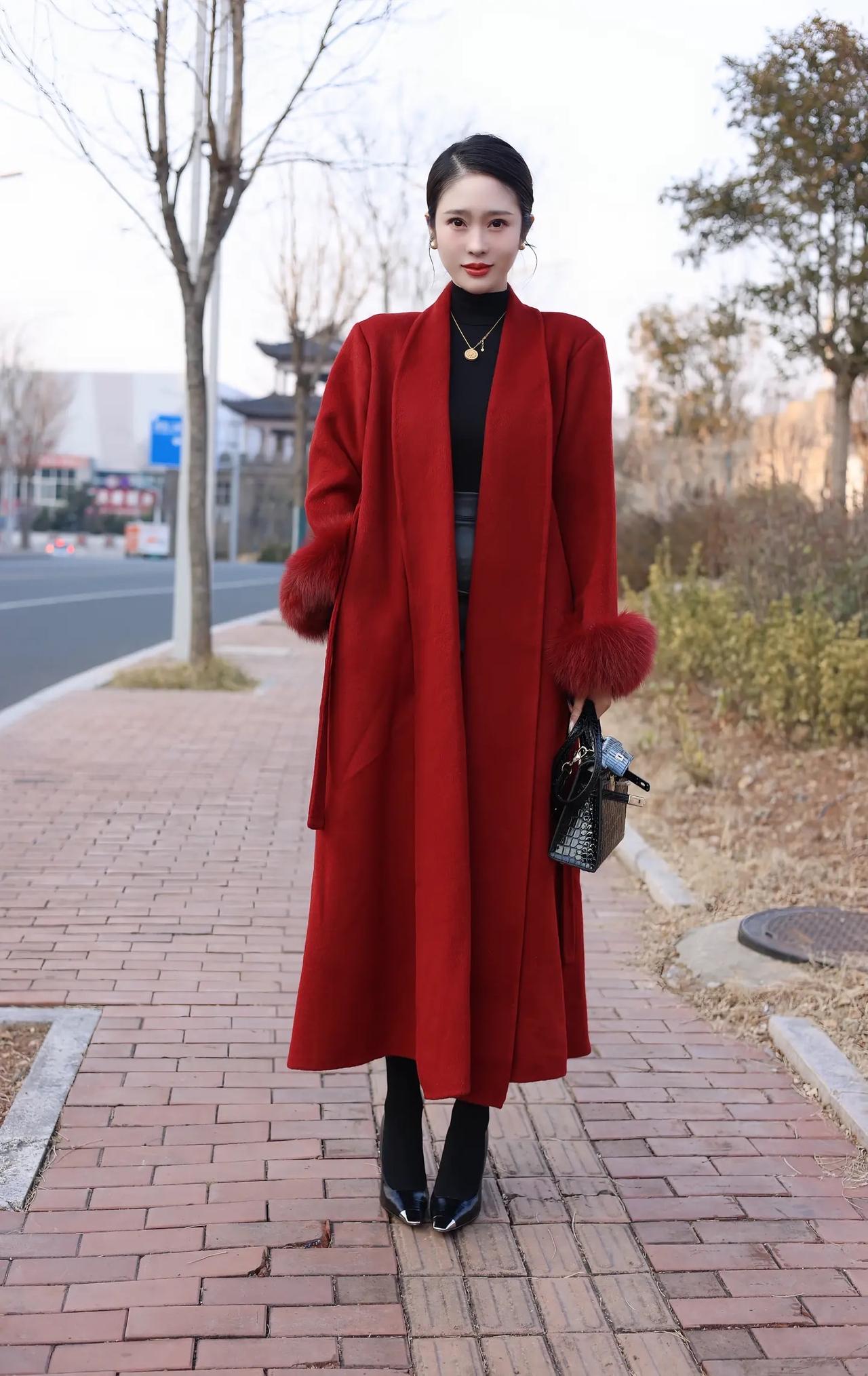 冬日穿搭指南:红色大衣搭配黑色高跟鞋,优雅又时尚!