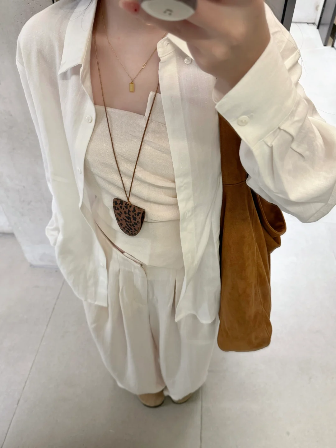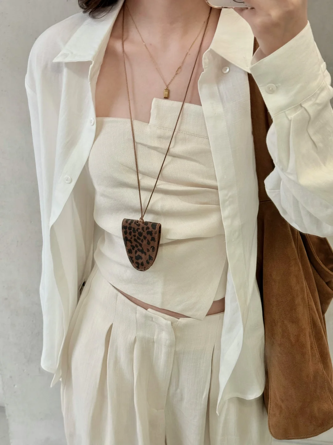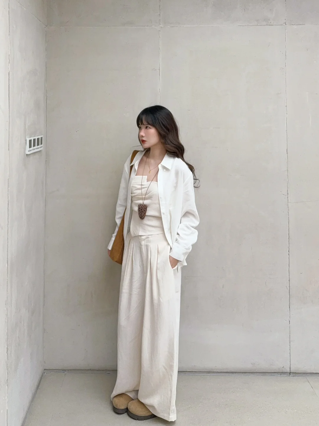 168/106左右 本色亚麻三件套 打工人狂喜的搭配哈哈 很通勤日常的搭配 焊在身上的程度 特别舒服!!!抹胸相对来说没那么日常 可以换成亚麻吊带或者米色背心 很简约舒适又自带松弛感的一套 不用怎么打扮就很好看 裤子衬衫都可以搭配别的衣服哈 衬衫也可以参考我之前棉麻衬衫的搭配 搭配各种颜色的连衣裙或者吊带牛仔裤 裤子也可以搭配一字肩或者其他亚麻类棉麻类的罩衫