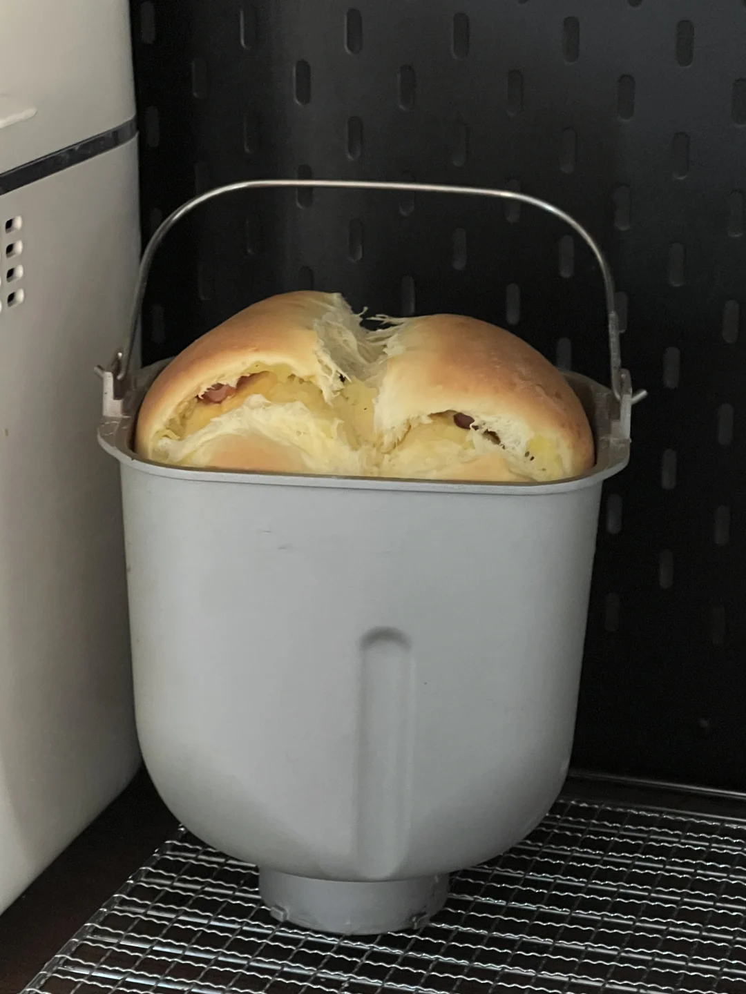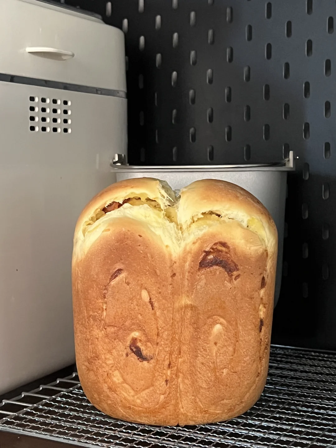 6️⃣放入面包机发酵至八九分满(天气冷,发酵比较慢,今天用了一小时五十分钟,供参考),烘烤35分钟即可