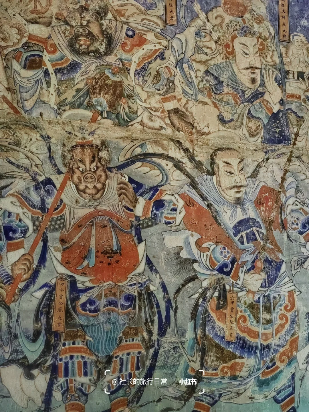 👉看壁画:主殿内"封神榜"主题的壁画很有趣,看点不在主神,反而是扇墙上的三十六雷公——估计你不会在其他任何地方一次看到如此众多的雷公了,而且长相各异,各个腰挂天庭御制"工牌",专门协助龙王降雨,训练有素分工明确,全国罕见