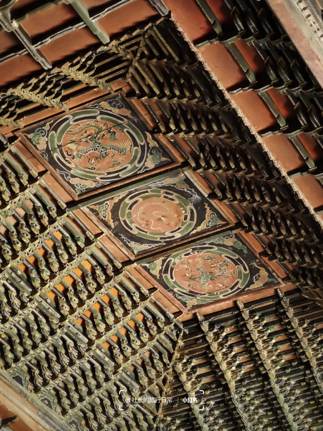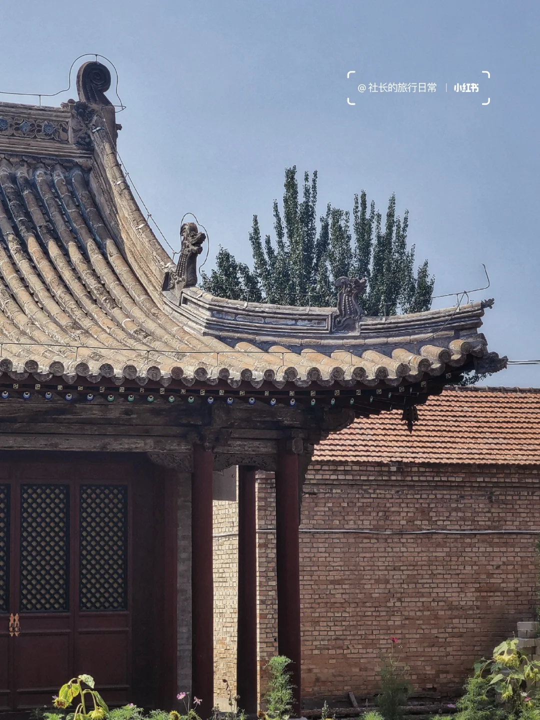 明朝权宦王振重修的"家庙",是古城里最恢弘的存在,高等级的庑殿顶大殿连同那块"无上士"横匾足以说明王振的僭越;三座覆斗藻井和精美平棋就算放在古建大省山西也是亮眼的存在;留意拱眼壁上的水墨蟠龙,形态迥异且线条流畅;还有大殿门板上历代游人的"题记",就连堵门缝用的纸都是光绪年间的古董!